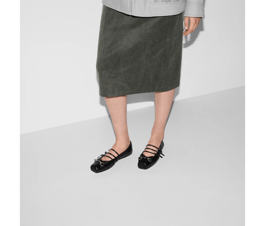 스타일 814318 AAEA4 1000이 아이코닉한 호스빗 발레 플랫은 사각형 모양의 토캡과 섬세한 리본 디테일이 특징인 오리지널 발레 슈즈 실루엣에 경의를 표합니다. 블랙 가죽 소재로 제작된 이 스타일은 실버 톤 호스빗으로 더욱 돋보입니다. '사케토(Sacchetto)' 구조는 부드러운 패딩 처리된 깔창 덕분에 최상의 편안함을 보장합니다.