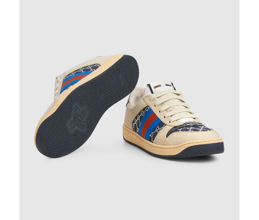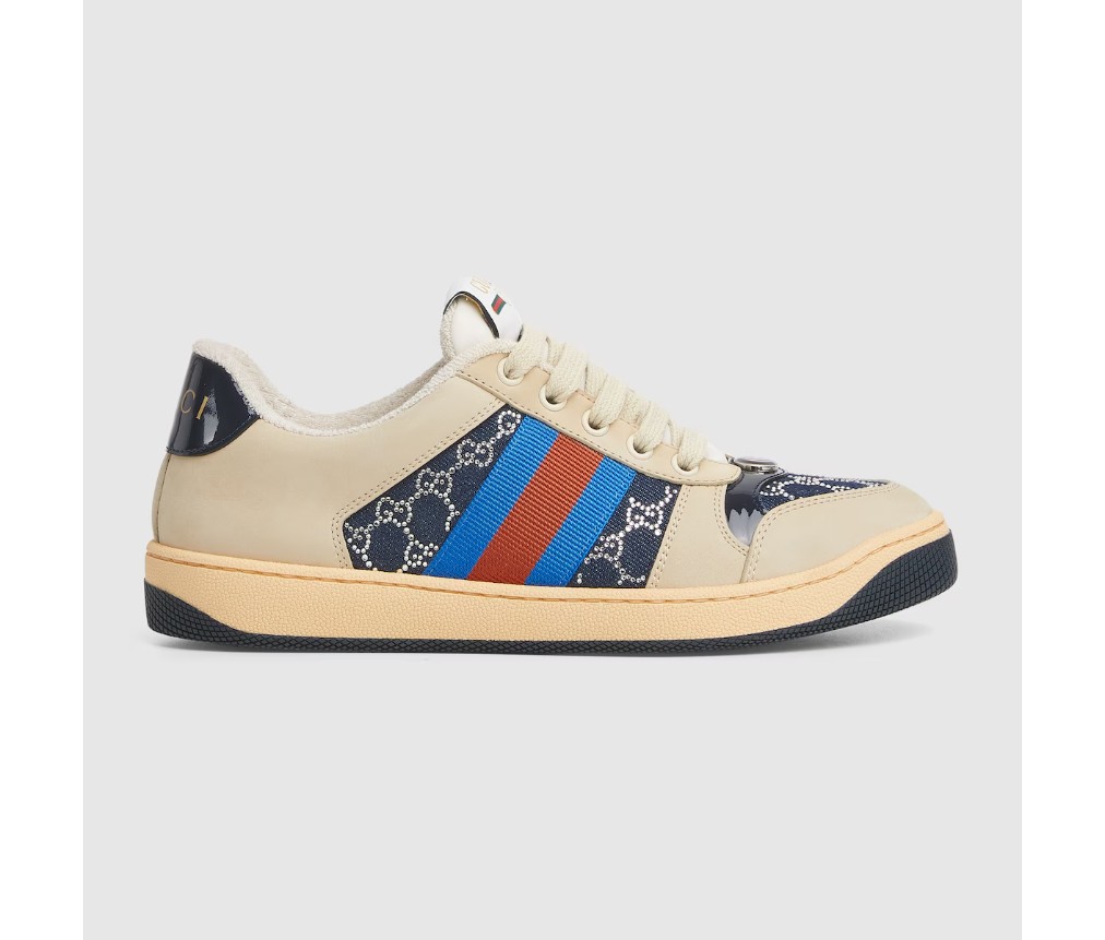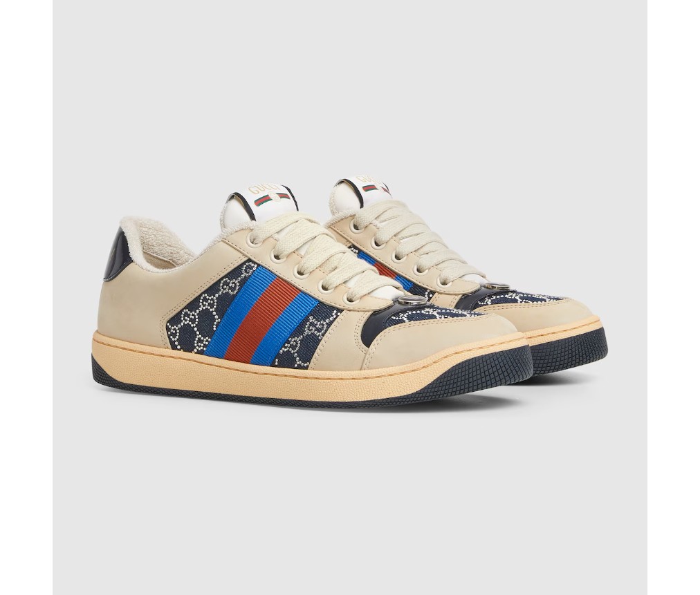 1970년대 클래식 스니커즈에서 영감을 받은 스크리너 스니커즈는 수비적인 스포츠 무브먼트에서 이름을 따왔습니다. GG 크리스털 데님 소재로 제작된 이 버전은 옆면의 독특한 웹 스트라이프와 빈티지 구찌 로고가 스타일을 완성합니다.