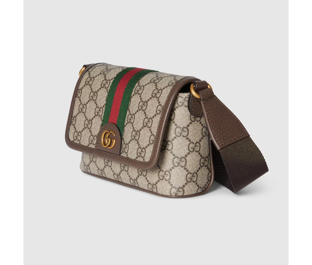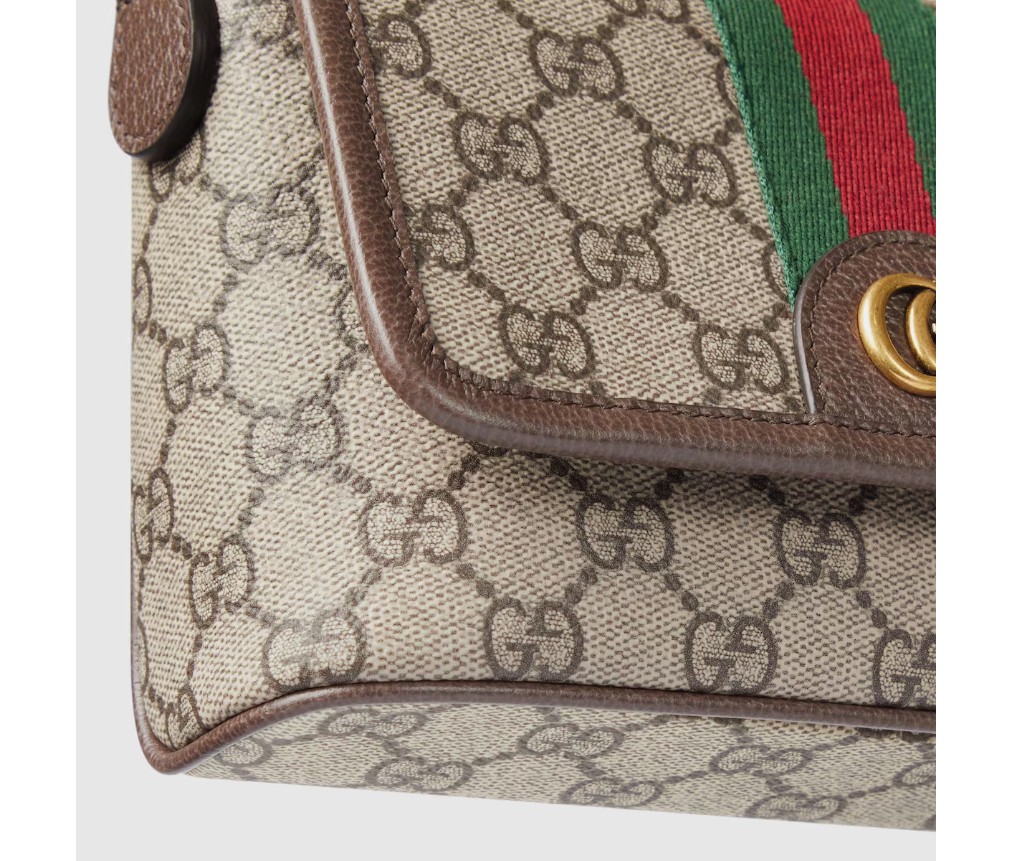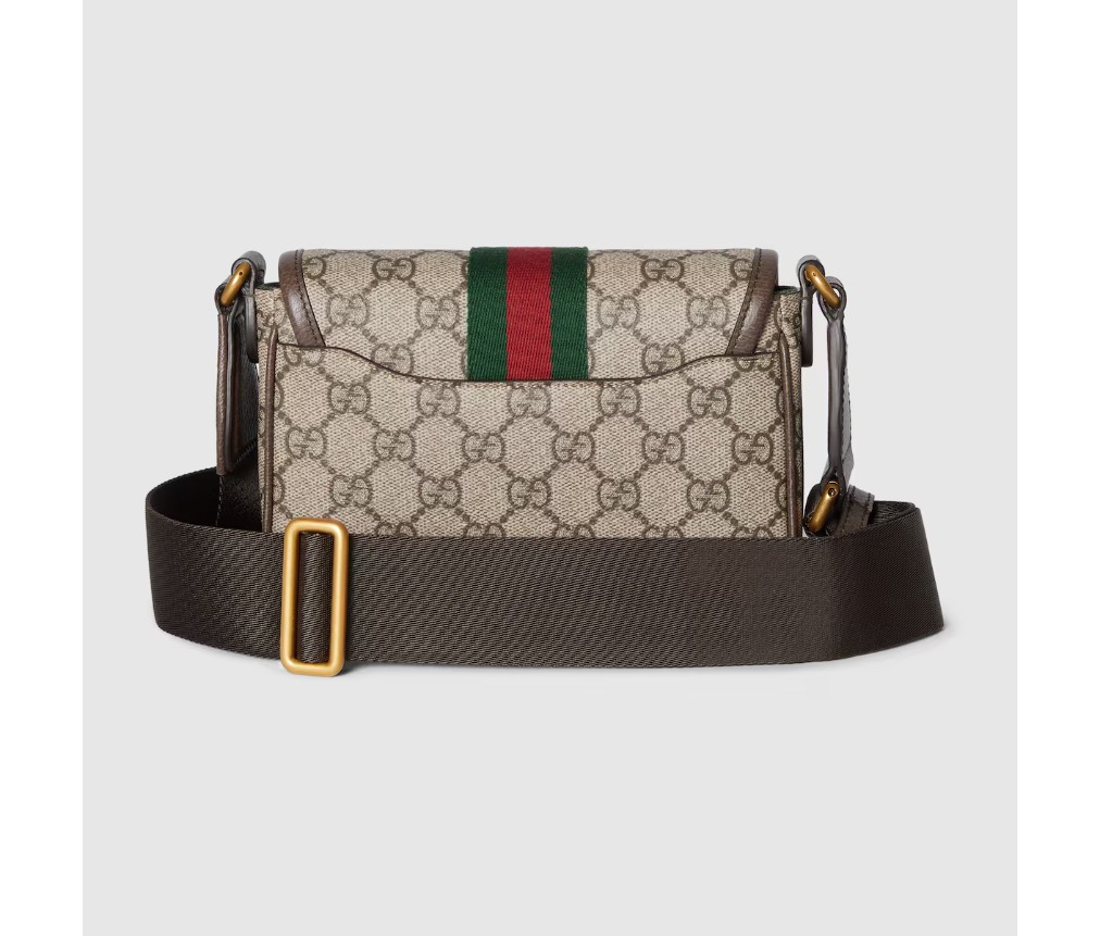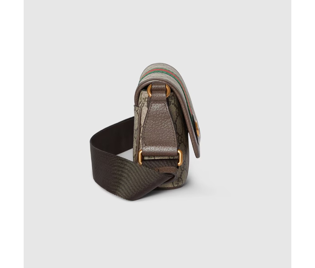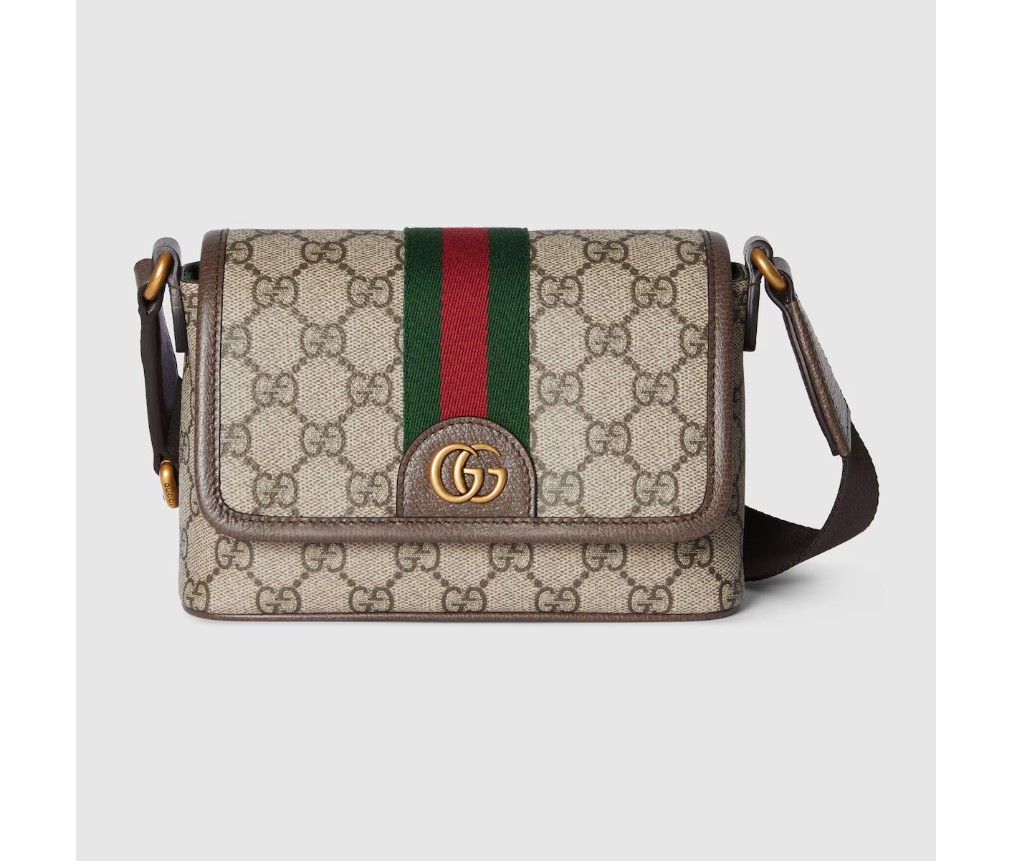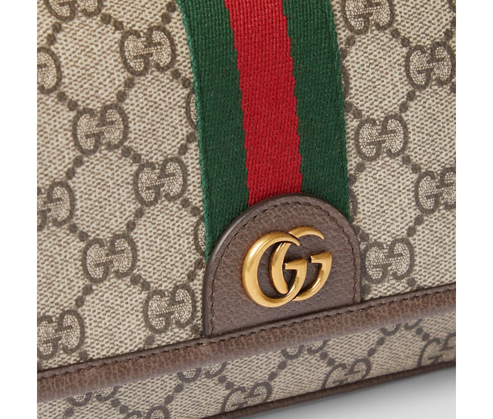 오피디아 컬렉션은 시그니처 웹 스트라이프와 라이트 골드 톤의 더블 G 엠블럼으로 하우스의 유산을 되살립니다. 이 미니 백은 GG 모노그램 코팅 원단으로 제작되었습니다.