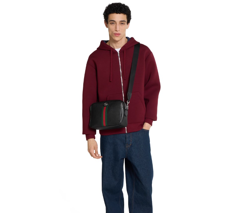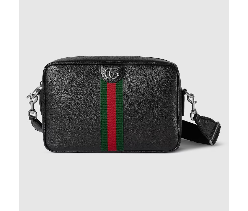 스타일 834468 AAE1B 1043블랙 색상의 오피디아 백은 세련된 가죽 소재로 제작되어 시그니처 실루엣을 더욱 돋보이게 하며, 새로운 기능을 더했습니다. 자연스러운 광택이 돋보이는 부드러운 가죽 소재로 제작된 이 크로스백은 더블 G 로고와 웹 디테일이 특징입니다.