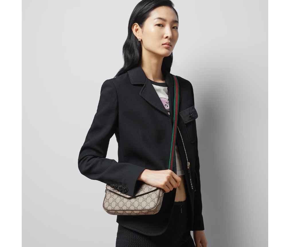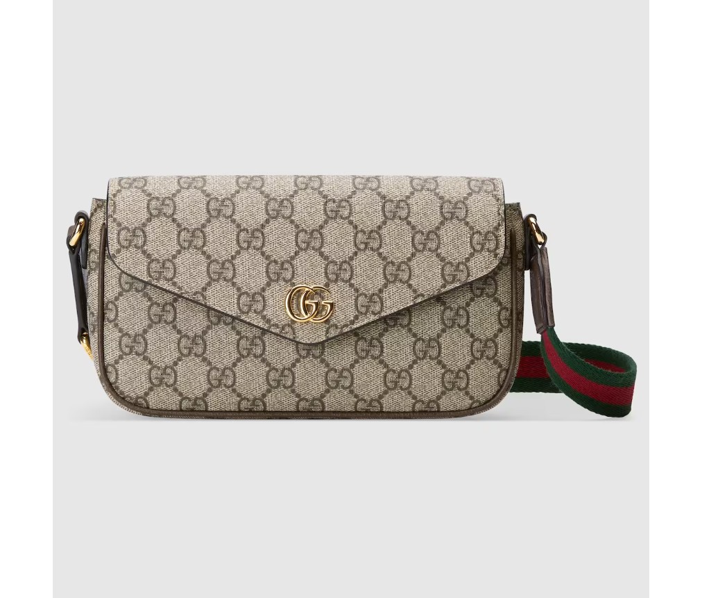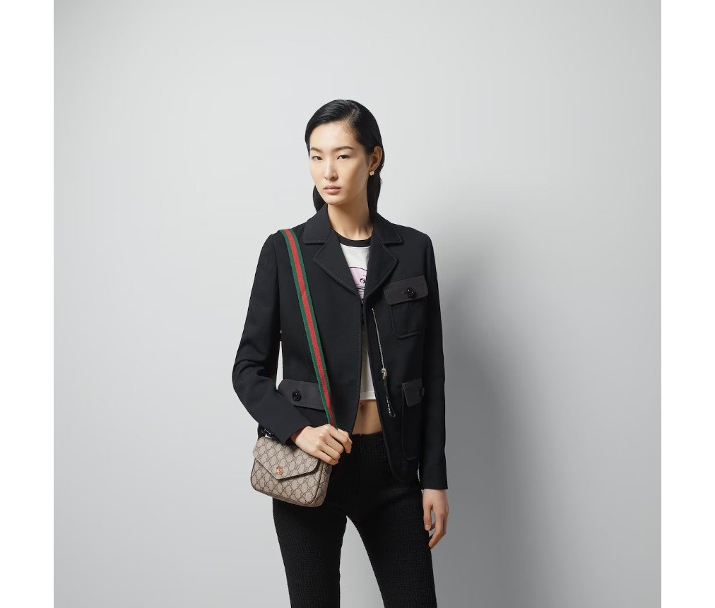 오피디아의 세계는 매 시즌 새로운 형태와 소재를 도입하며 끊임없이 진화합니다. 베이지색과 흑단색 GG 수프림 캔버스로 제작된 이 포셰트는 더블 G 하드웨어와 웹 숄더 스트랩으로 더욱 풍성한 매력을 더합니다.