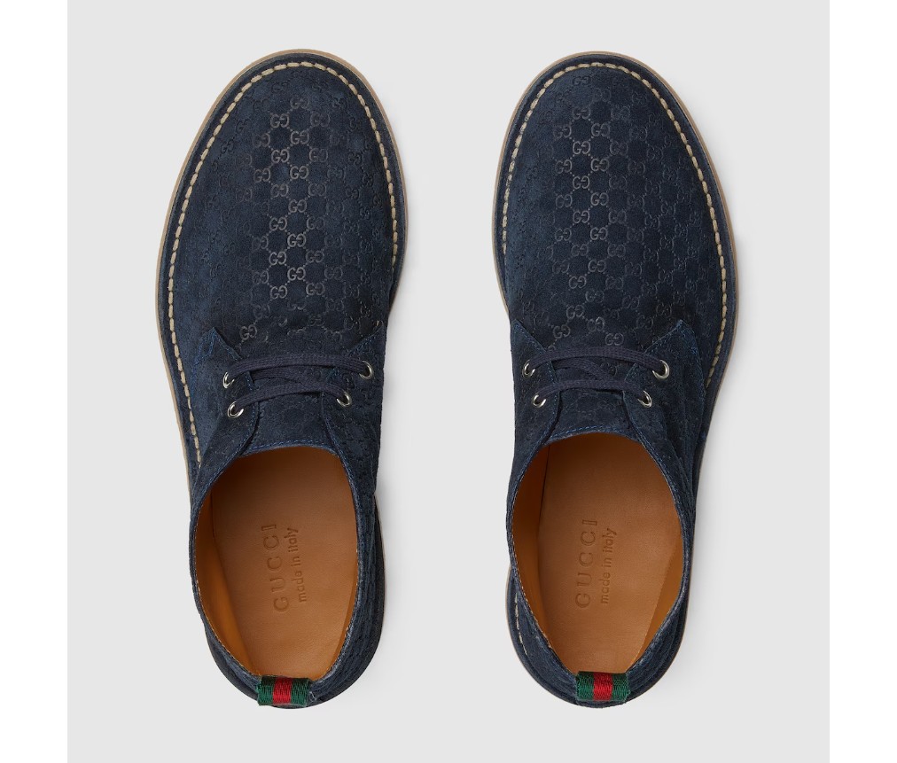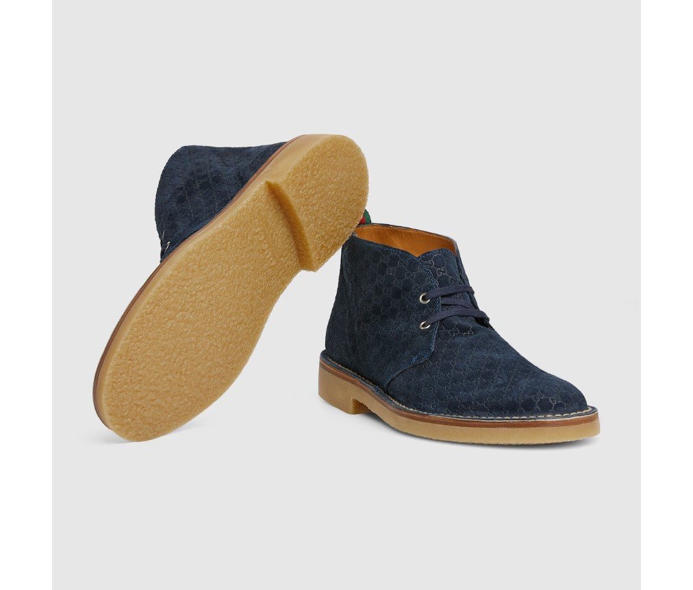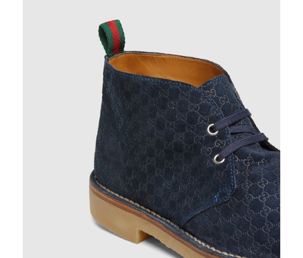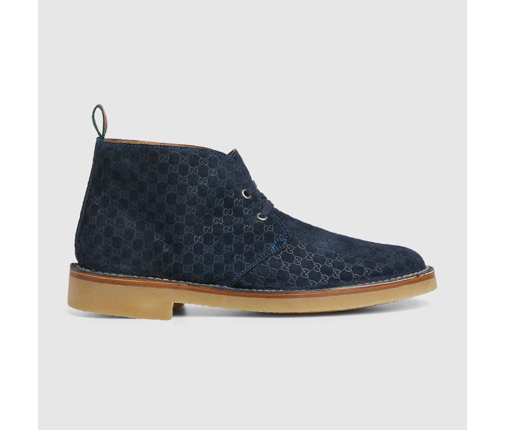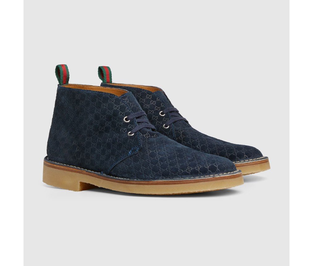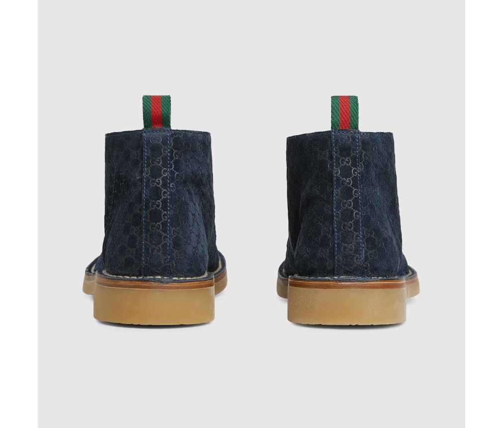 하우스의 독특한 코드인 그린과 레드 웹(Web)이 GG 스웨이드 소재로 제작된 남성용 앵클 부츠 스타일을 더욱 돋보이게 합니다. 최상의 편안함을 위해 고무 밑창이 사용되었습니다.