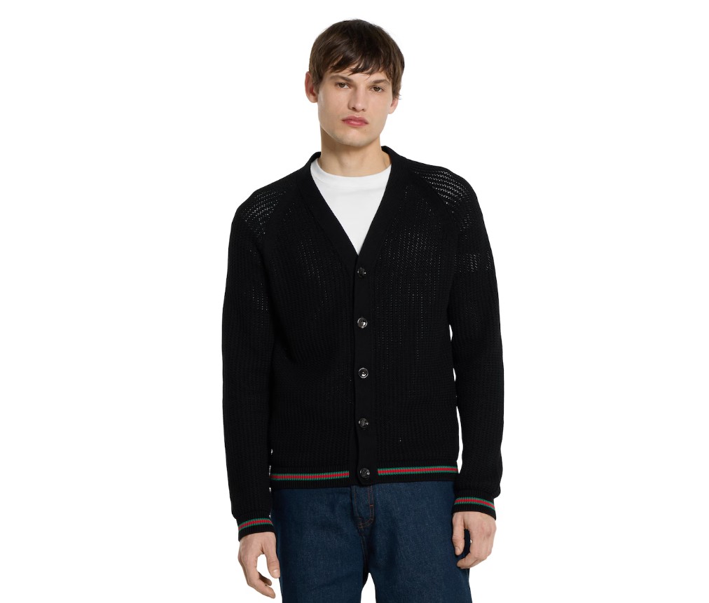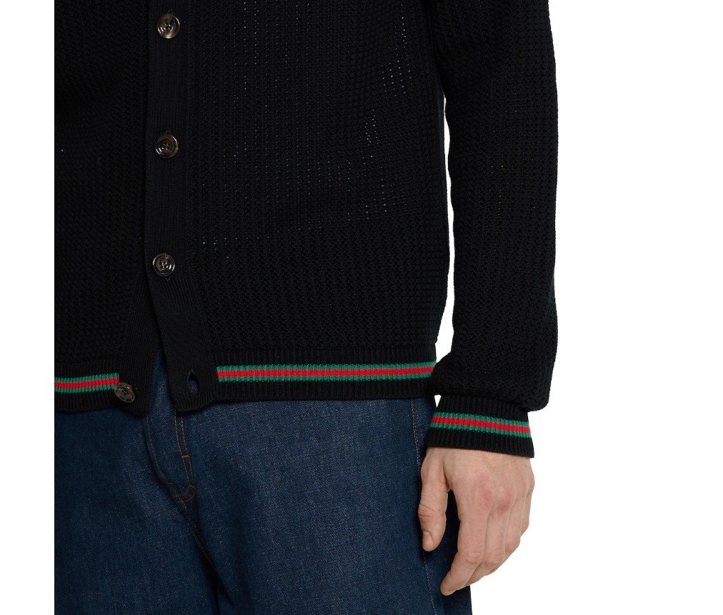 구찌 웹이 있는 코튼 니트 카디건 788009XKD151060