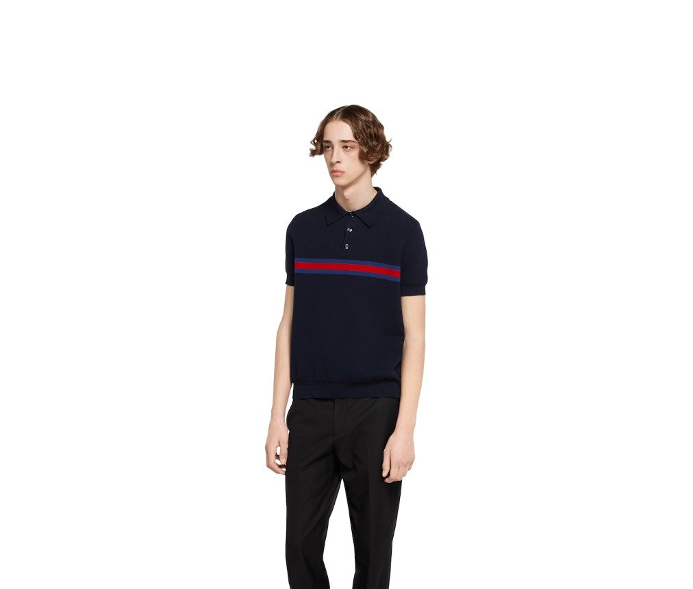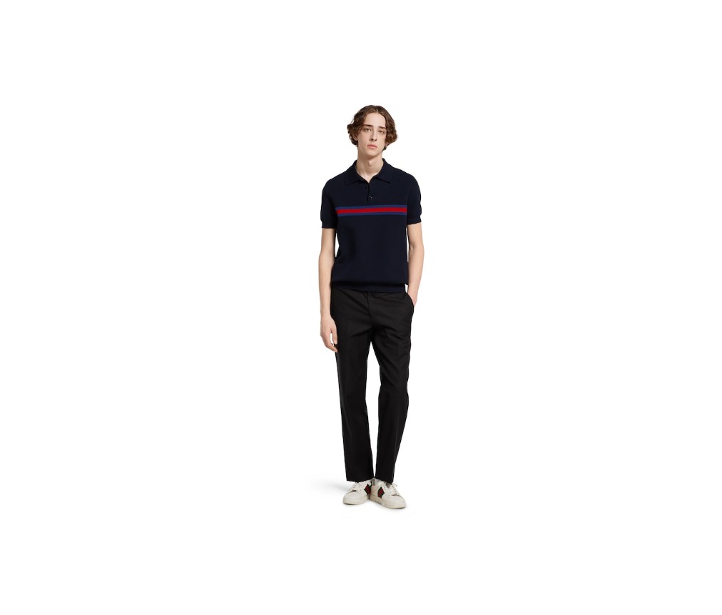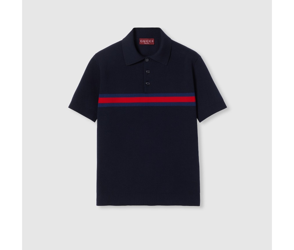 구찌 웹이 있는 코튼 피케 폴로 셔츠 833505XKEYN4575