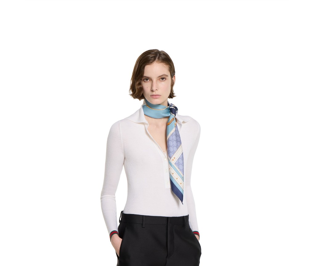 세련된 톤의 호스빗 디테일과 승마 모티프는 하우스와 승마계의 오랜 인연을 기념하는 오마주입니다. 실크 트윌 소재로 제작된 이 카레는 벨트 전체에 호스빗 프린트가 특징입니다.