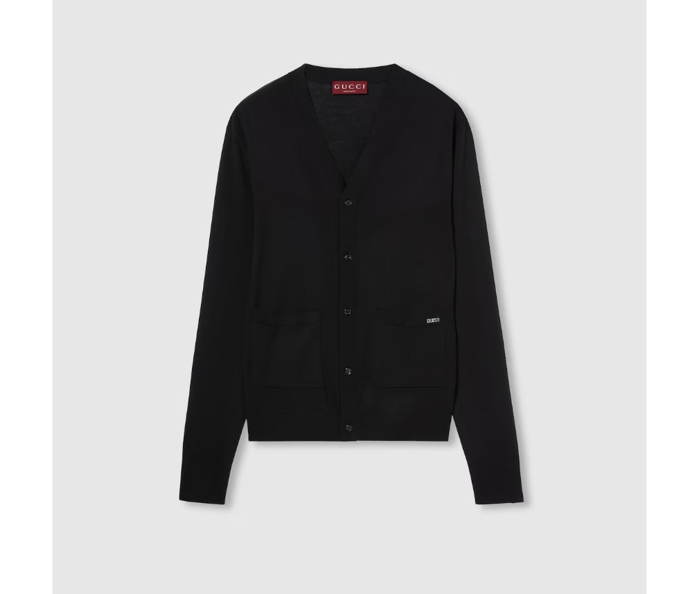 스타일 822599 XKEP1 10702025 봄/여름 컬렉션에서는 인타르시아 디테일이 두드러지게 나타납니다. 이 고급 울 니트 카디건은 앞면에 섬세한 구찌 인타르시아가 특징입니다. V넥라인과 단추 여밈이 디자인을 완성합니다.