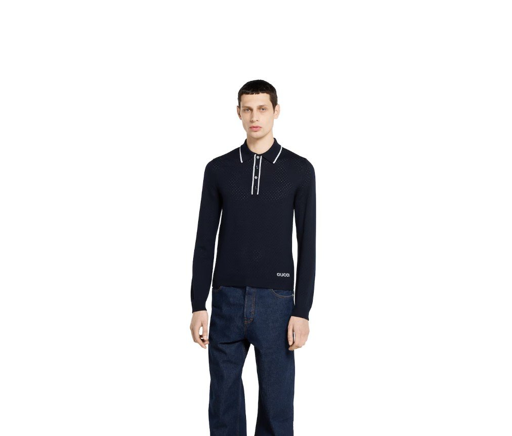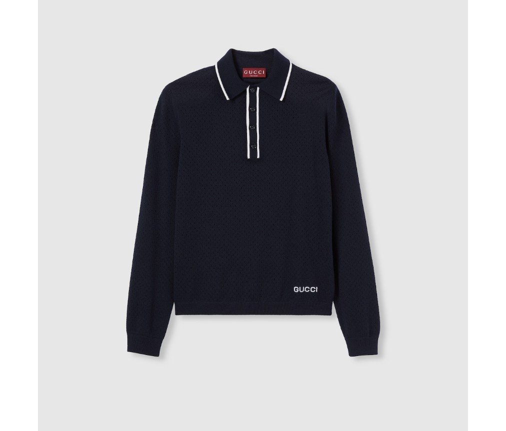 구찌 인타르시아가 들어간 고급 울 니트 폴로 셔츠 824573XKESP4423