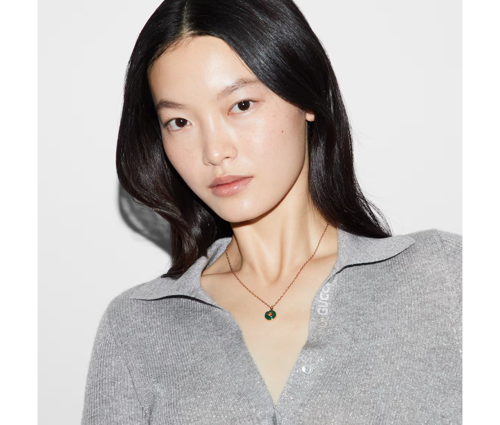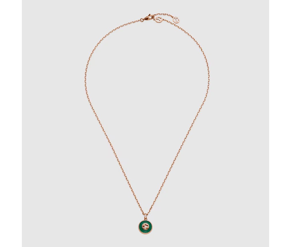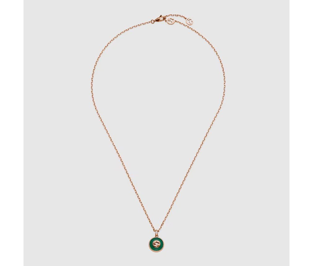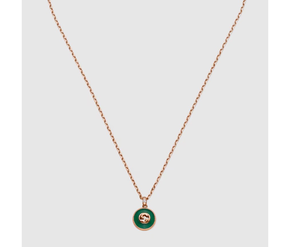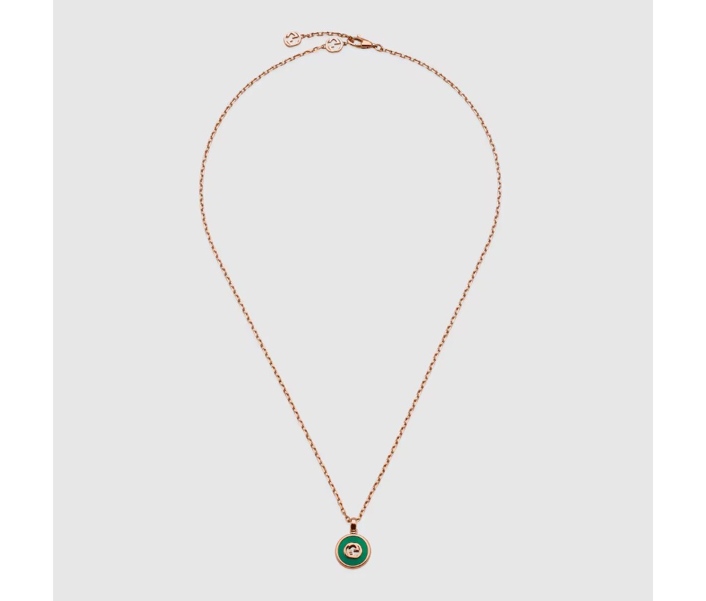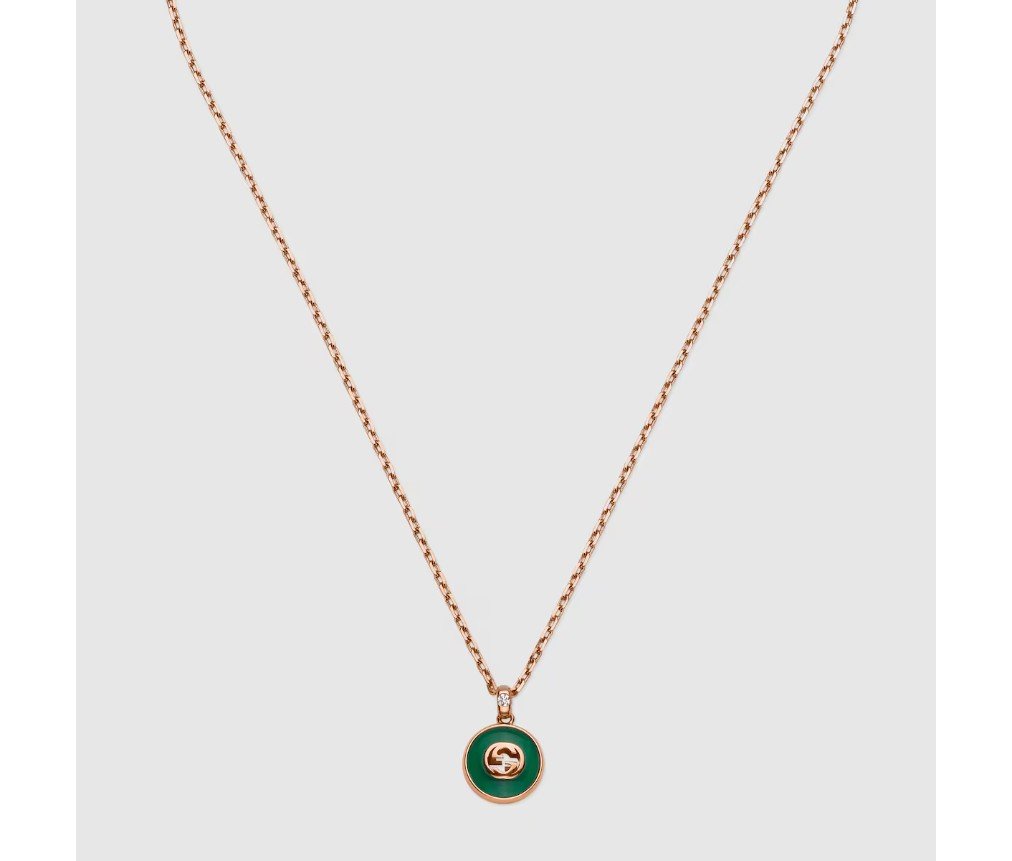 인터로킹 G 로고가 2024 프리폴 컬렉션을 위해 우아하고 새롭게 재해석되었습니다. 세련된 로즈 골드는 선명한 그린 아게이트 스톤과 반짝이는 다이아몬드로 더욱 돋보입니다. 길이 조절이 가능한 이 체인 네크리스는 같은 라인의 다른 액세서리와 매치하여 착용할 수 있습니다.