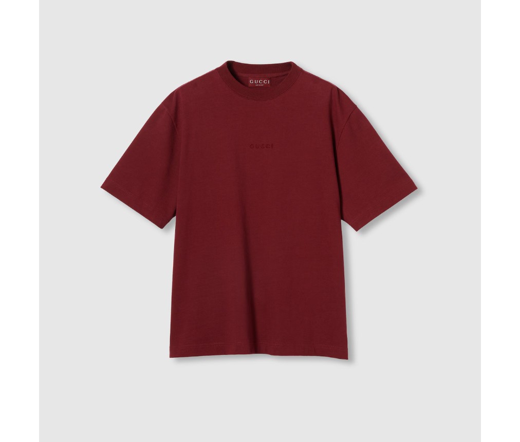 2024 가을/겨울 남성 컬렉션의 일부로, 최고급 소재와 완벽한 장인정신으로 일상에 기성복을 더욱 돋보이게 합니다. 이 오버사이즈 핏 티셔츠는 로소 앙코라 레드 컬러의 헤비 펠트 코튼 저지 소재로 제작되었으며, 가슴 부분에는 구찌 자수가 포인트를 더했습니다.