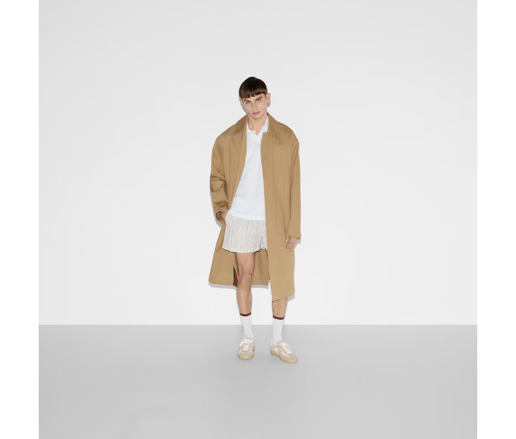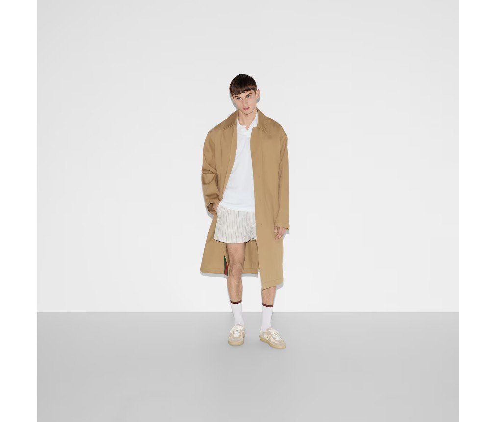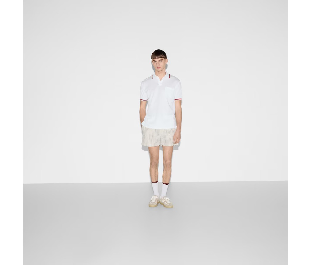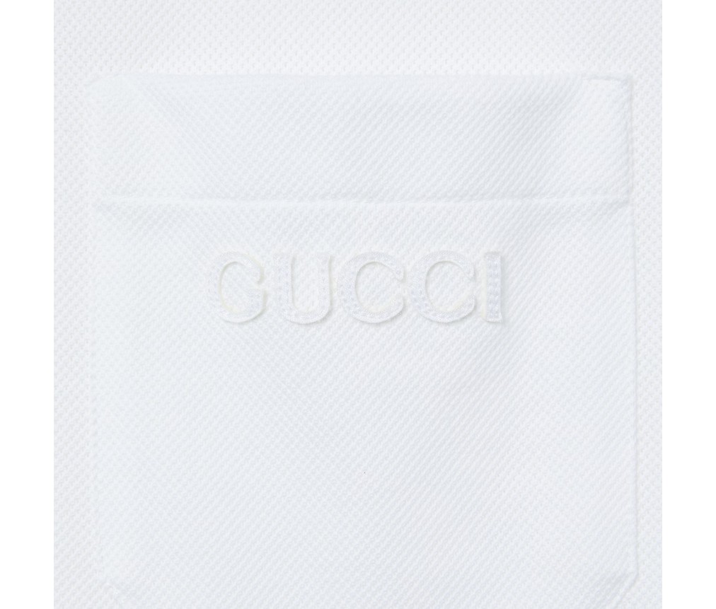 스타일 795174 XJG5C 9733크루즈 2025 컬렉션의 부드러운 니트웨어와 폴로 셔츠와 같은 클래식 아이템들은 데일리룩을 한층 더 돋보이게 하는 섬세한 디테일로 시선을 사로잡습니다. 이 레귤러 핏 폴로 셔츠는 스트레치 코튼 피케 소재에 구찌 자수와 칼라의 웹 디테일이 더해져 더욱 풍성한 느낌을 줍니다.