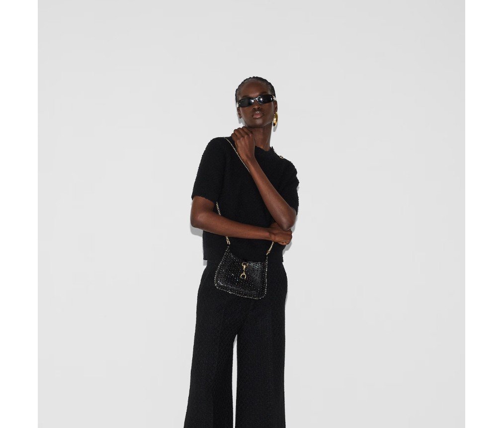 스타일 782889 AADOC 1000재키 노테는 상징적인 재키 라인의 자신감을 구현한 제품으로, 새로운 실루엣과 섬세한 디테일로 밤에 착용하기에 완벽합니다. 검은색 가죽, 후크 잠금 장치, 밝은 골드 톤의 구찌 레터링 체인 스트랩이 이 미니 숄더백에 독특한 터치를 더합니다.