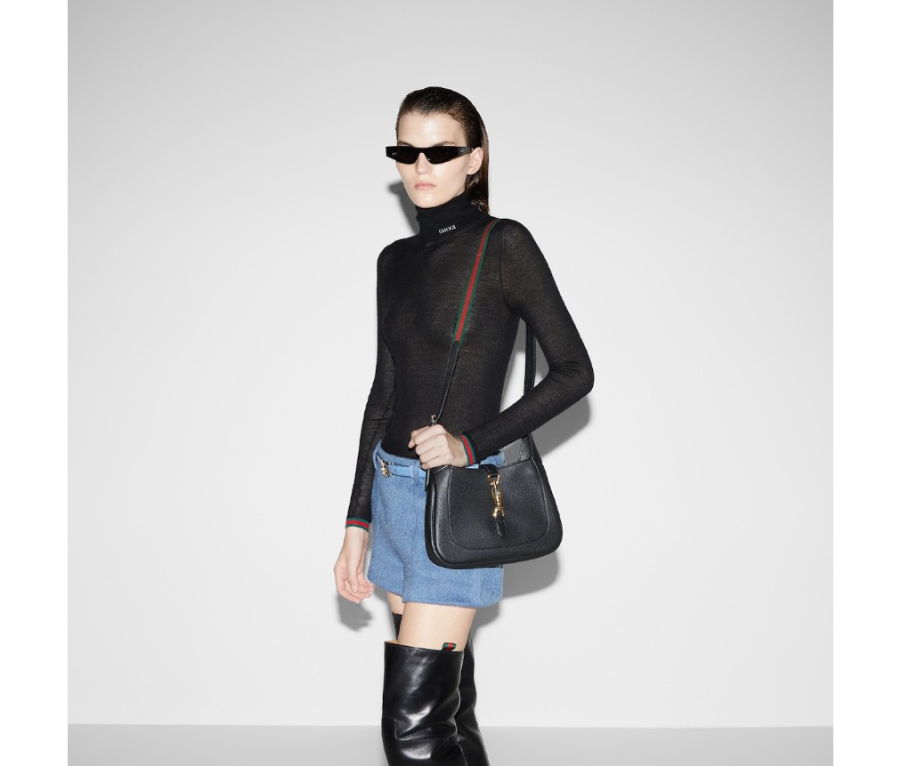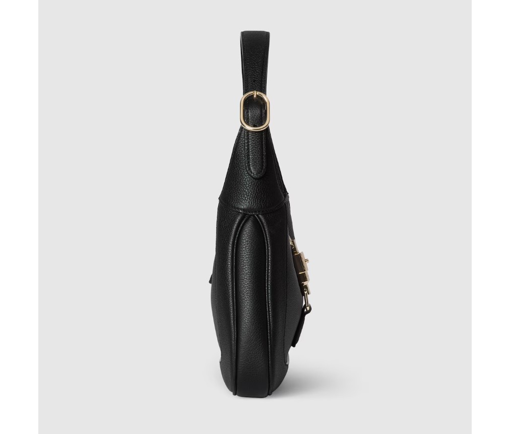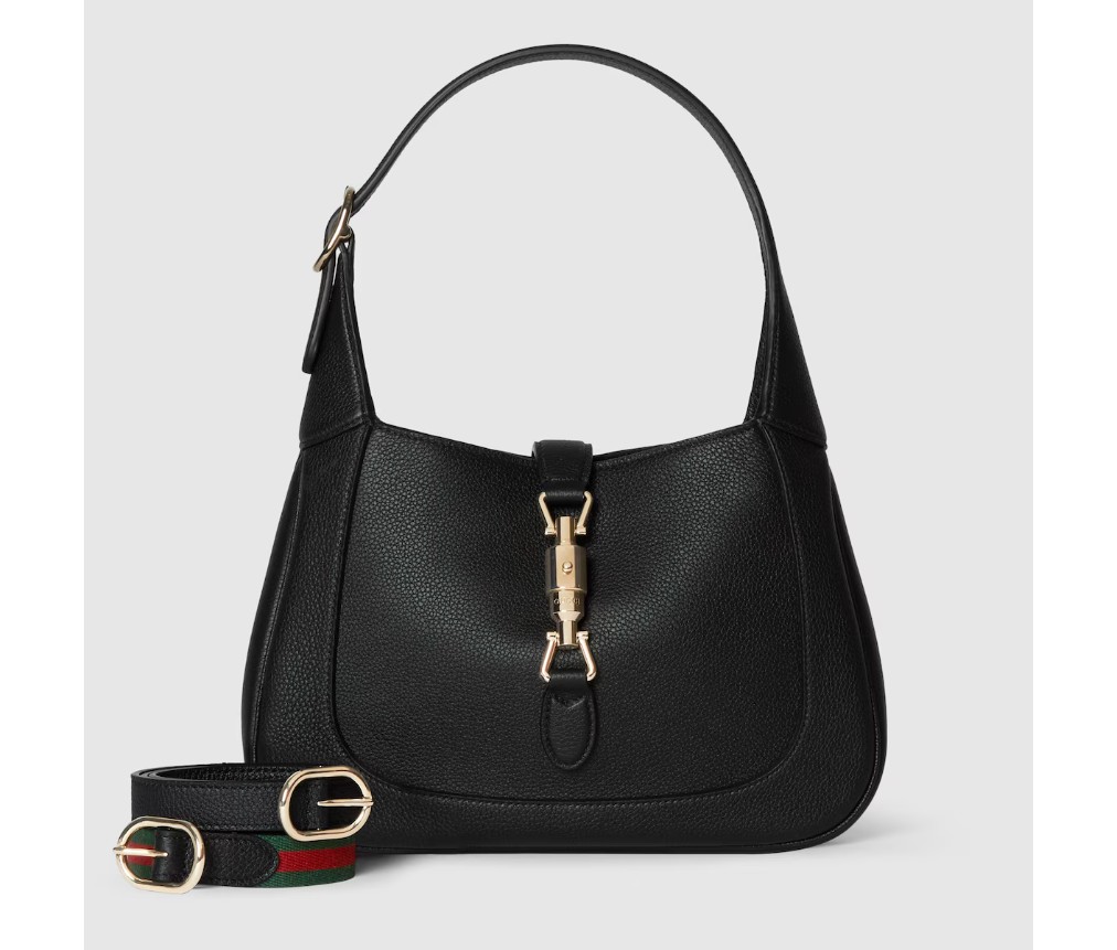 스타일 810232 AAD5V 10602024 가을/겨울 컬렉션에서 새롭게 선보이는 구찌 재키 1961 숄더백은 새로운 라이트 골드 톤 피스톤 잠금장치를 갖추고 있으며, 고급 블랙 가죽 소재를 사용하여 장인정신을 강조하고, 초승달 모양과 세련된 실루엣을 자랑합니다. 이 미디엄 사이즈는 가죽 스트랩과 함께 제공되며, 그린 및 레드 웹 스트랩이 추가되어 다양한 스타일링이 가능합니다.