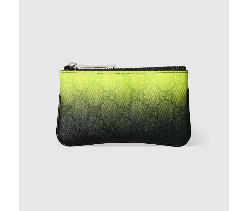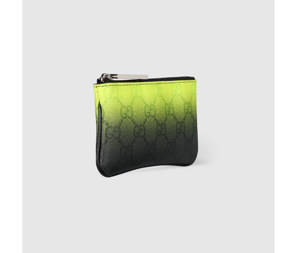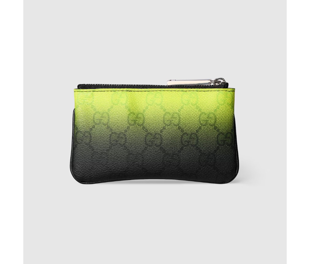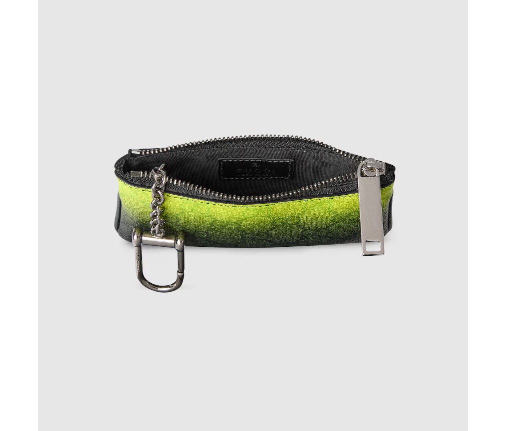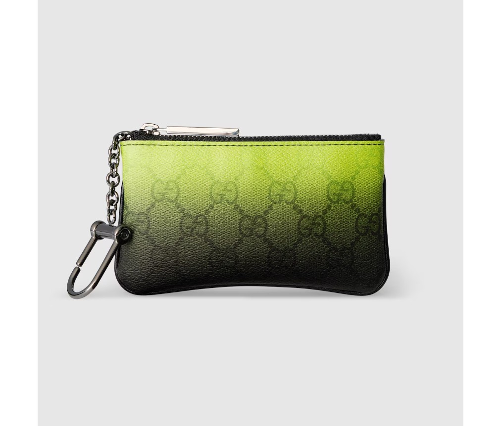 스타일 835703 FAERJ 3248상큼한 블루 색상의 그라데이션 프린트가 필수 기능에 새로운 빛을 더합니다. GG 모노그램 코팅 원단으로 제작된 이 키 파우치는 전면 그라데이션 프린트로 더욱 풍성한 매력을 더했습니다.