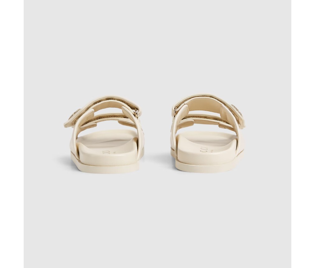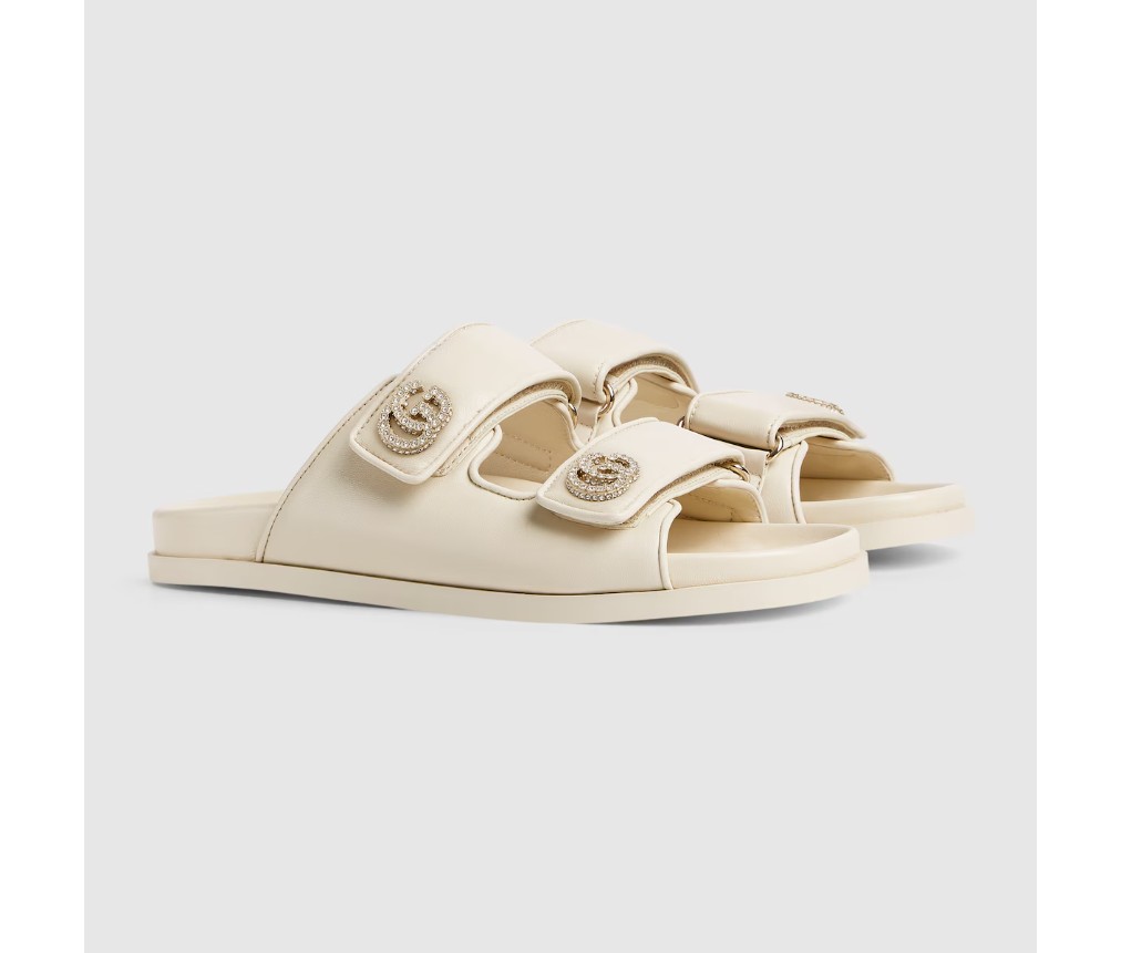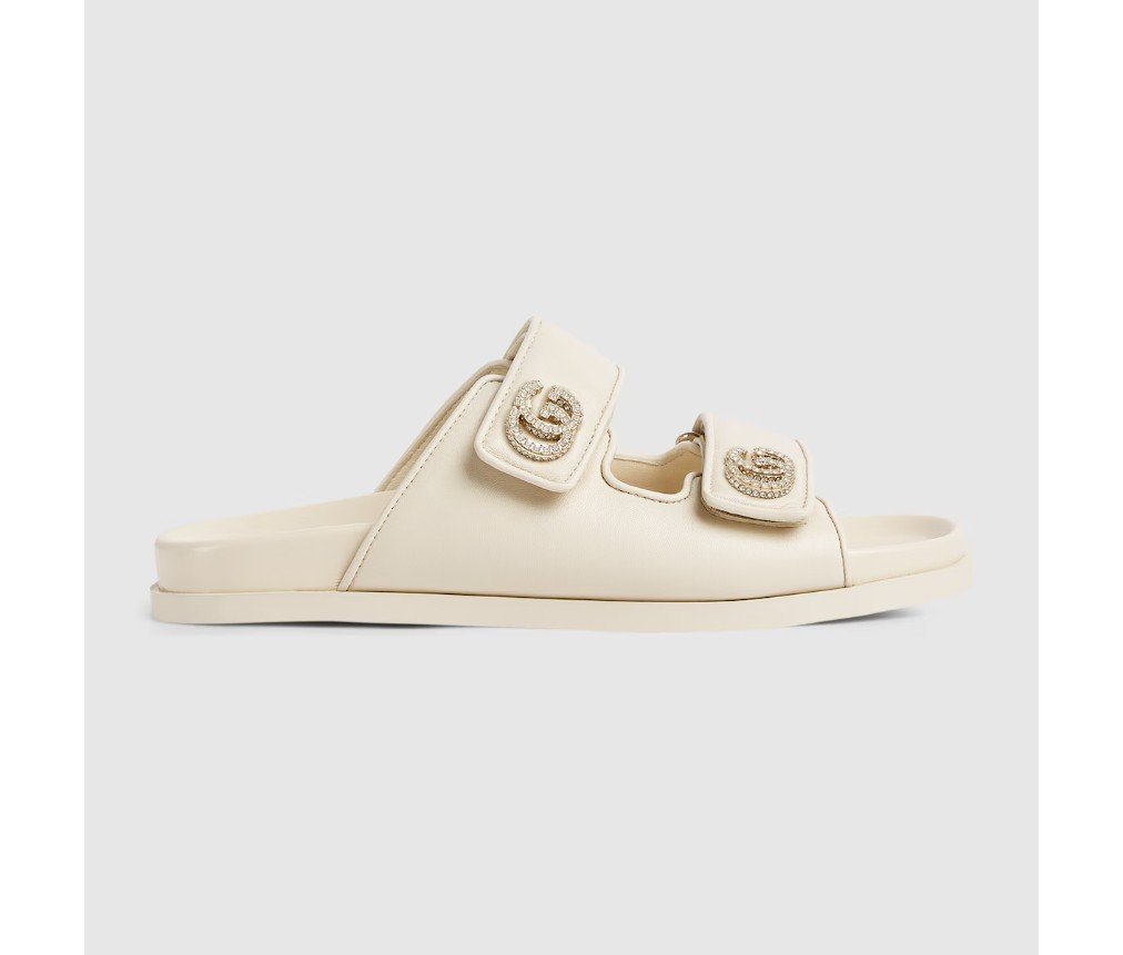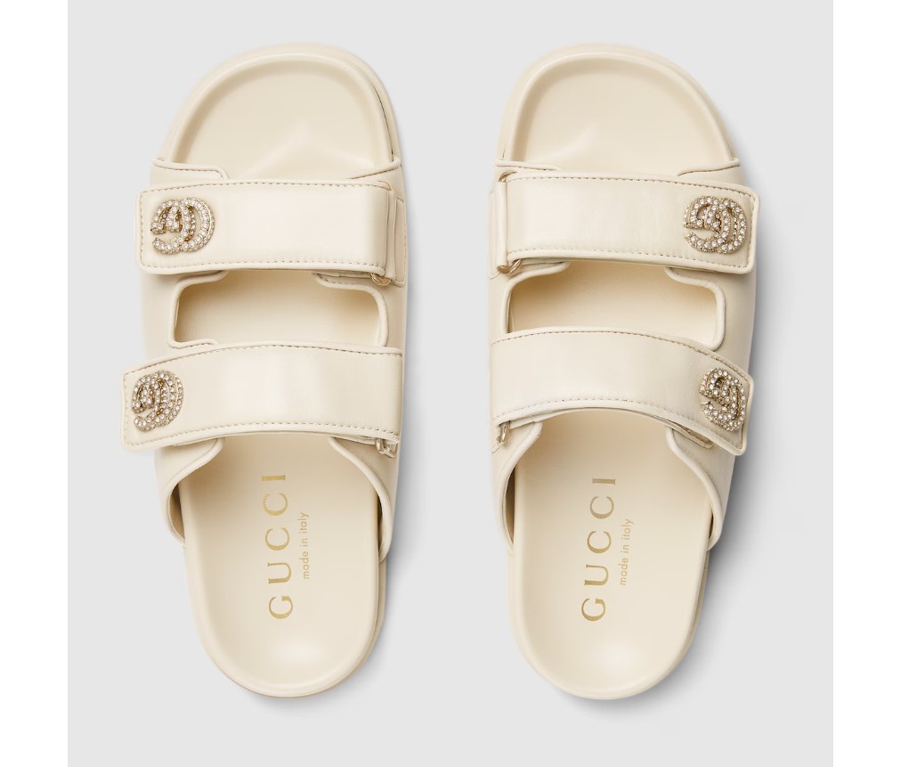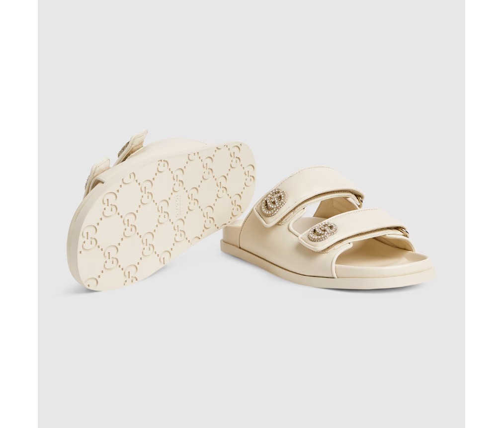 가죽으로 제작된 이 샌들은 밝은 금색 하드웨어로 장식된 뚜렷한 Double G 로고가 특징으로, 세련된 우아함을 더해줍니다.