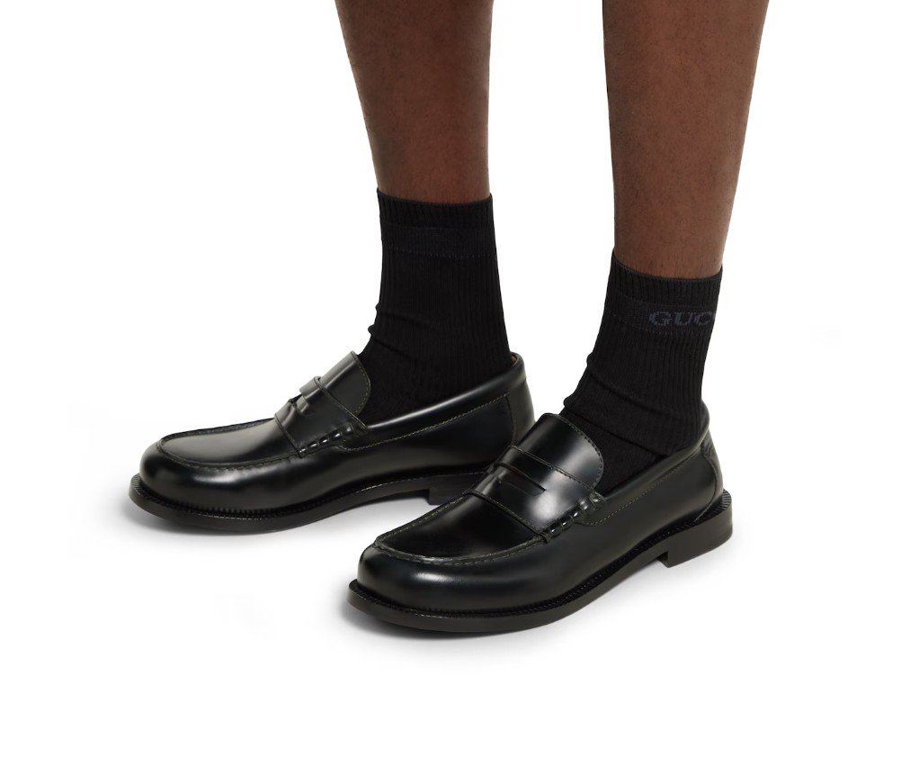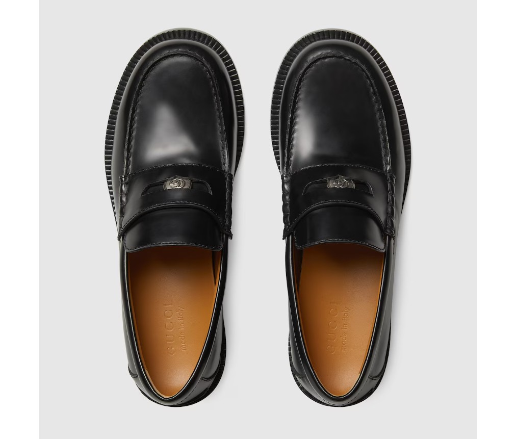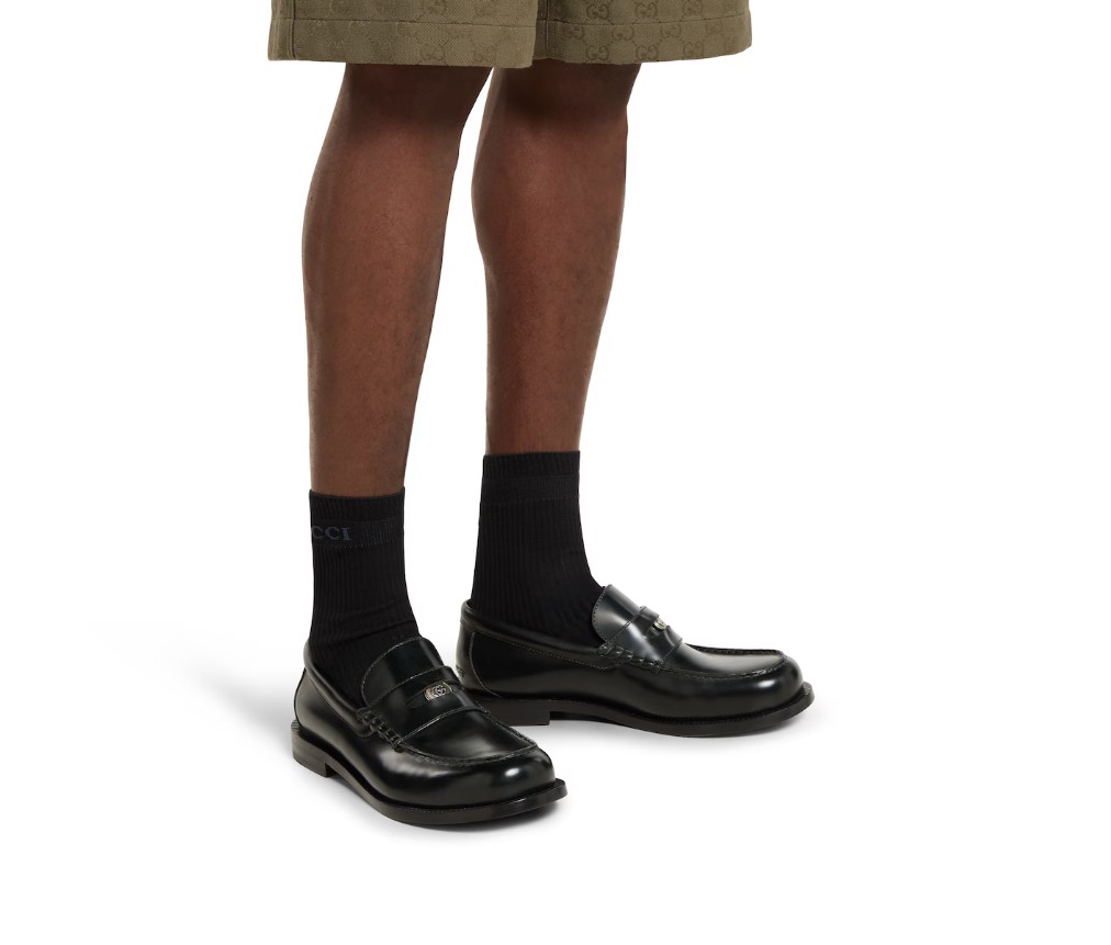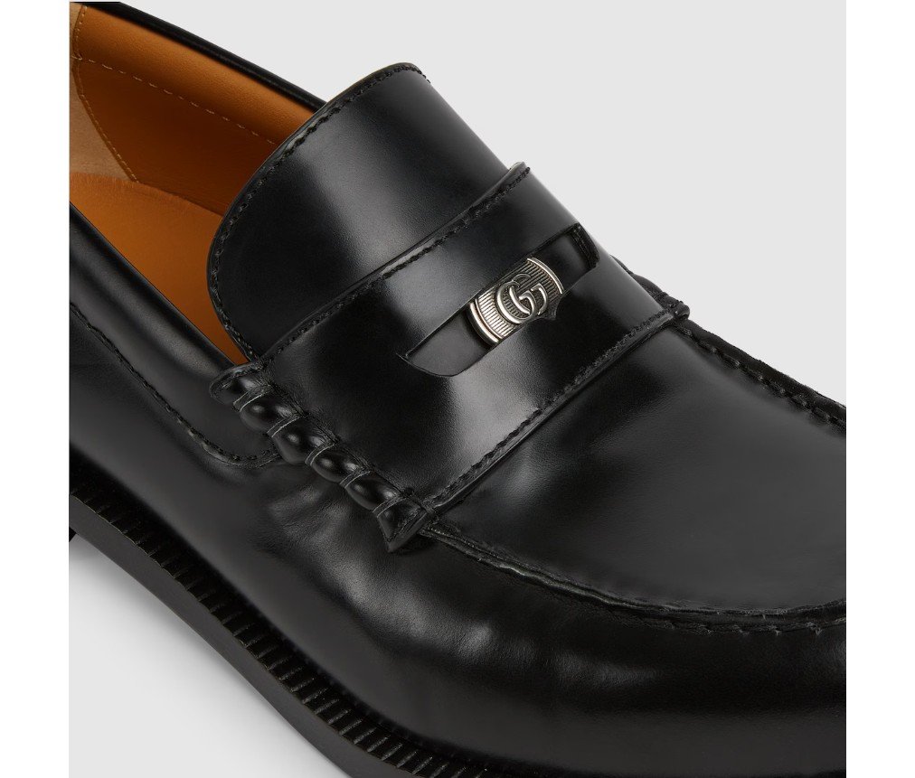 매끈하고 세련된 디자인의 이 로퍼는 블랙 가죽으로 제작되었습니다. 탈부착 가능한 더블 G 로고가 새겨진 동전 지갑이 남성 스타일을 더욱 돋보이게 하며, 클래식한 우아함과 모던한 감각이 조화를 이룹니다.