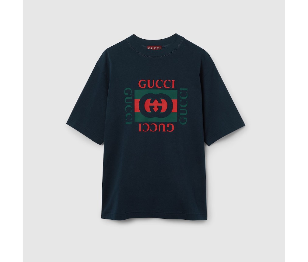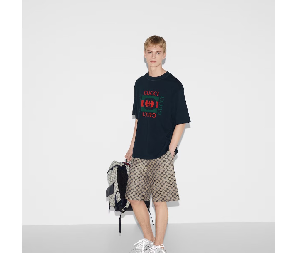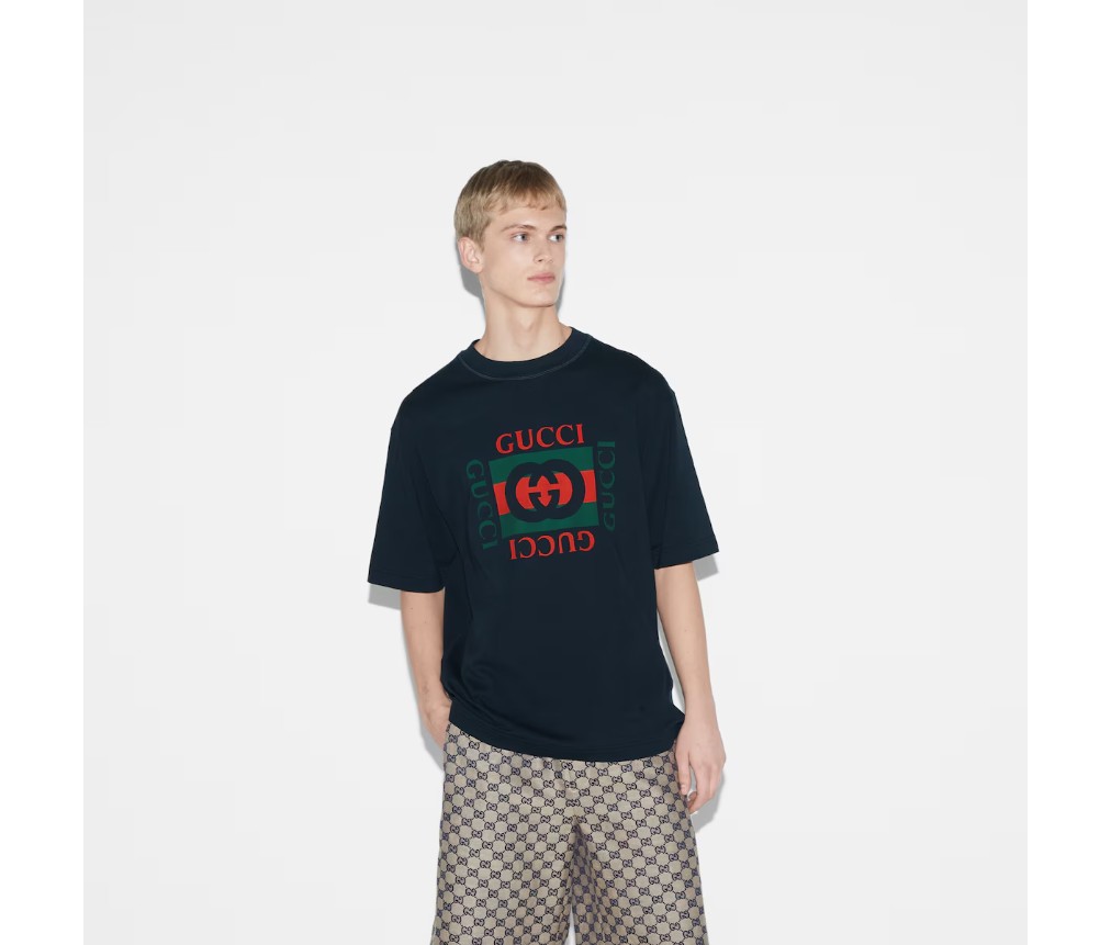 – 네이비 헤비 코튼 저지– 구찌 인터로킹 G 프린트