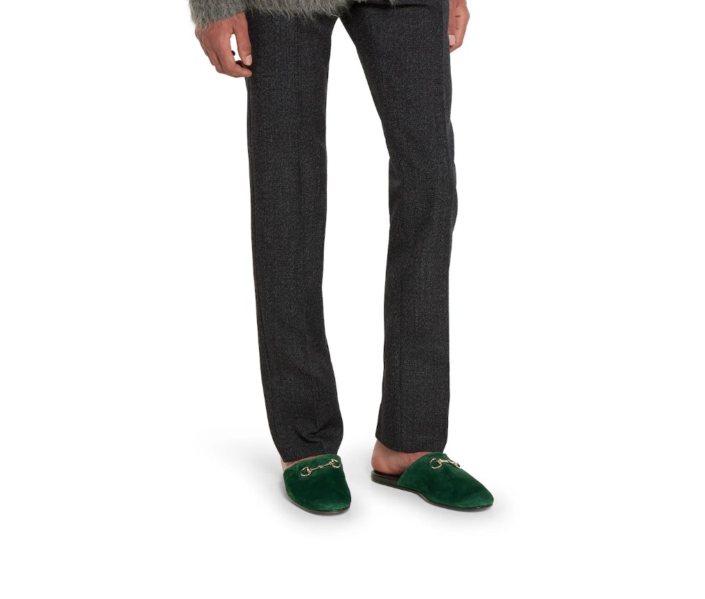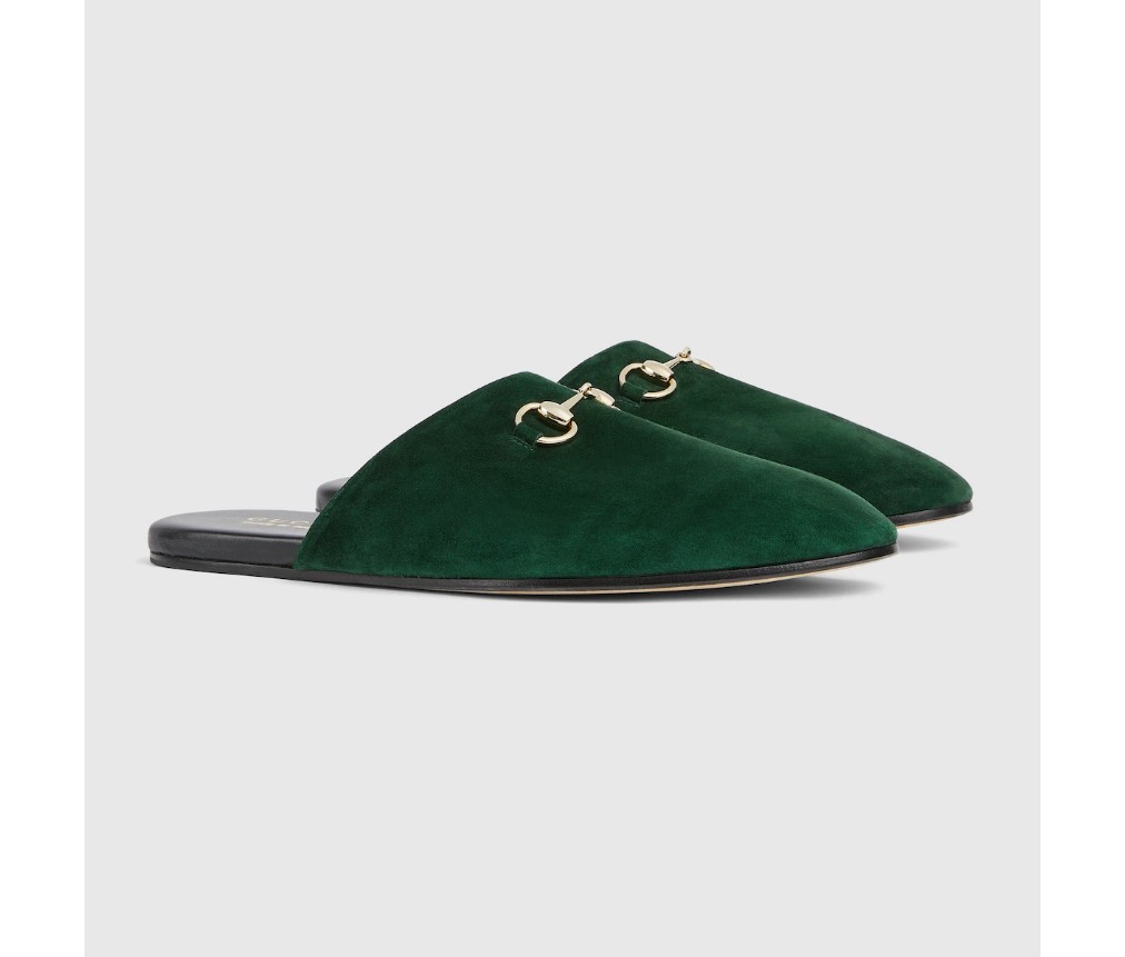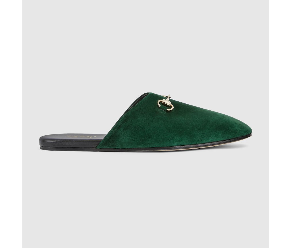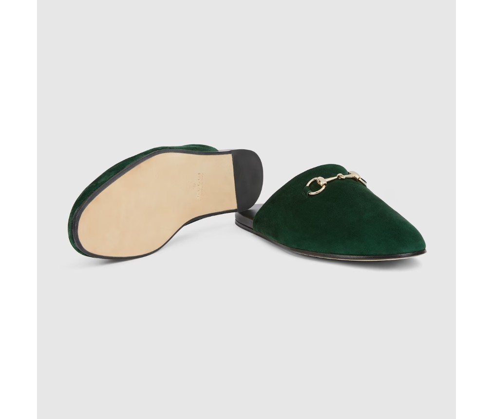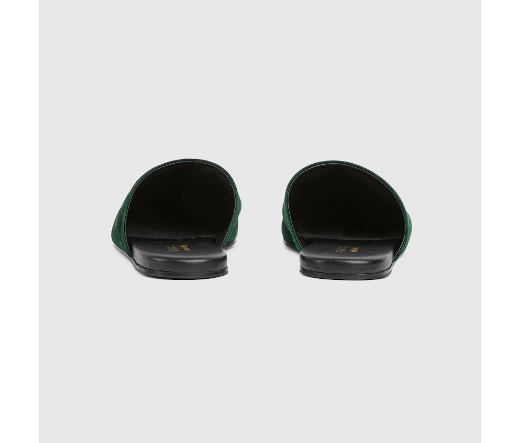구찌는 2025 가을/겨울 컬렉션에서도 아카이브 심볼을 계속해서 선보입니다. 최신 컬렉션의 호스빗 하드웨어는 구찌의 승마 유산을 떠올리게 합니다. 이 남성용 뮬은 부드러운 스웨이드 소재로 제작되었으며, 밝은 골드 톤 하드웨어가 특징입니다.