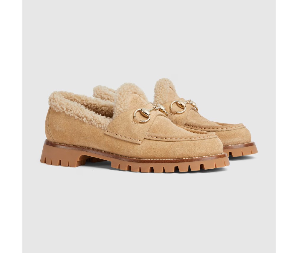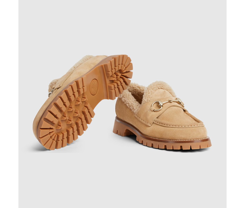 섬세한 디테일이 이 로퍼에 세련된 느낌을 더합니다. 부드러운 스웨이드 소재로 제작되었으며, 메리노 울 안감이 스타일을 더욱 돋보이게 합니다. 연한 골드 톤의 호스빗 장식이 클래식하면서도 모던한 디자인에 로고를 더합니다.