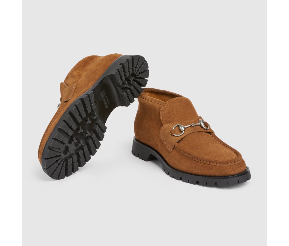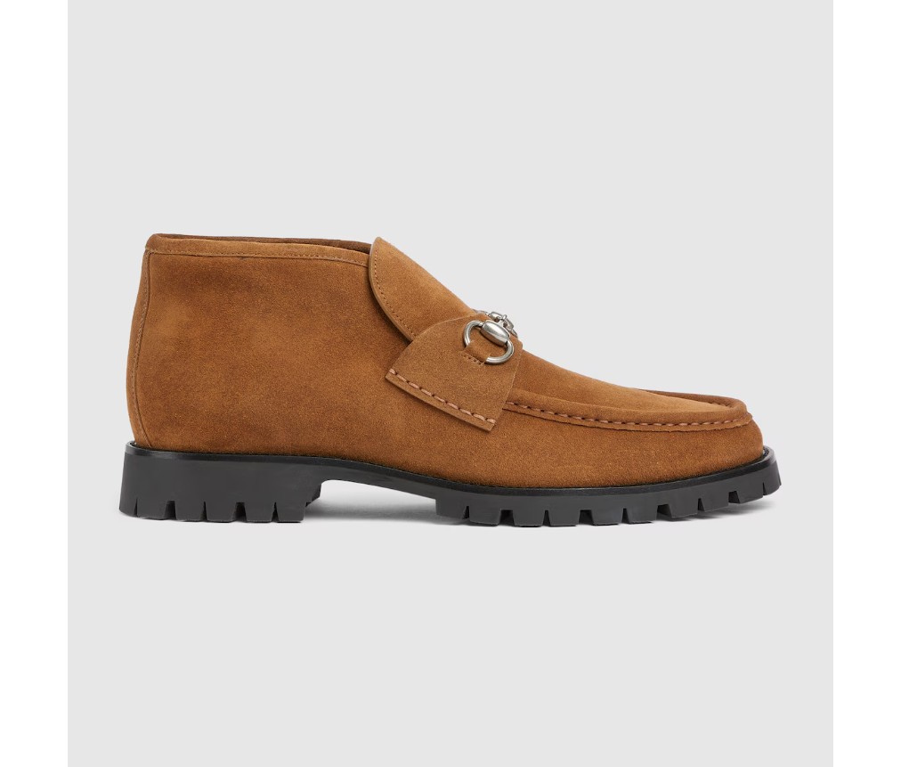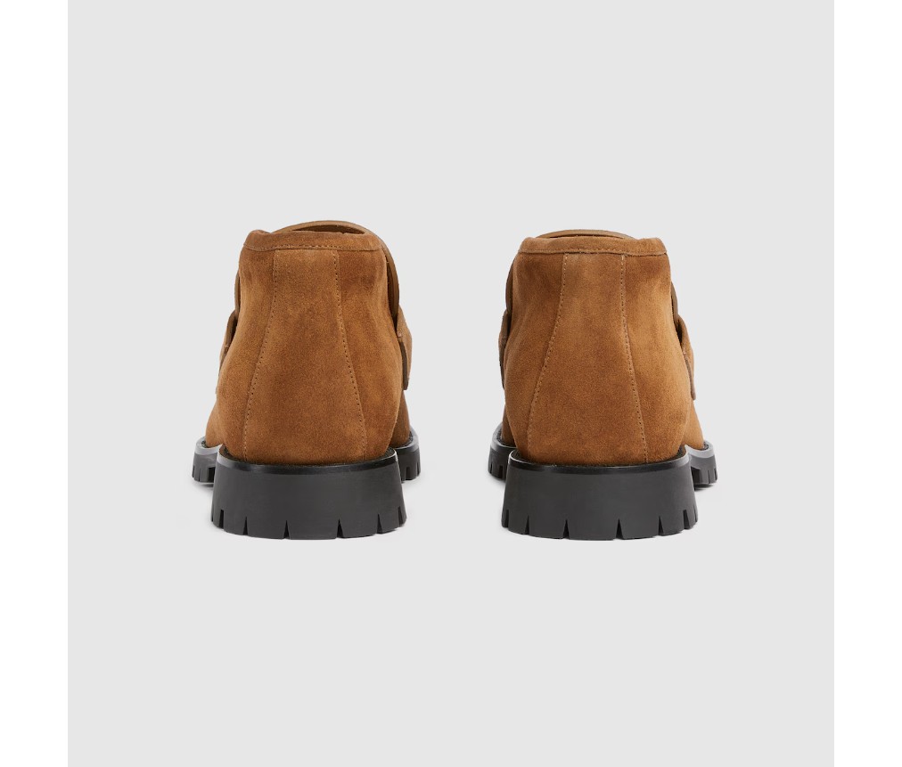 2025 가을/겨울 컬렉션에서는 상징적인 디테일로 더욱 풍성해진 에센셜 실루엣을 선보입니다. 브라운 스웨이드 소재로 제작된 이 앵클 부츠는 실버 톤의 시그니처 호스빗 장식으로 포인트를 주었습니다. 러버 러그 밑창이 스타일을 완성합니다.