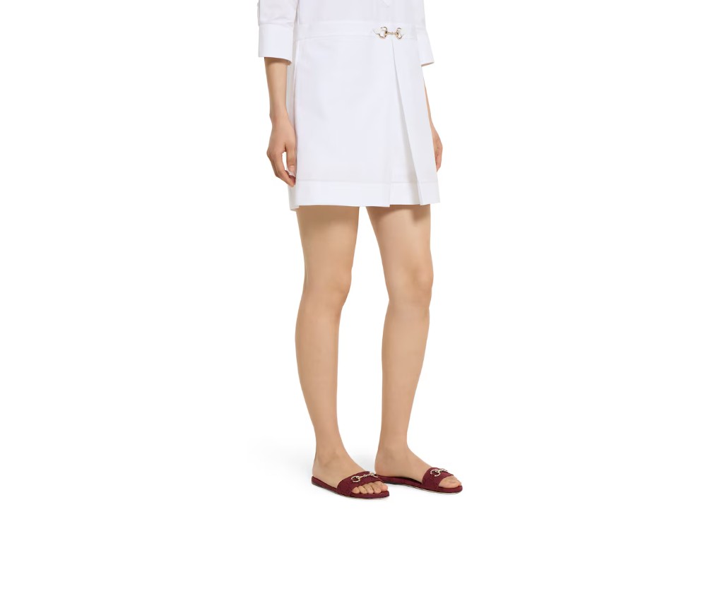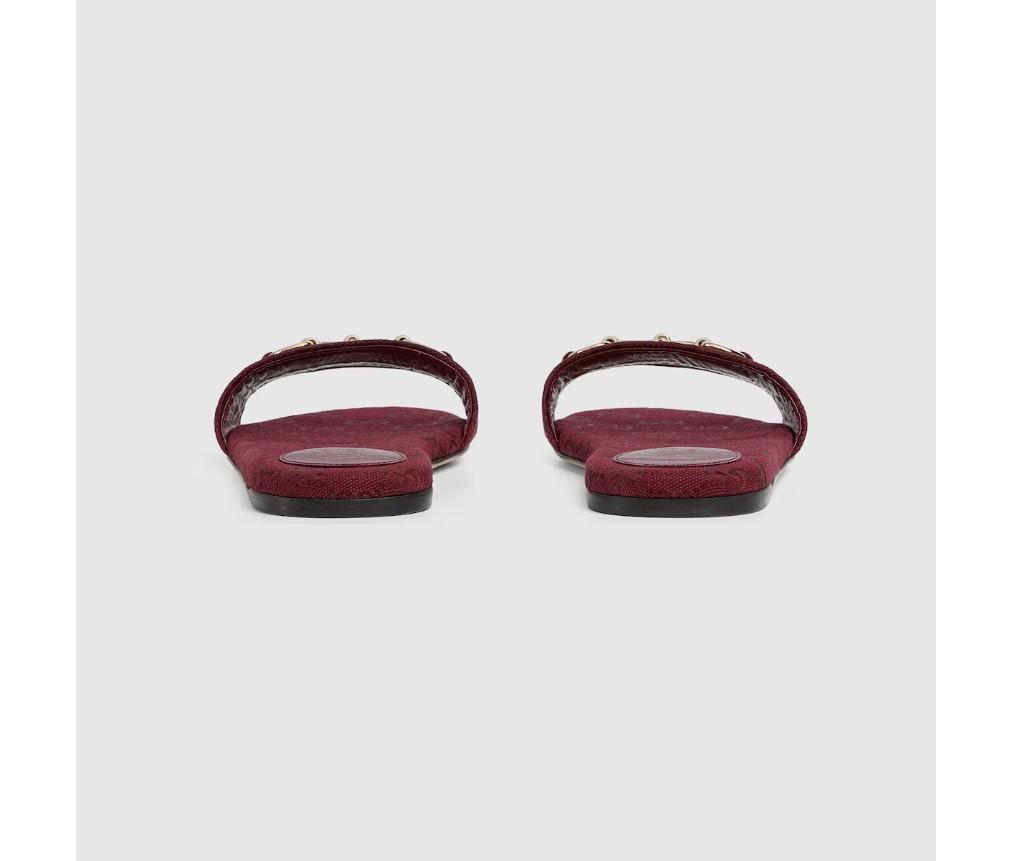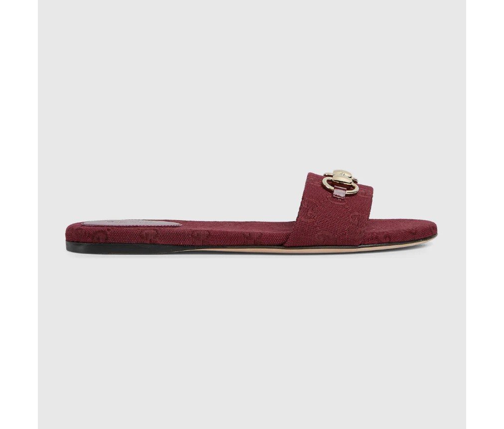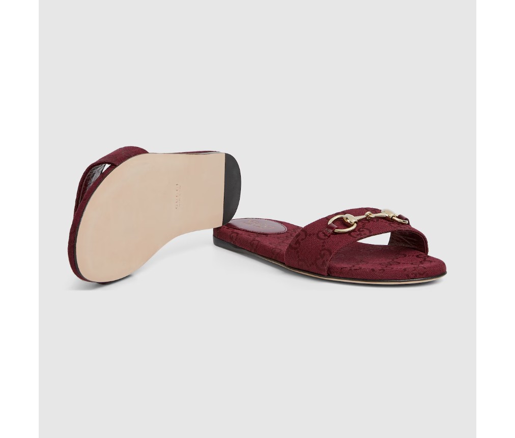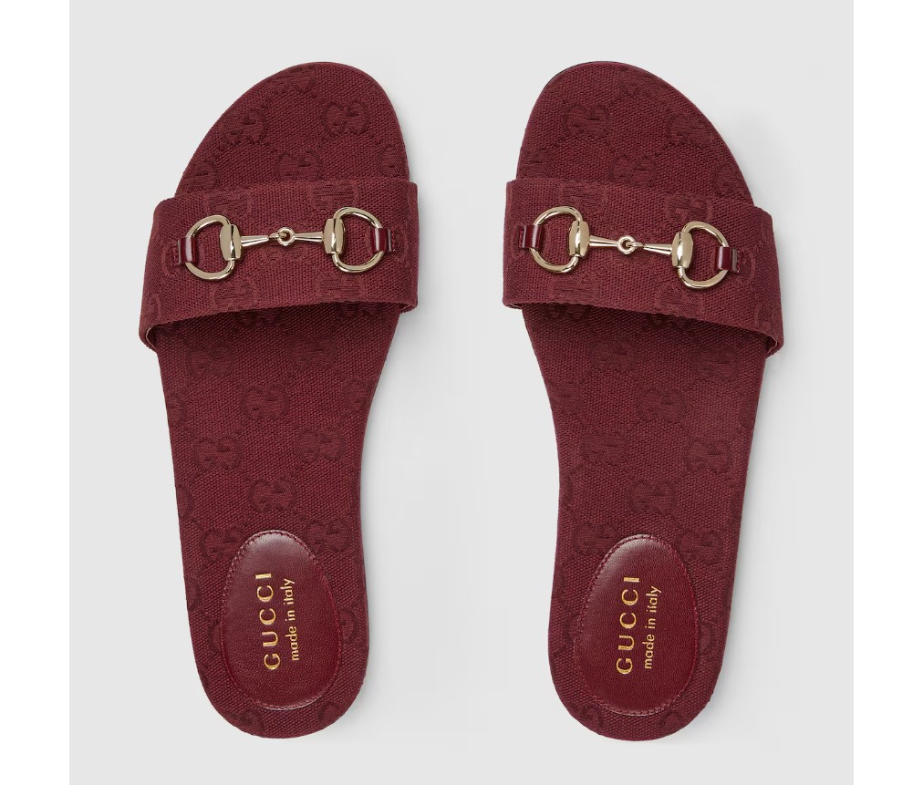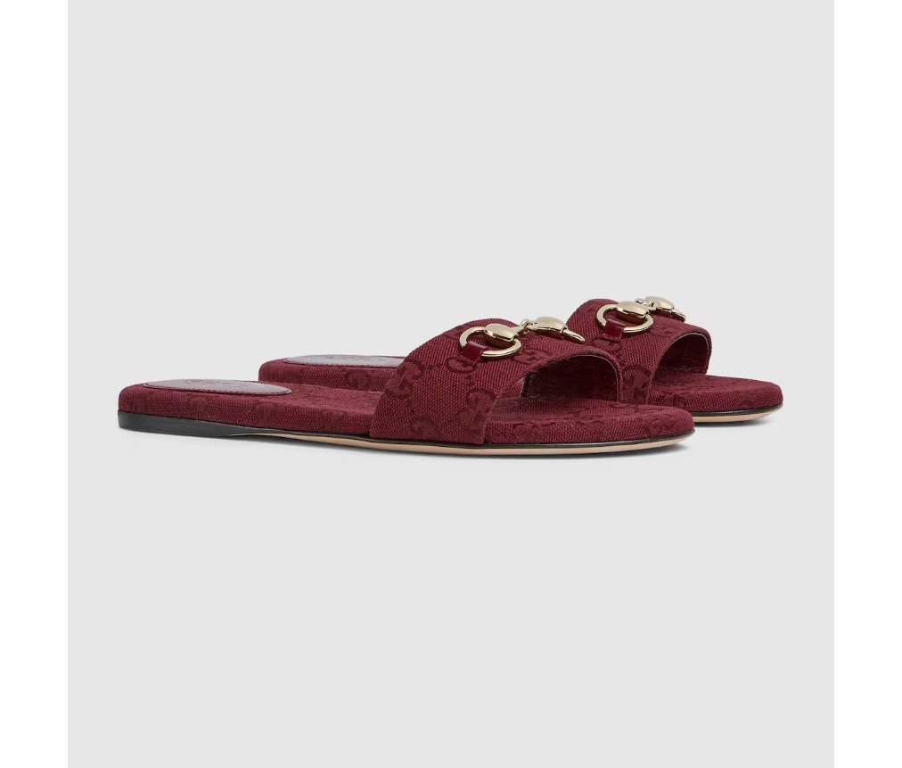 밝은 골드 톤의 호스빗 디테일이 특징인 이 슬라이드 샌들은 GG 캔버스로 제작되었으며, 세련된 소재와 전통적인 모티브가 결합되어 따뜻한 날씨에 입기에 세련된 느낌을 더해줍니다.