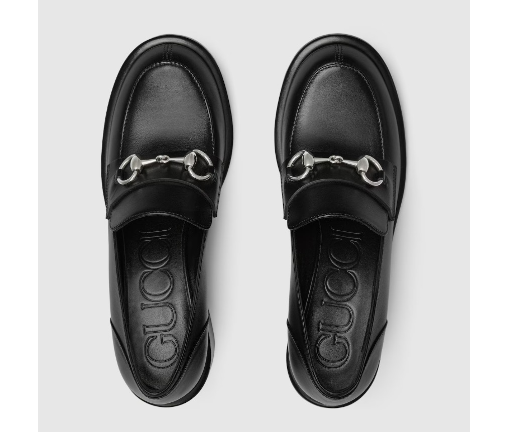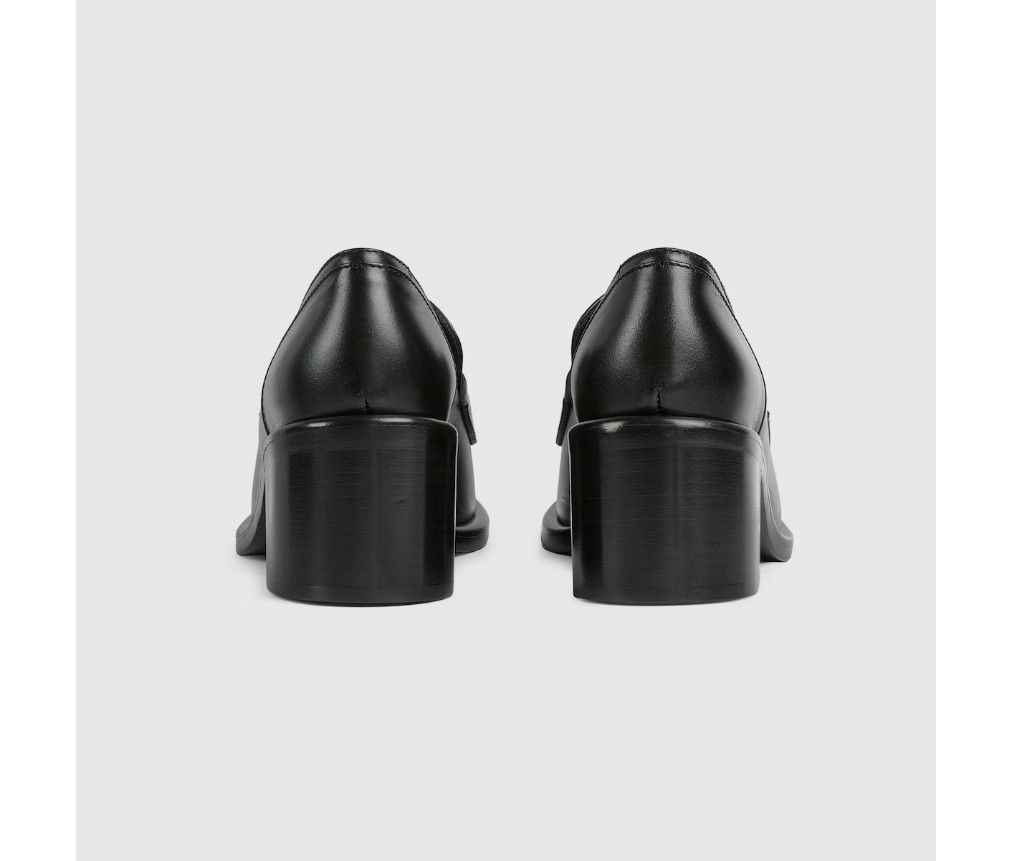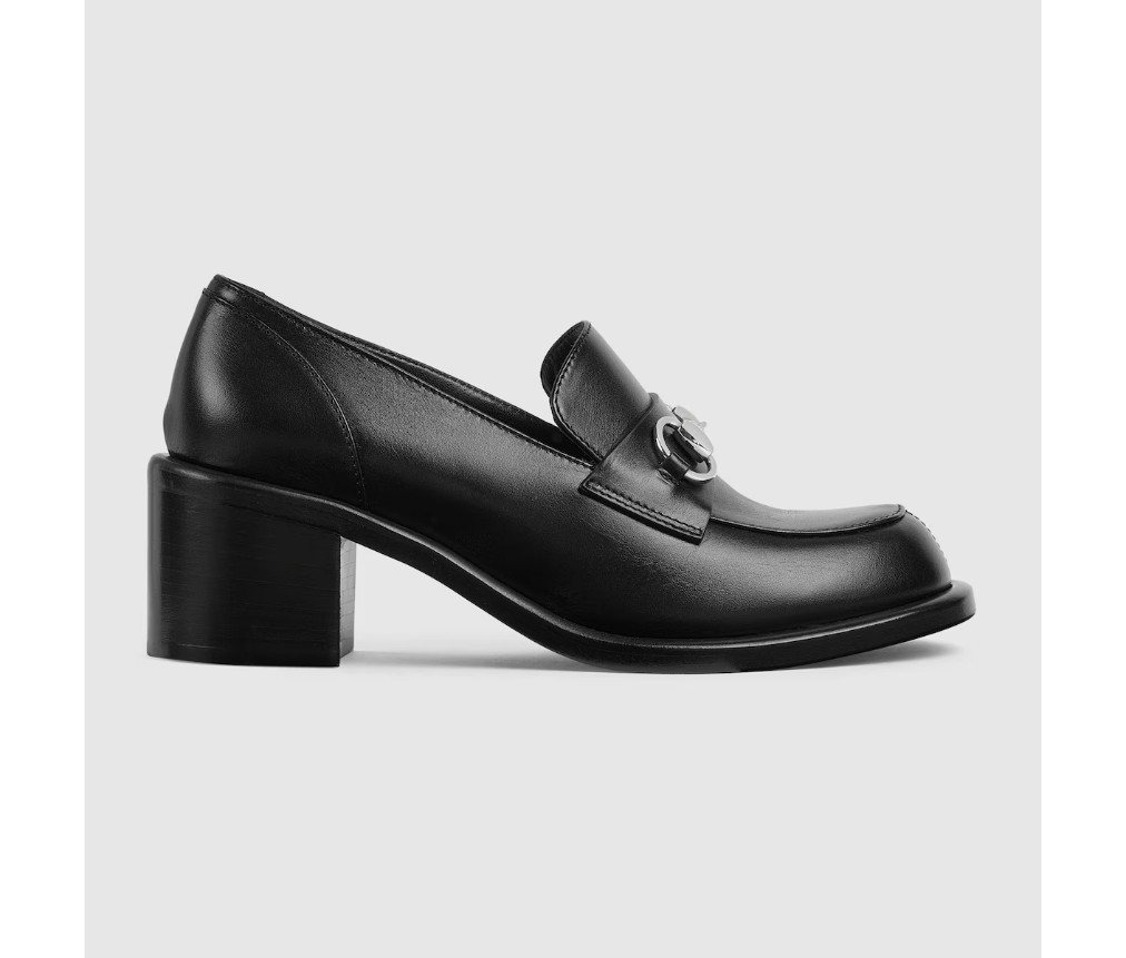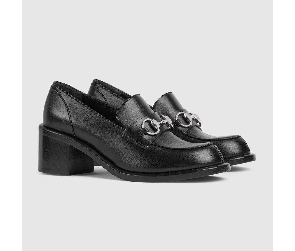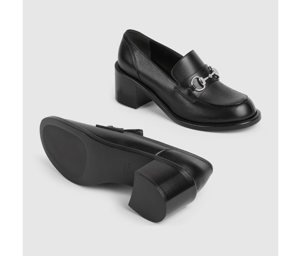스타일 835820 AADCW 1000브랜드의 승마 역사에 대한 헌정으로, 이 여성용 미드힐 로퍼는 밝은 골드 톤의 호스빗 하드웨어가 특징이며, 매끄럽고 반짝이는 가죽으로 제작되었습니다.