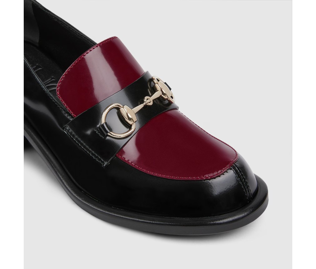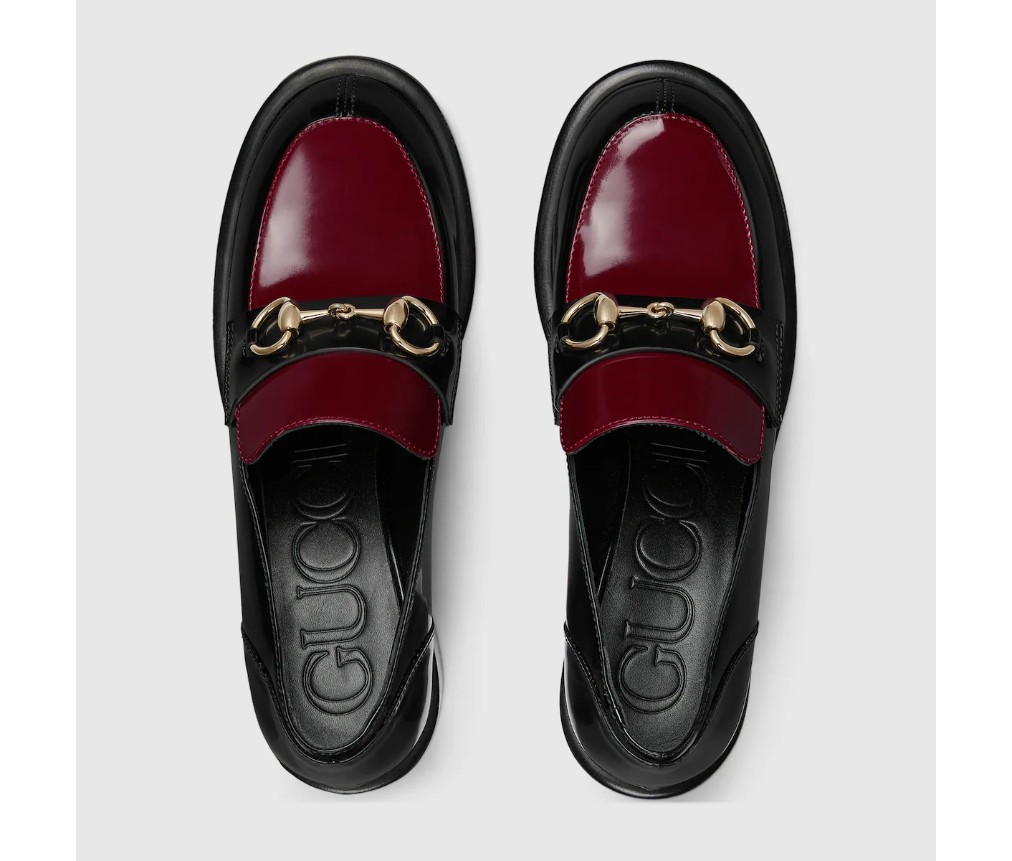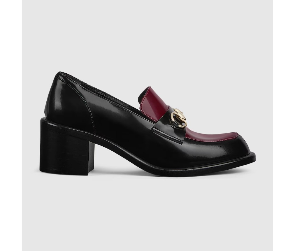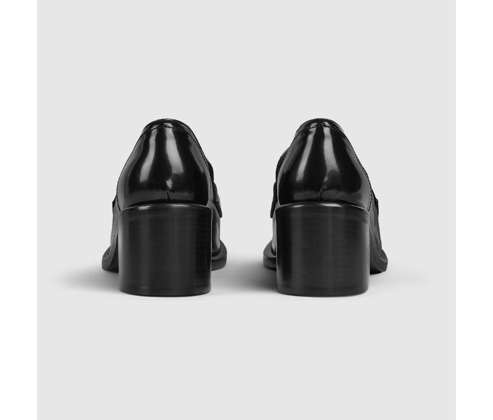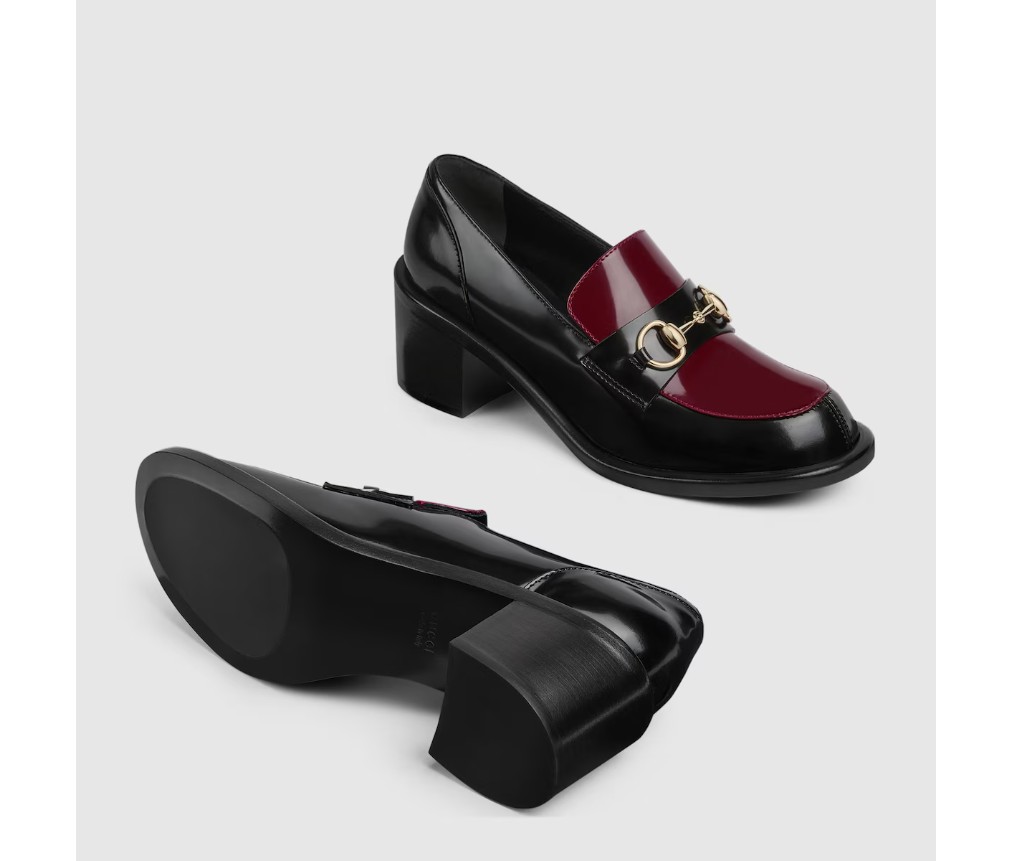 스타일 835820 CLG80 1057브랜드의 승마 역사에 대한 헌정으로, 이 여성용 미드힐 로퍼는 밝은 골드 톤의 호스빗 하드웨어가 특징이며, 매끄럽고 반짝이는 에나멜 가죽으로 제작되었습니다.