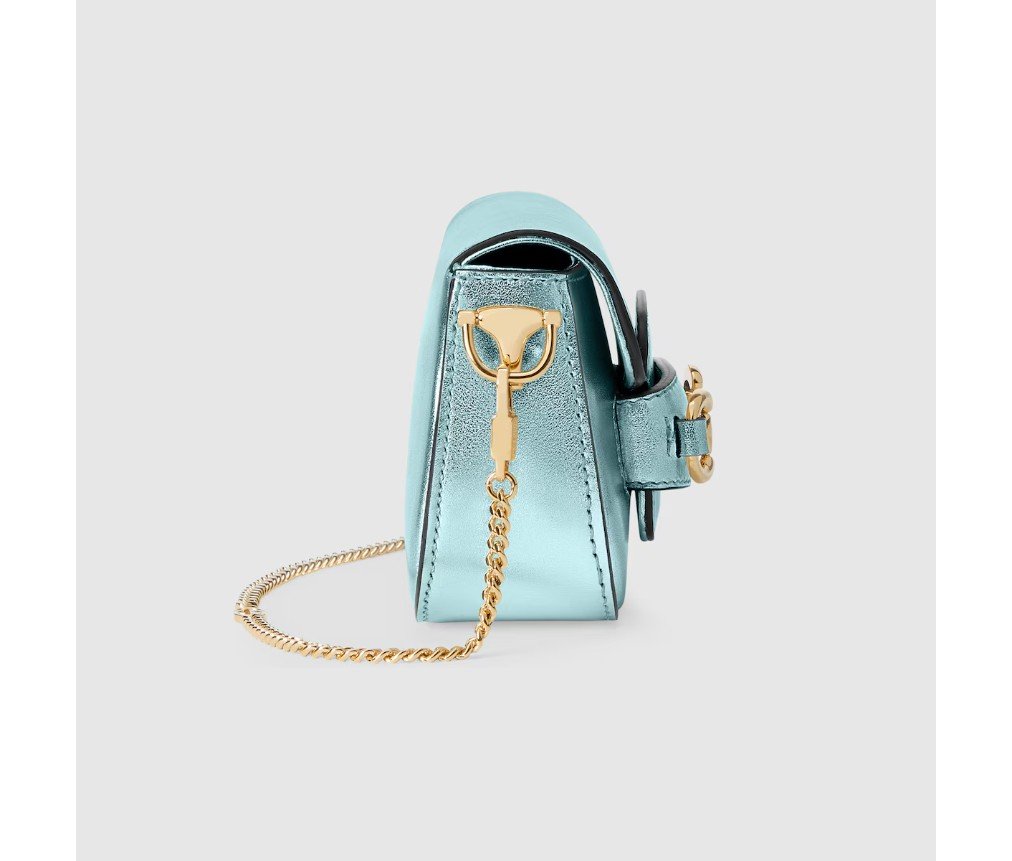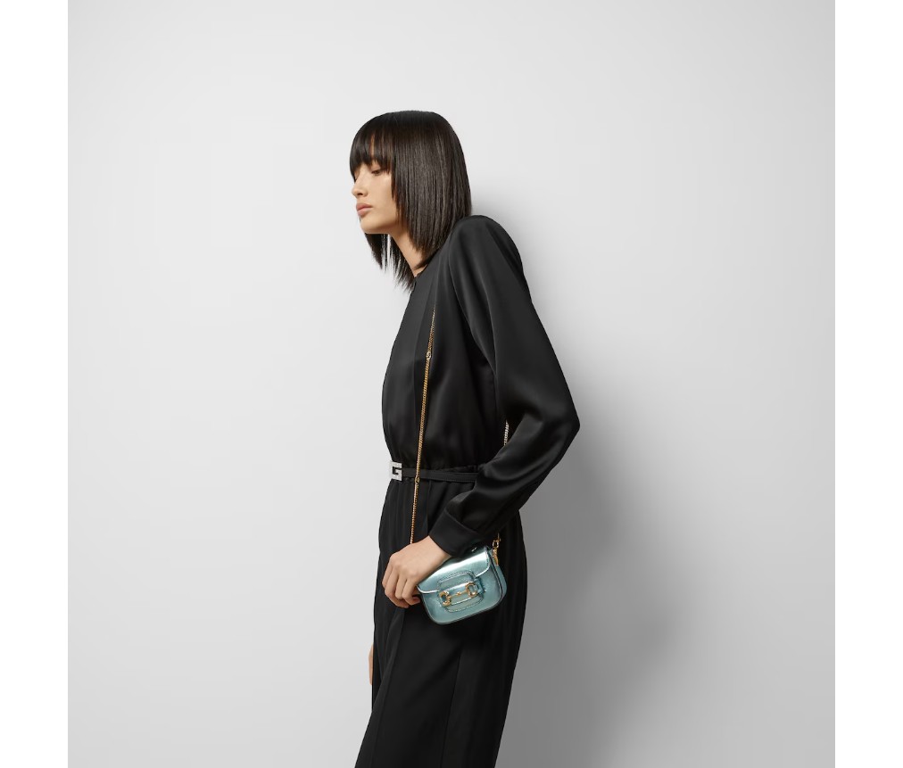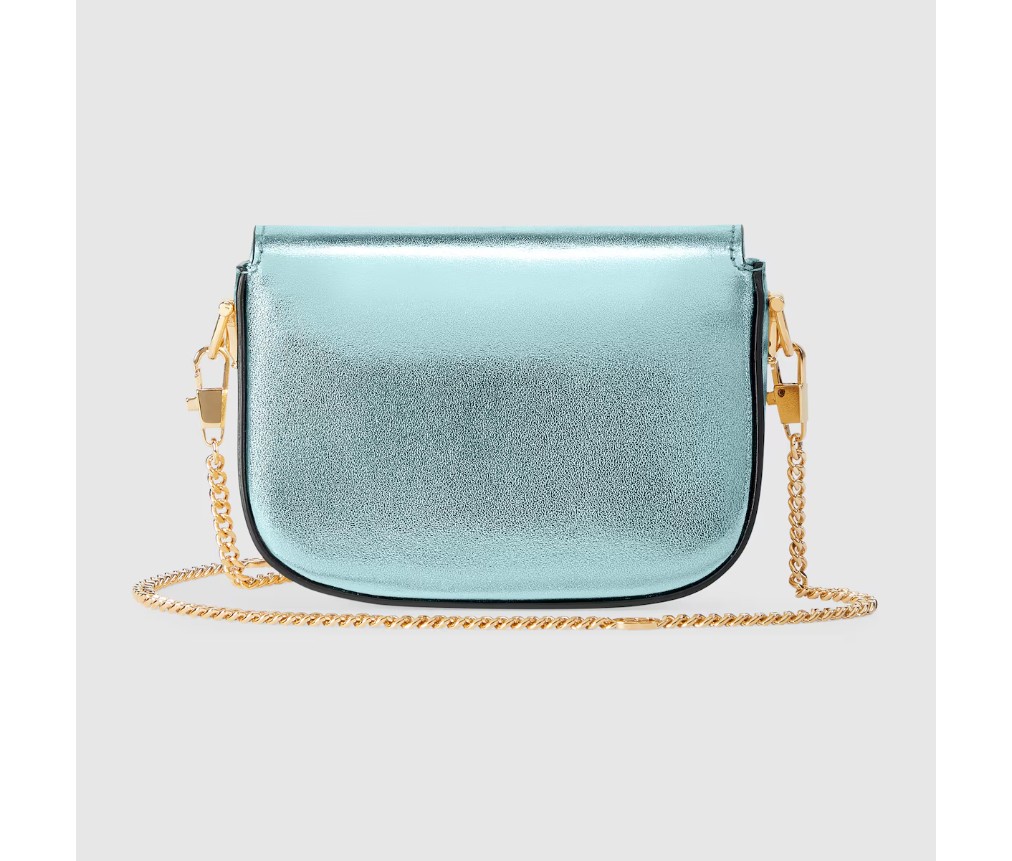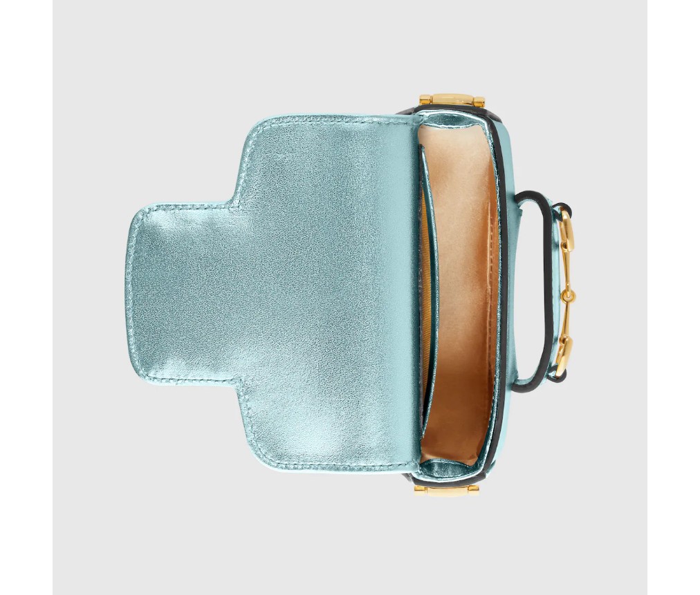 2023 가을/겨울 컬렉션을 맞아 구찌 시그니처 디자인이 미니어처로 재탄생했습니다. 동일한 하드웨어와 마감을 자랑하는 이 구찌 호스빗 1955 백은 오리지널 디자인에 유쾌한 변화를 더했습니다. 다양한 스타일링이 가능하여 데일리룩에 자연스럽게 녹아들 수 있습니다. 메탈릭 라이트 블루 라미네이트 가죽 소재로 출시되었습니다.