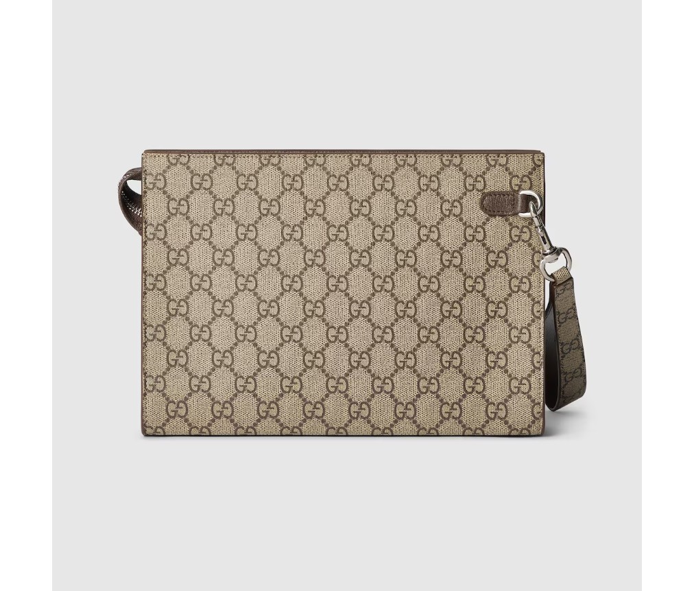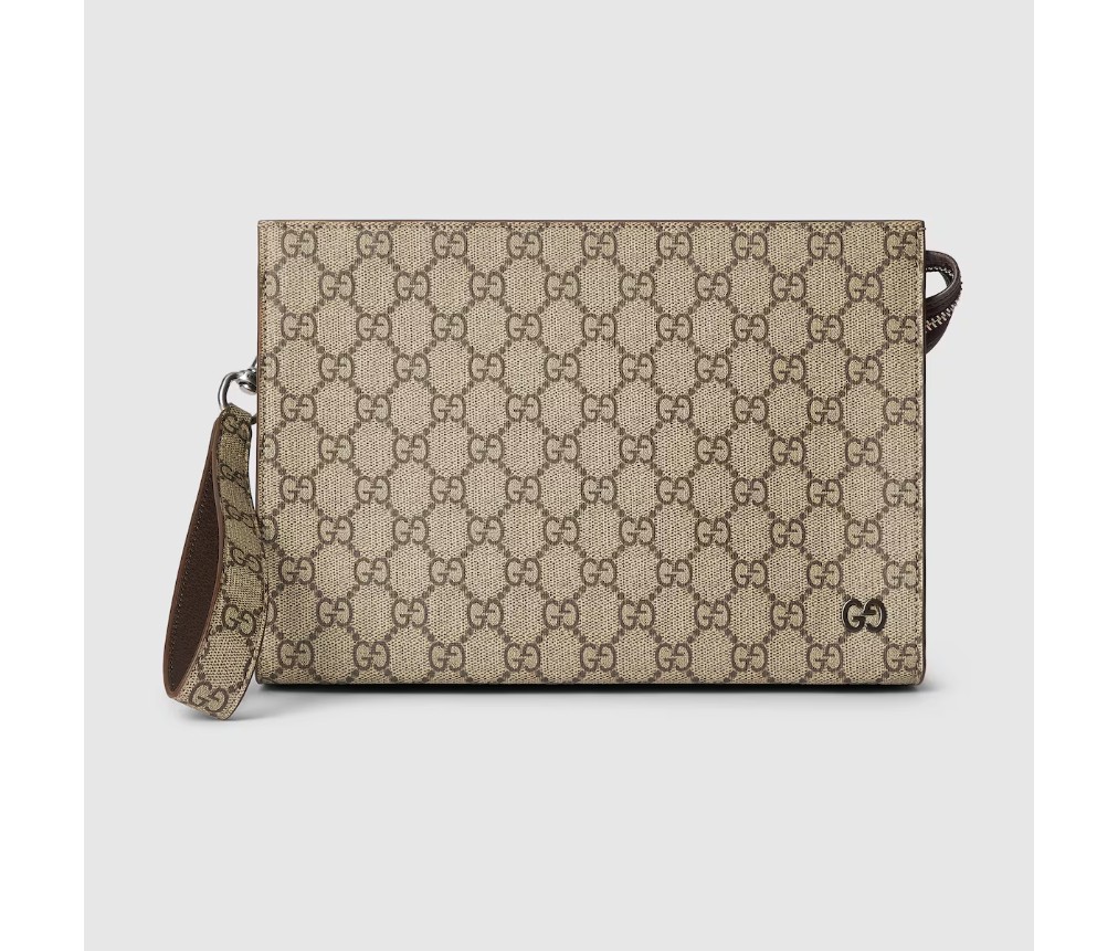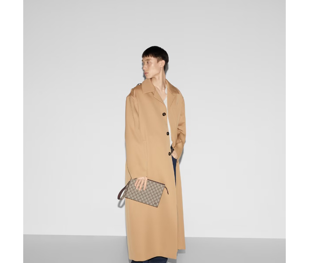 스타일 768255 FAQ 9773남성 가을 겨울 컬렉션을 위해 시그니처 스몰 액세서리가 새로운 컬러웨이와 조합으로 재출시되었습니다. 베이지와 에보니 GG 수프림 캔버스 소재로 제작된 이 파우치는 세라믹 효과 마감의 황동 하드웨어로 더욱 돋보입니다. 브라운 가죽 트림이 액세서리를 완성합니다.