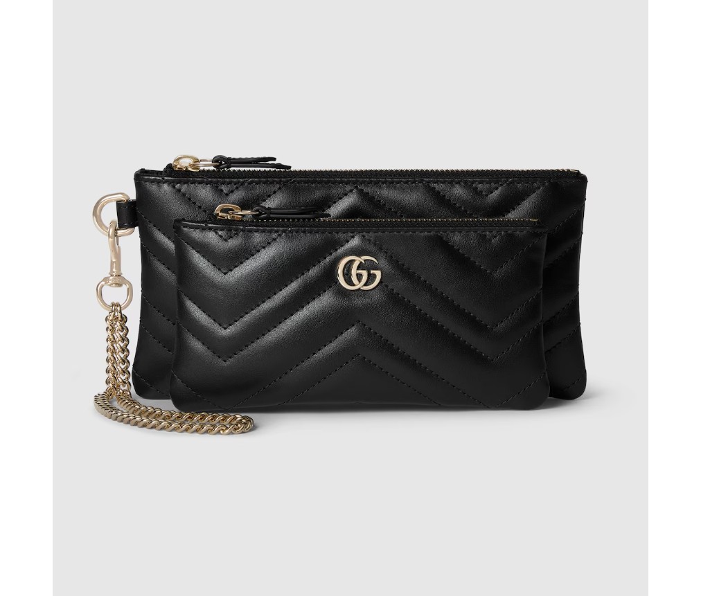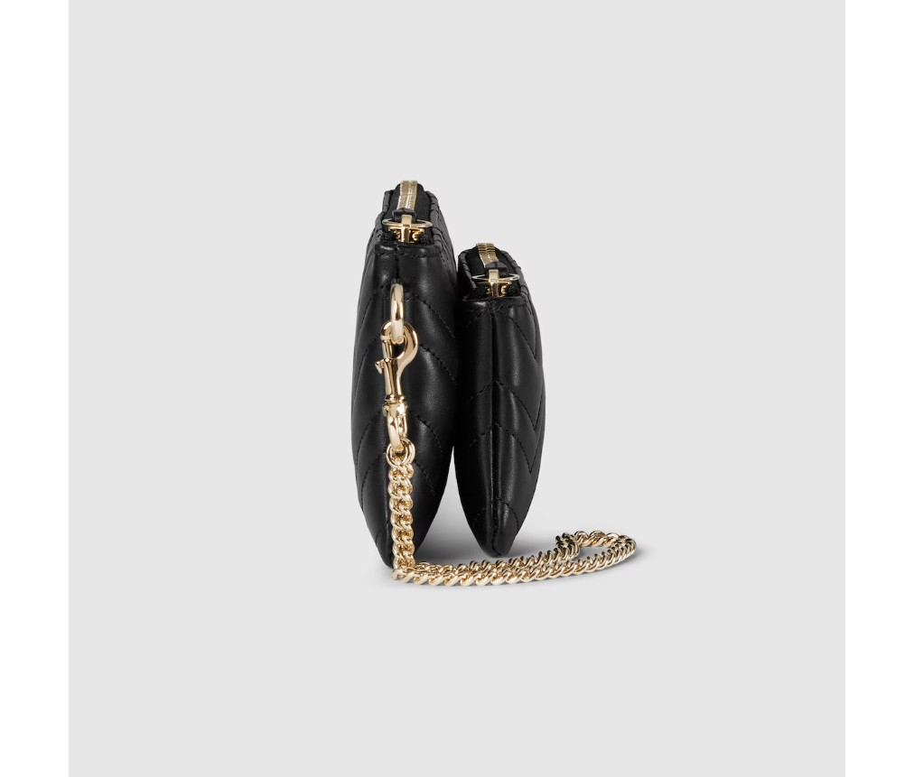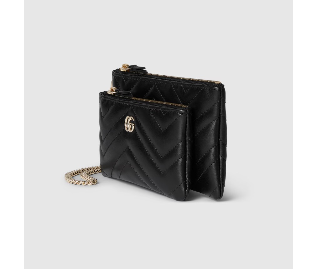 스타일 837744 AAET8 1000GG 마몬트 체인 파우치는 마틀라세 가죽 소재로 선보입니다. 컬렉션의 시그니처인 더블 G 하드웨어가 스타일을 완성합니다.