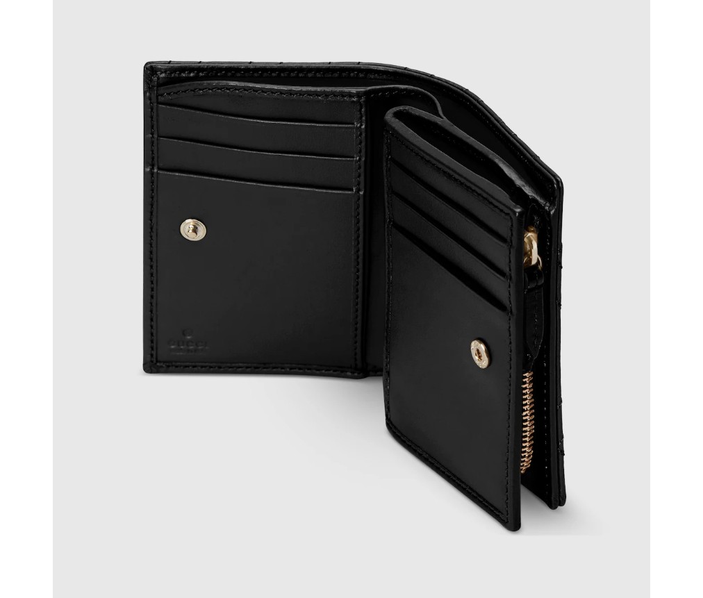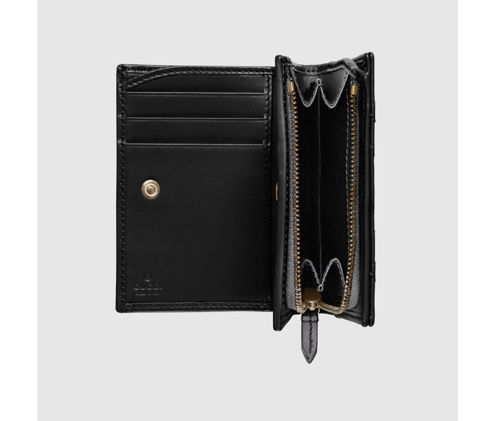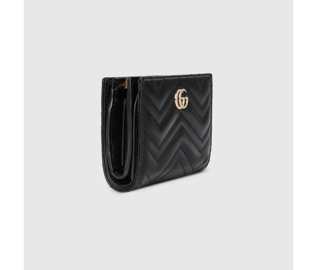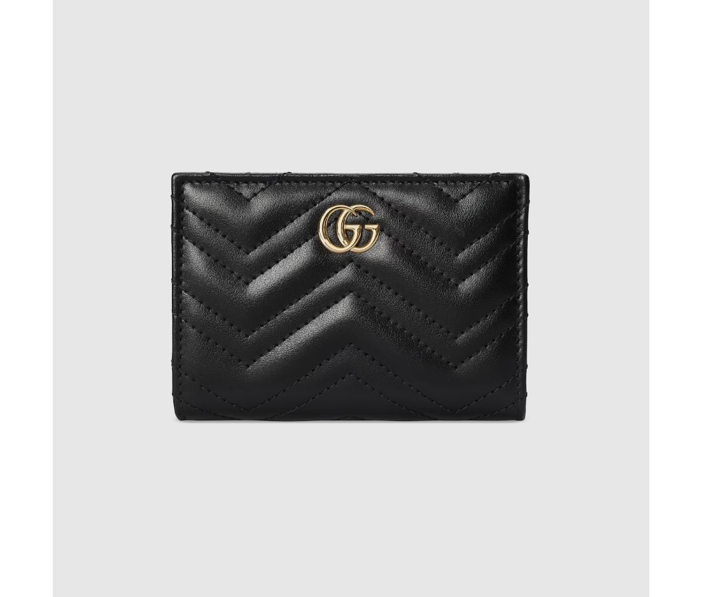 스타일 773427 AAET8 1000이 GG 마몬트 지갑에는 작은 사이즈의 더블 G 하드웨어가 은은한 로고로 표현되어 있습니다. 클래식한 색상이 이 블랙 마틀라세 셰브론 가죽처럼 시그니처 레더굿 제품에 아이코닉한 터치를 더합니다.