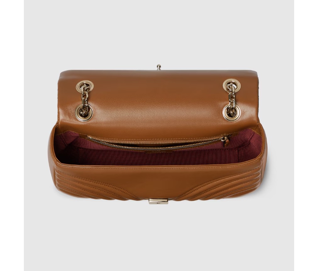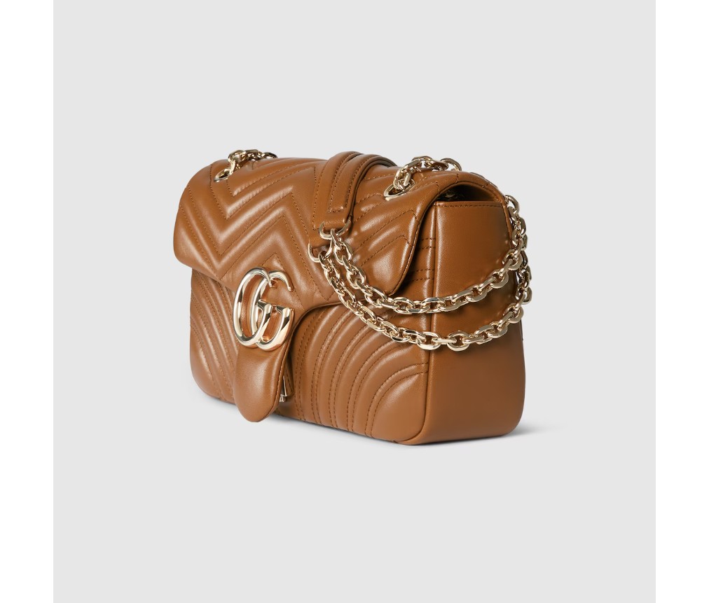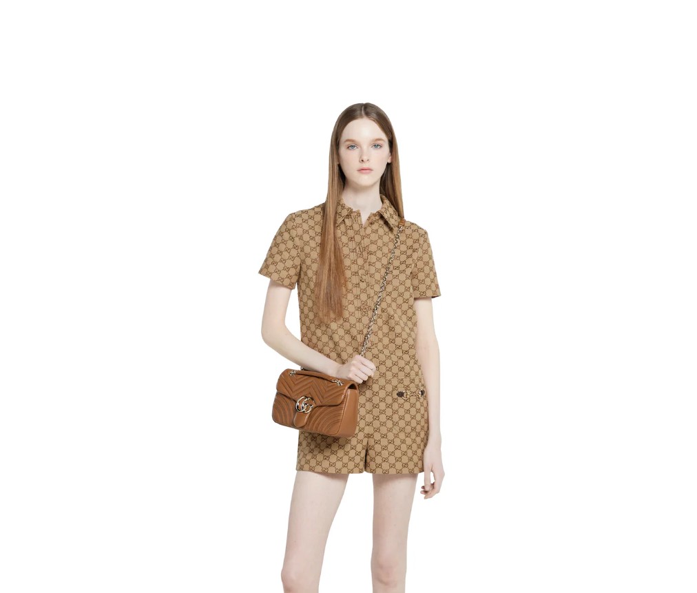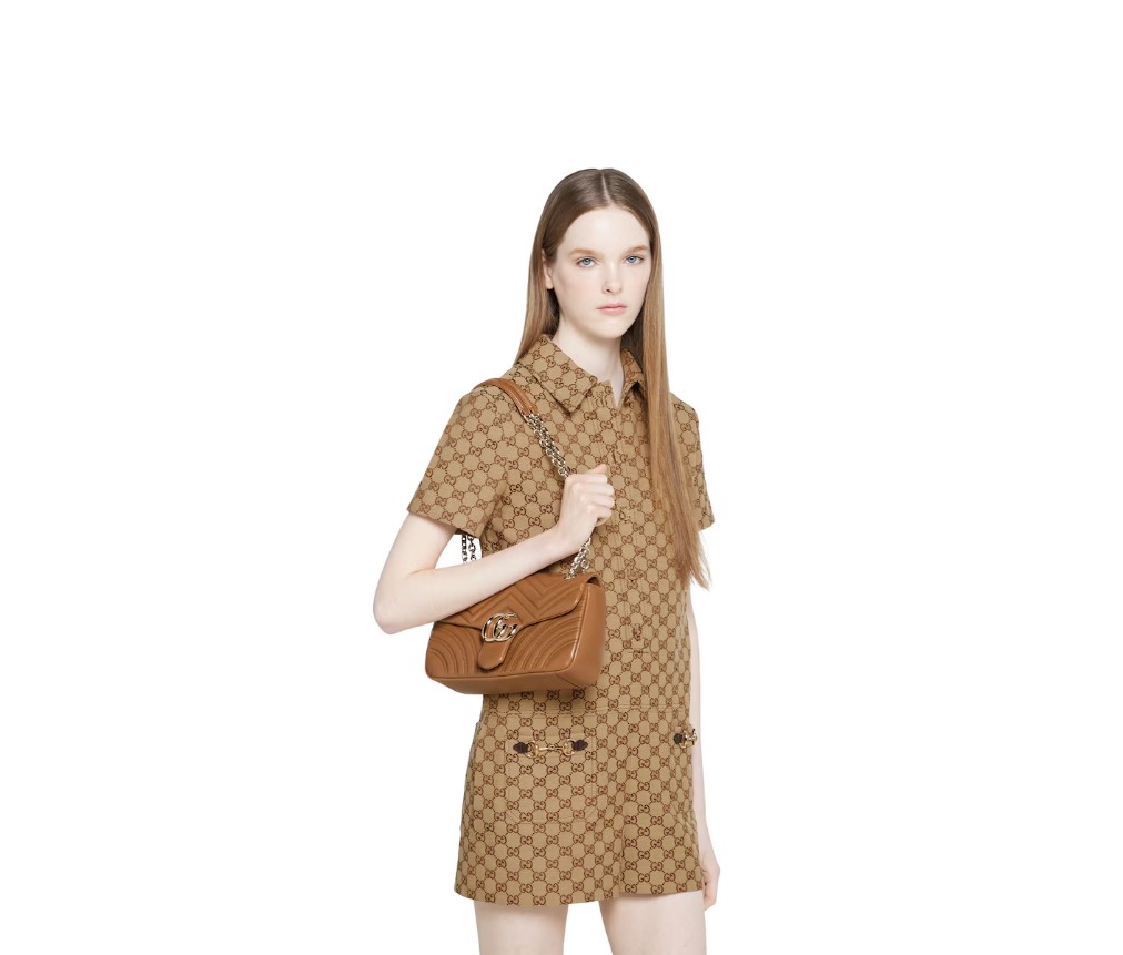 스타일 837267 AAE38 2718하우스의 시그니처 컬렉션인 GG 마몬트는 더블 G 하드웨어, 면 처리된 체인 스트랩, 그리고 매우 부드러운 가죽 소재의 부드러운 구조가 특징입니다. 미디엄과 라지 사이즈에는 세련된 뒷면 포켓이 기능적인 감각을 더합니다.