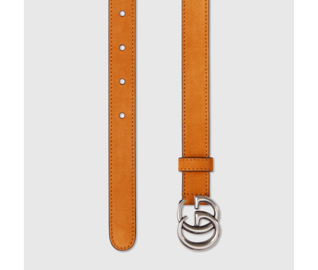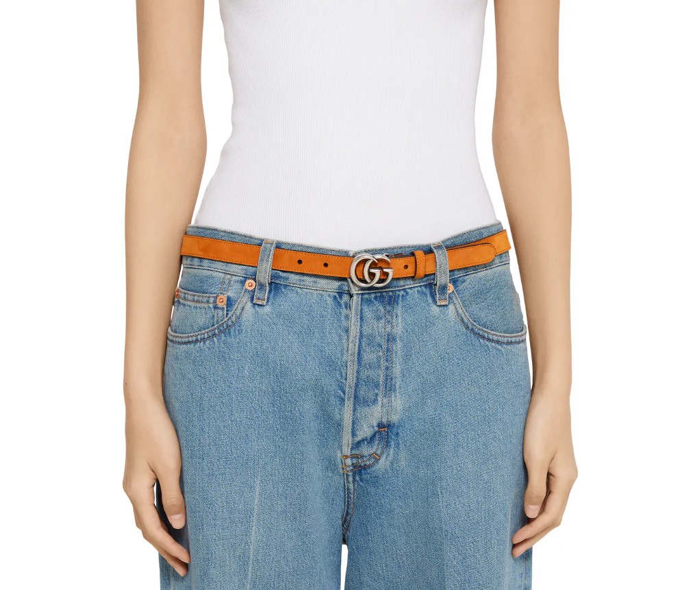 이 대담한 GG 마몽 벨트는 2025 프리폴 컬렉션의 일부로 출시되었습니다. 마몽 하우스의 유산에서 영감을 받은 이 벨트는 스웨이드 소재로 제작되었으며, 팔라듐 톤의 더블 G 버클이 특징입니다.