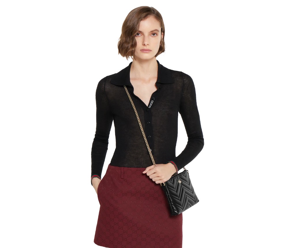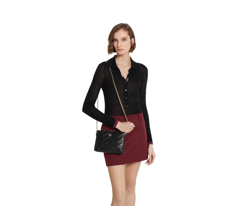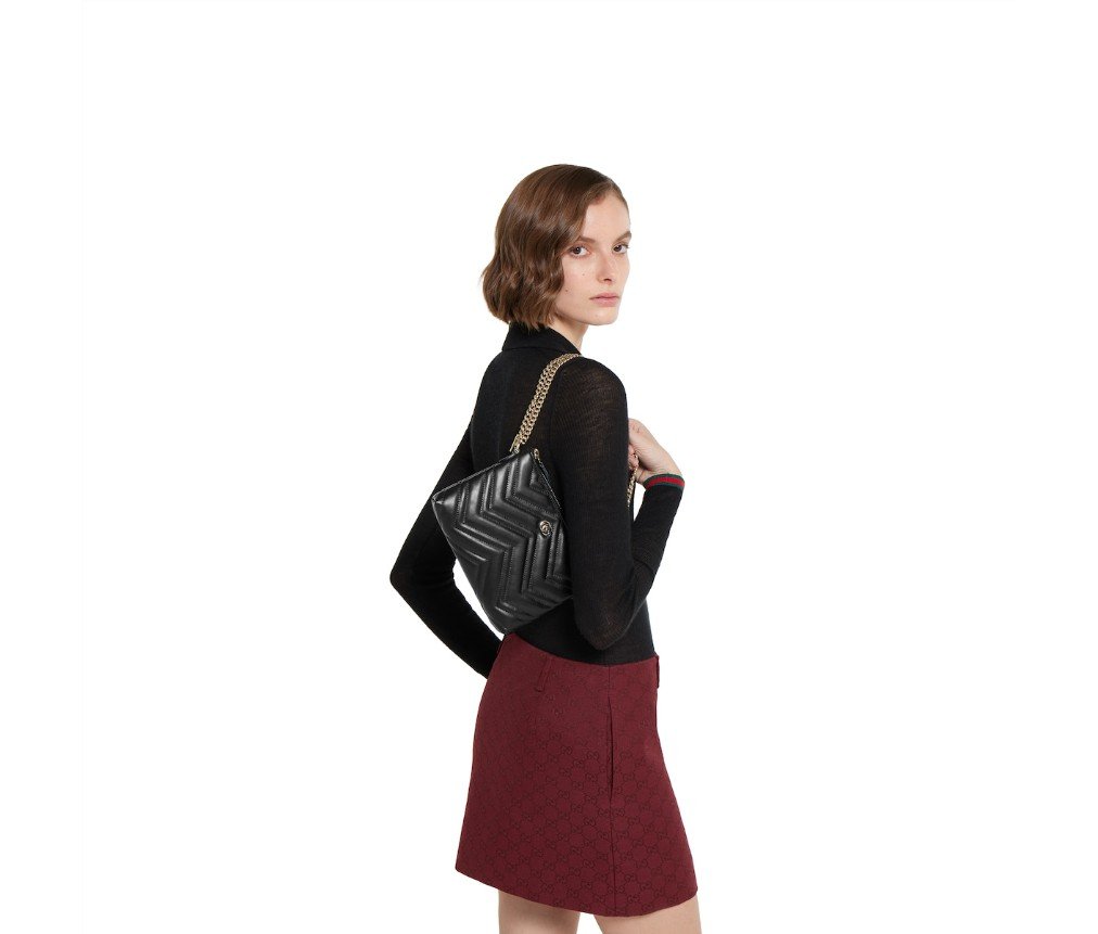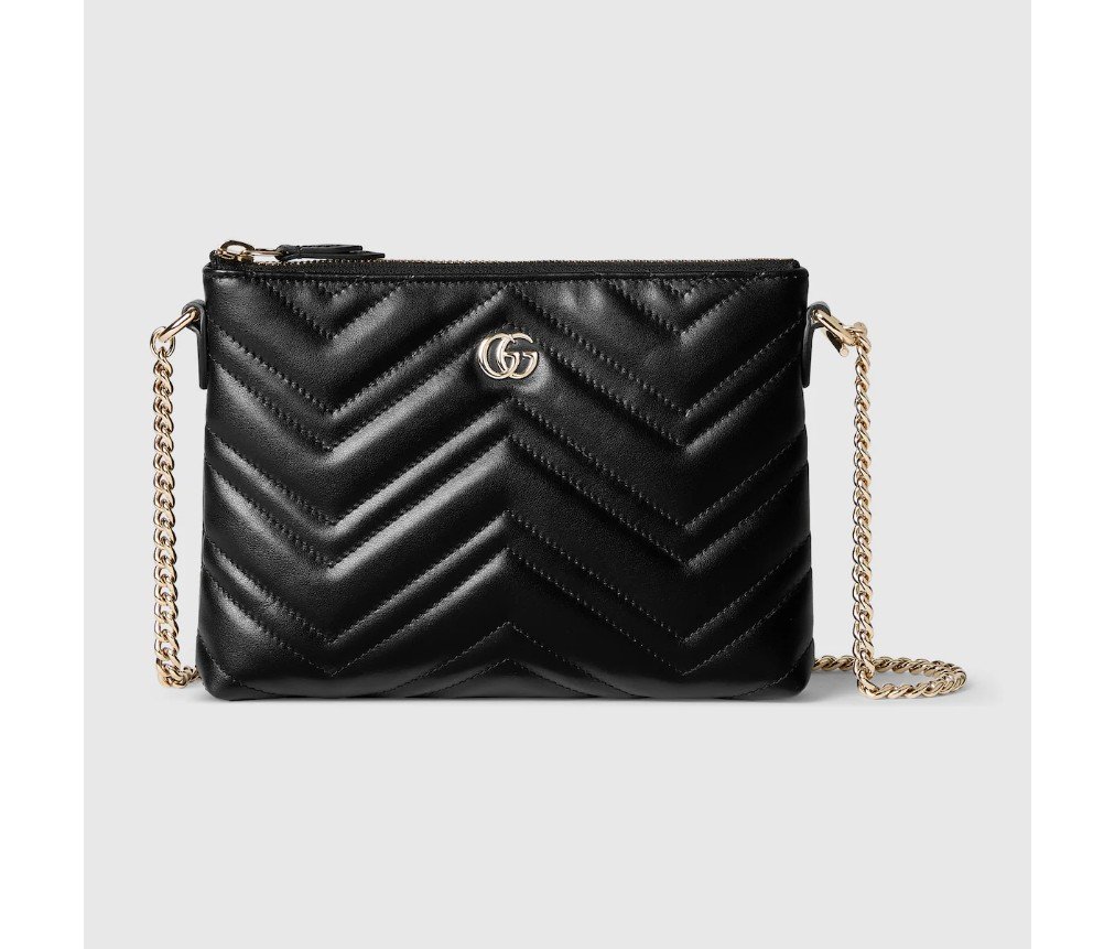 GG 마몬트(GG MARMONT)는 하우스의 시그니처 컬렉션으로, 현대적인 실루엣을 자랑합니다. 체인 장식이 달린 이 포셰트는 1970년대에 처음 선보인 아카이브 로고를 더욱 돋보이게 합니다.