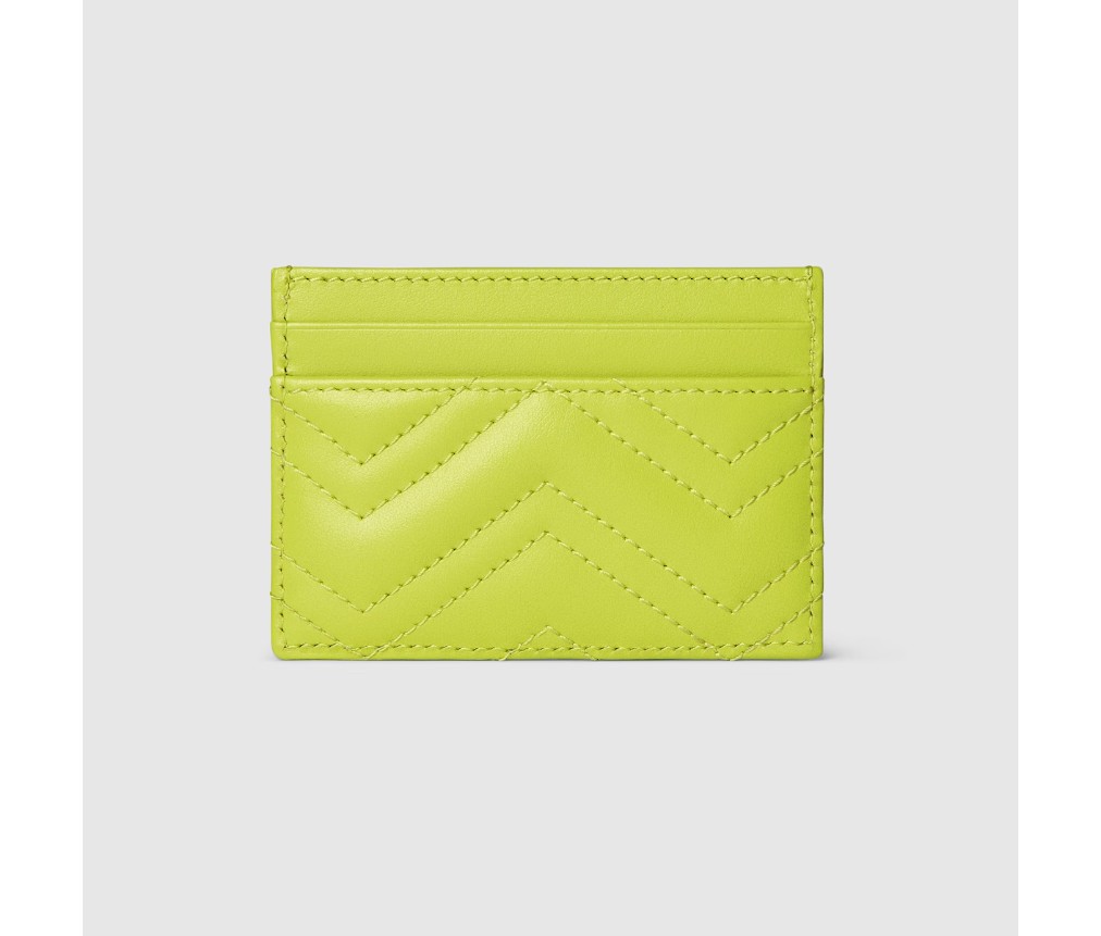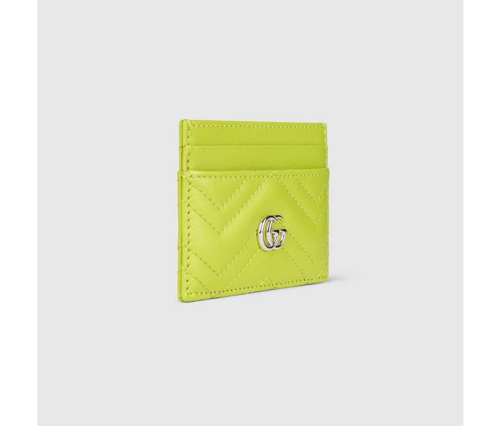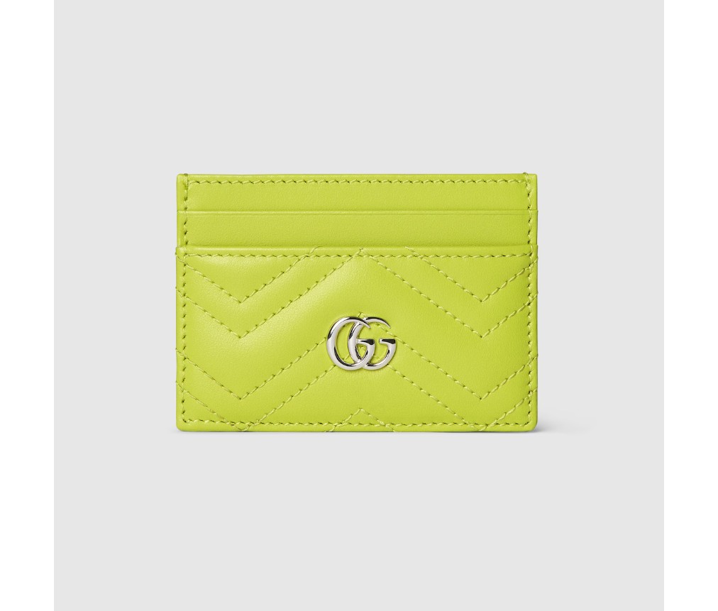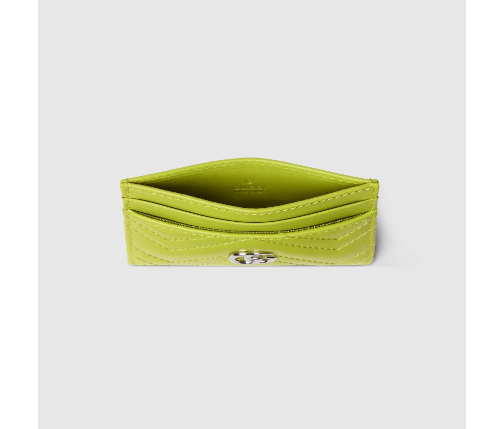 이 GG 마몽 카드 케이스는 밝은 그린 색상의 마틀라세 셰브론 가죽으로 제작되었습니다. 구조적인 디자인에 실버 톤의 시그니처 더블 G 하드웨어가 돋보입니다.