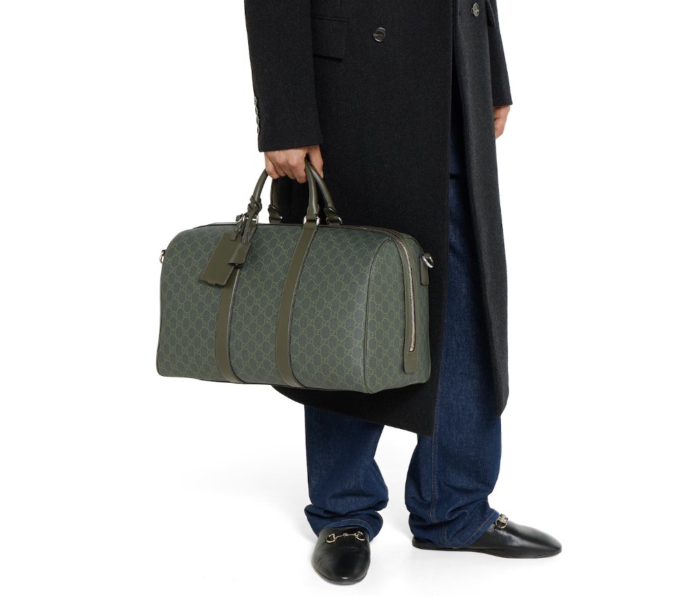 스타일 792074 FAFAI 84892025 가을/겨울 컬렉션에서 선보이는 GG 모노그램 코팅 패브릭은 하우스의 시그니처 모티프 중 하나를 새롭게 재해석한 작품입니다. 미디엄 더플 백에 매치되어 있으며, 톤온톤 가죽 트리밍으로 완성되었습니다.
