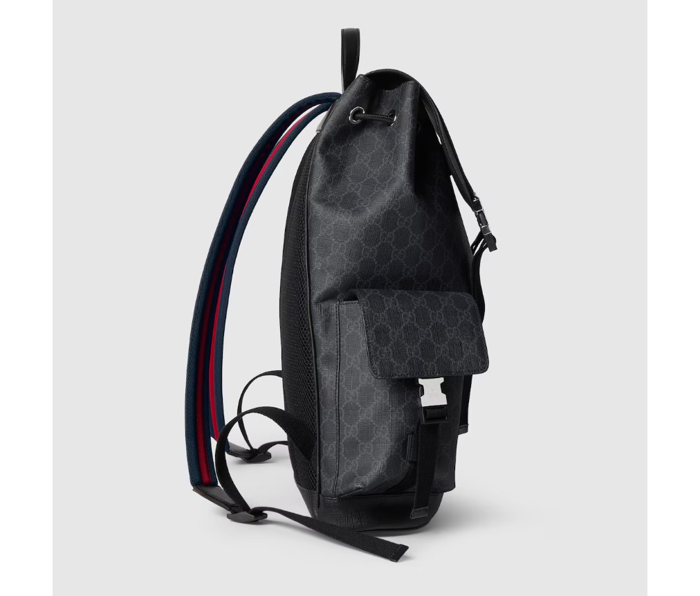 시그니처 GG 수프림 캔버스는 부드럽고 유연한 특성 덕분에 GG 수프림의 변함없는 사랑을 받고 있습니다. 코팅 처리된 마이크로파이버 소재로 제작되었으며, 이 백팩은 올블랙 컬러로 디자인되어 독특한 개성을 드러냅니다. 톤온톤 가죽 트림이 스타일을 완성하고, 아카이브 웹 스트라이프가 포인트 컬러로 활용되었습니다.