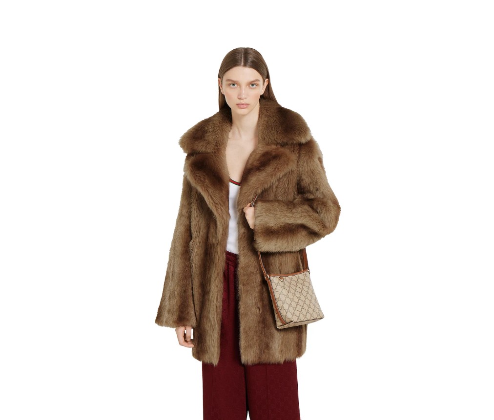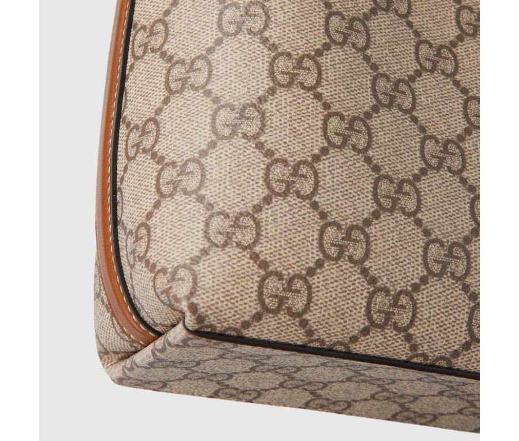 – 베이지색과 짙은 갈색의 새로운 GG 모노그램 코팅 원단