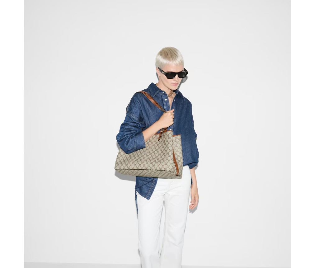 새로운 GG 엠블럼 컬렉션은 하우스의 우아함과 장인정신을 재해석한 작품입니다. 이 토트백은 승마에서 영감을 받은 조절 가능한 상단 핸들에 번호가 새겨진 홈이 특징입니다.