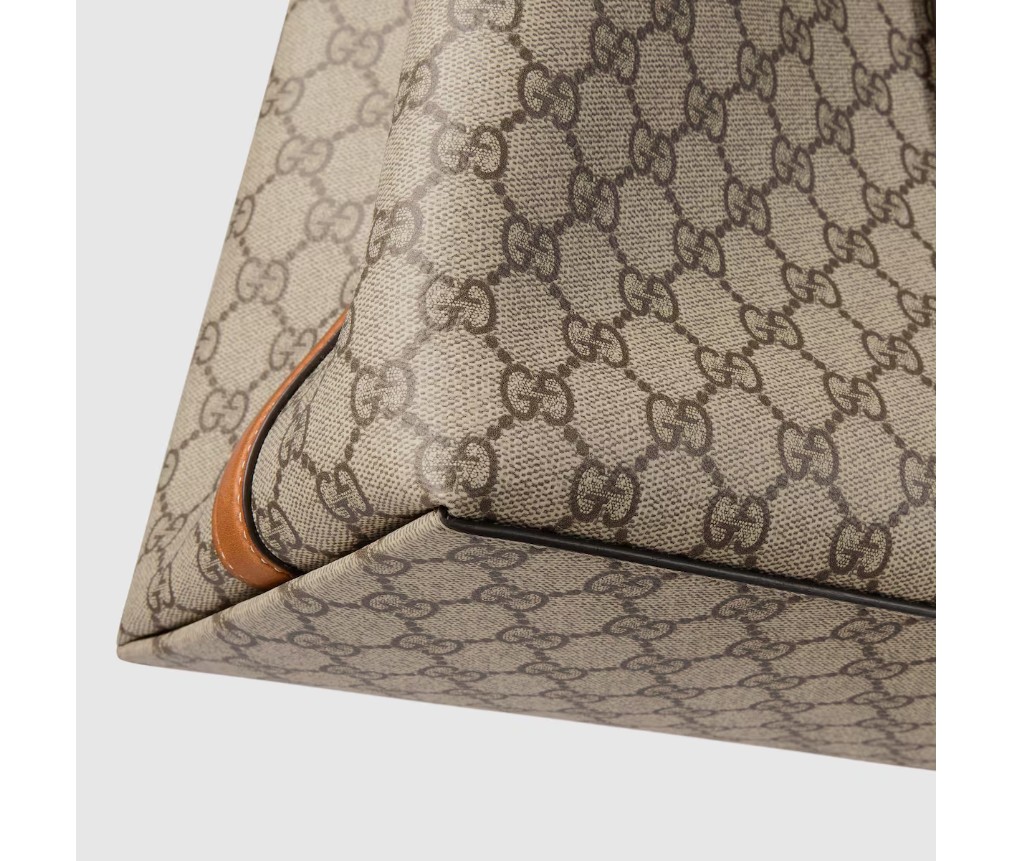 – 베이지색과 짙은 갈색의 새로운 GG 모노그램 코팅 원단