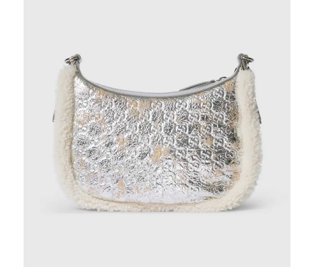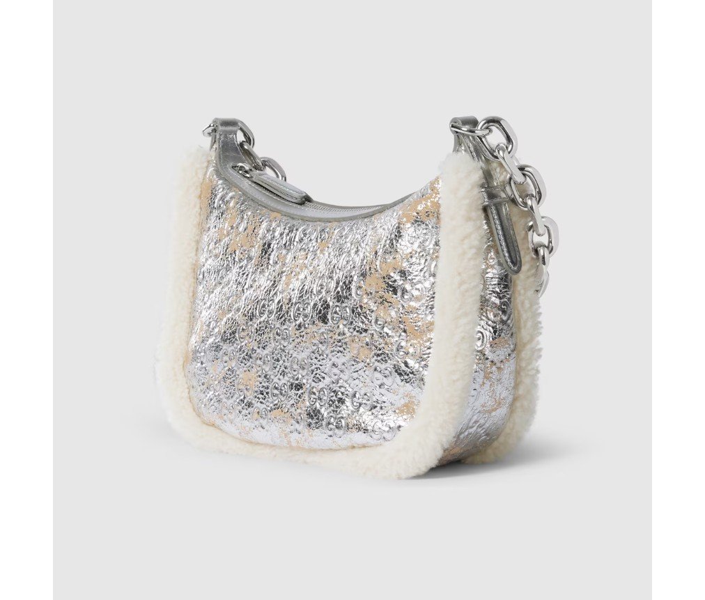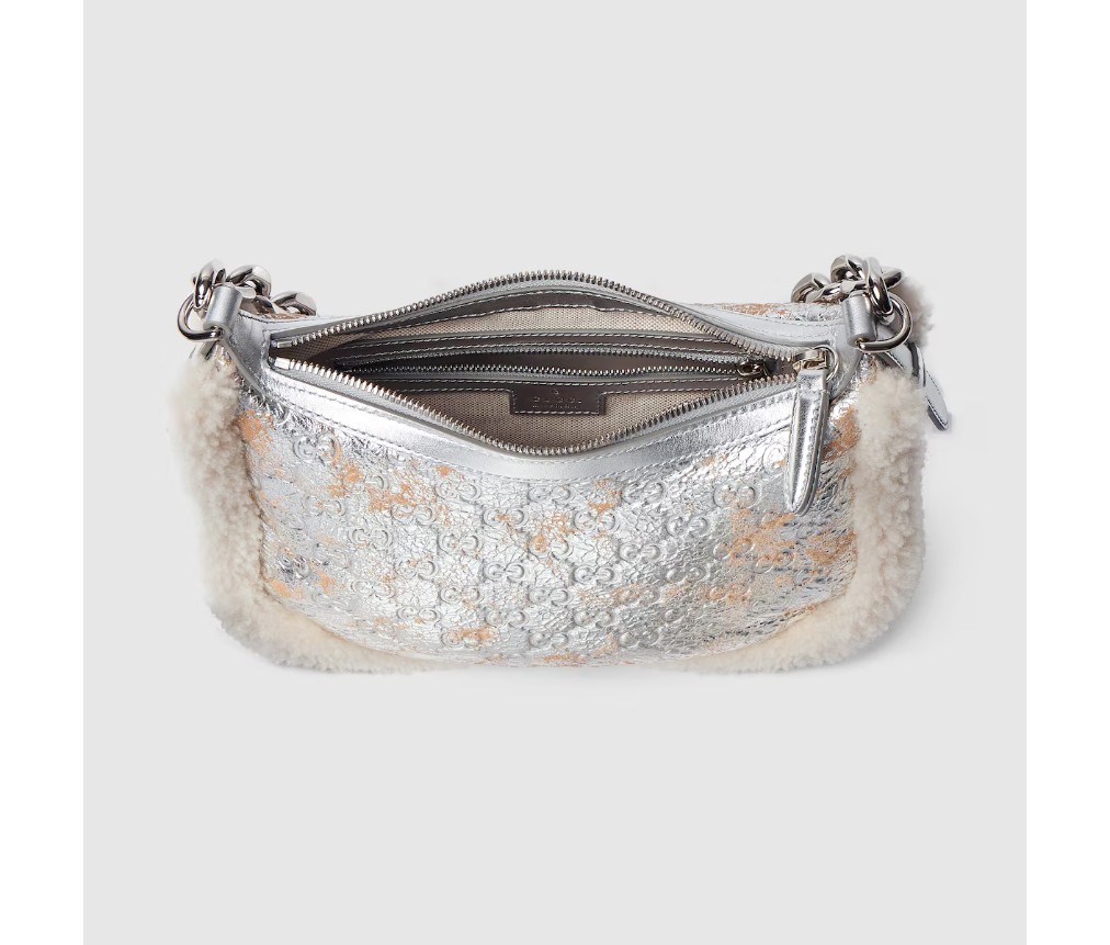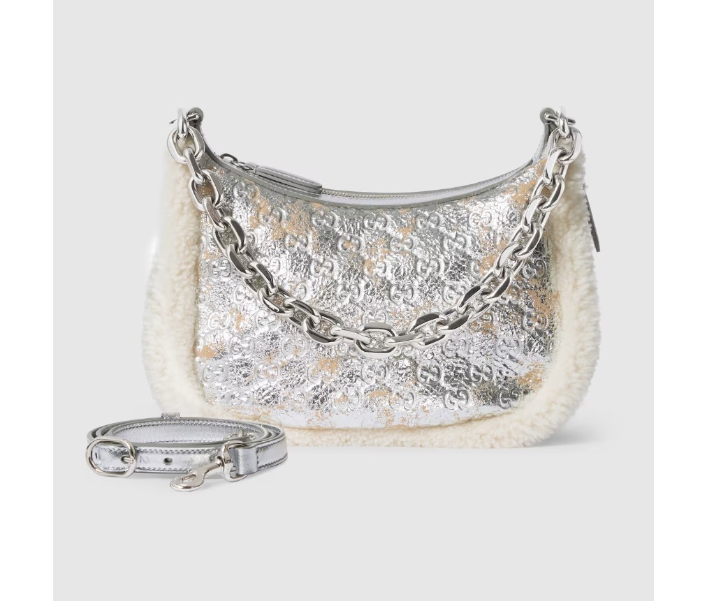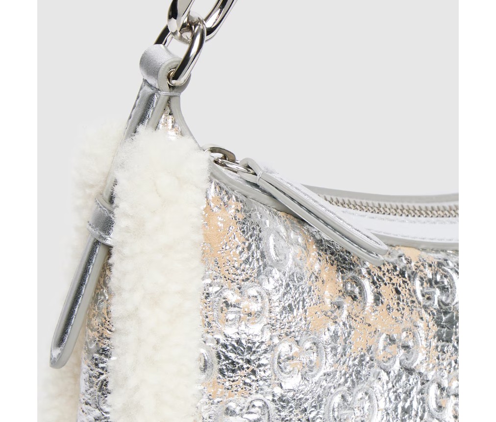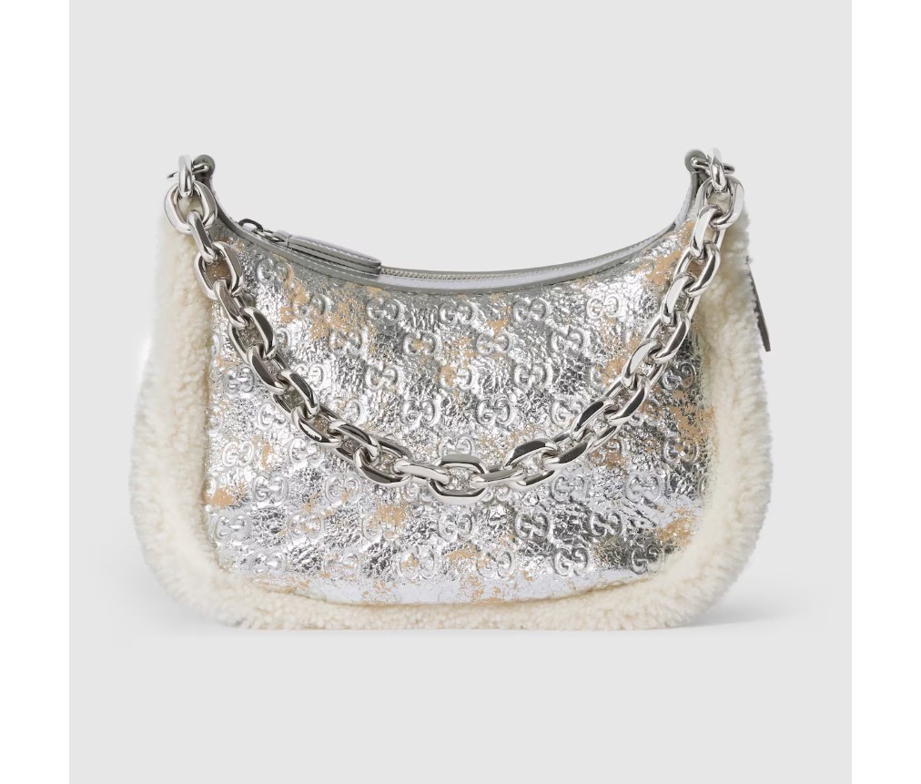 GG 엠블럼 컬렉션은 하우스의 우아함과 장인정신의 역사를 재해석하여, 독특한 질감의 가죽을 선보이며, 양털 장식이 더해진 숄더백 실루엣에 새로운 빛을 더합니다.