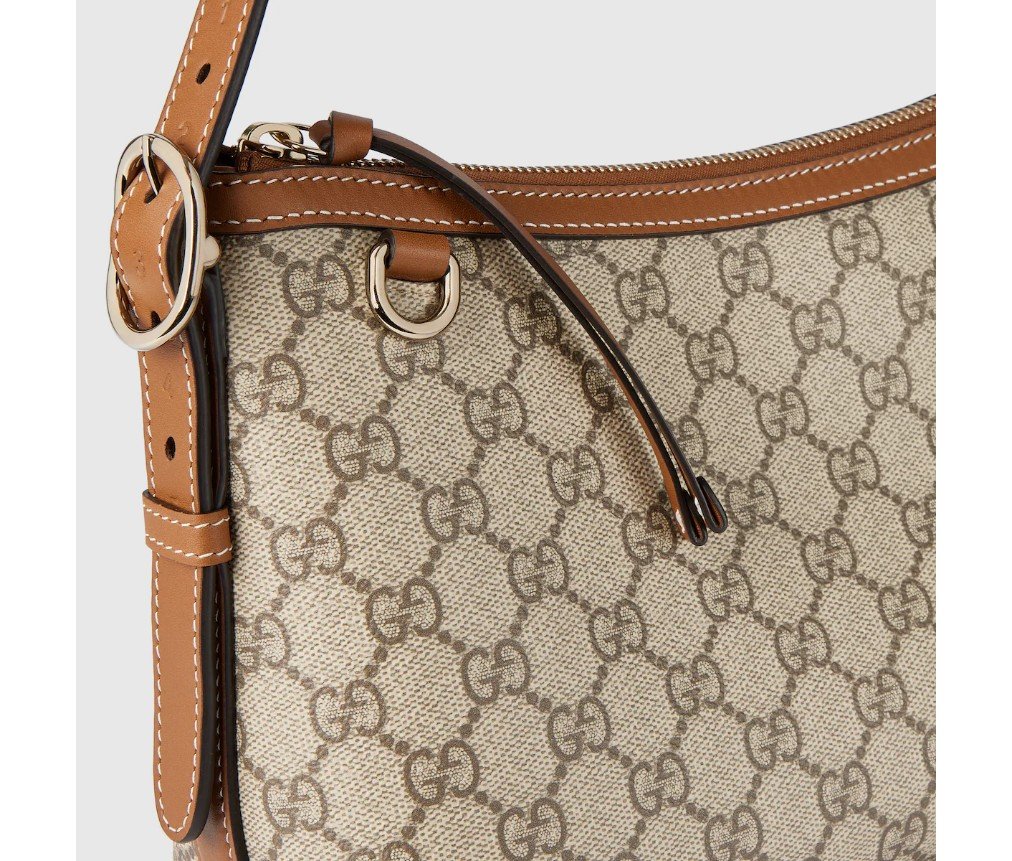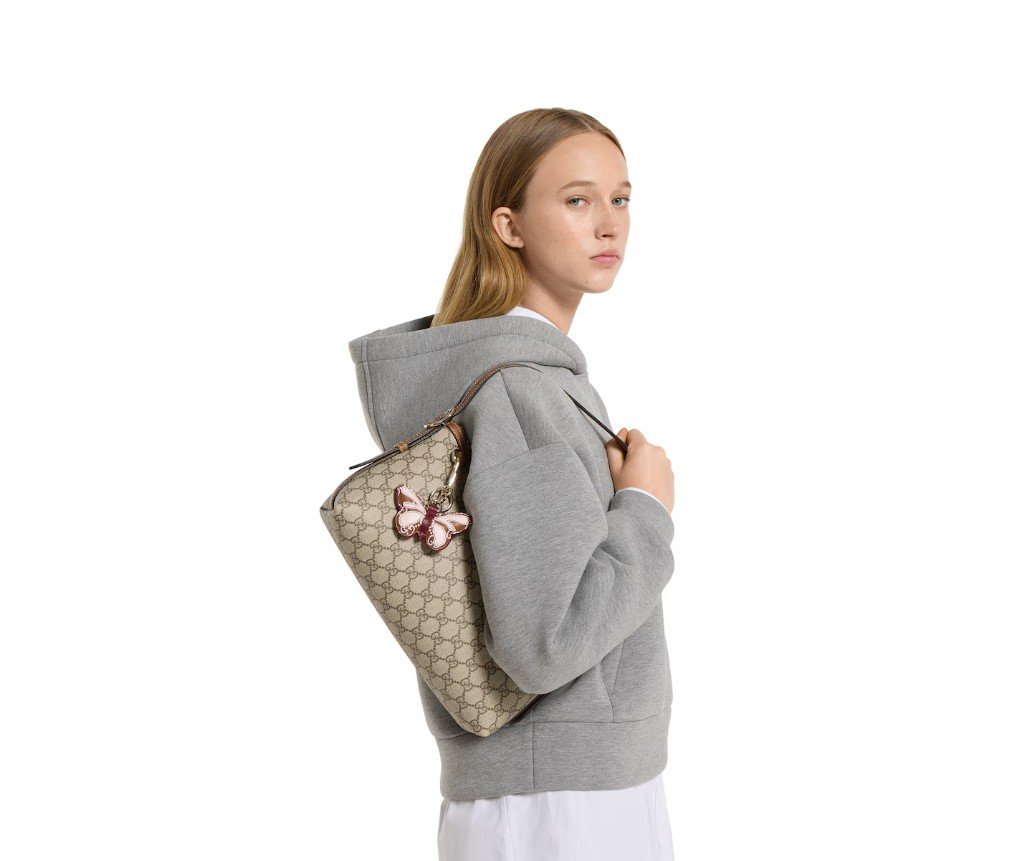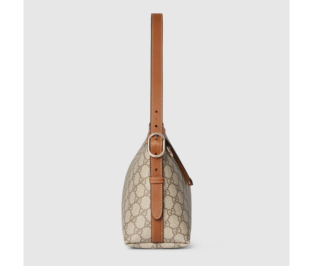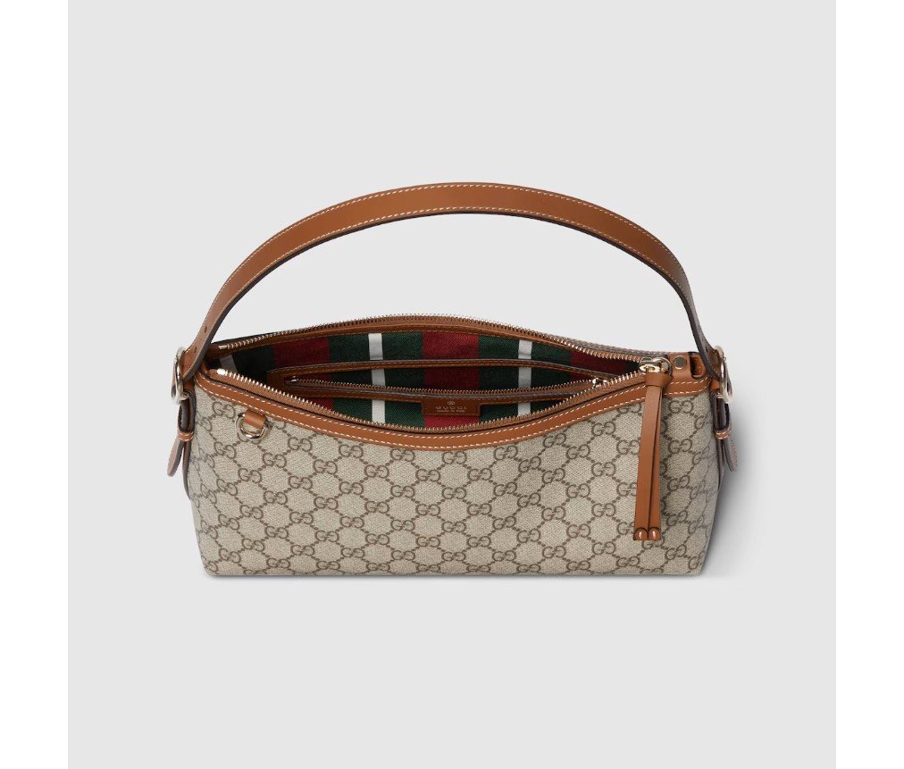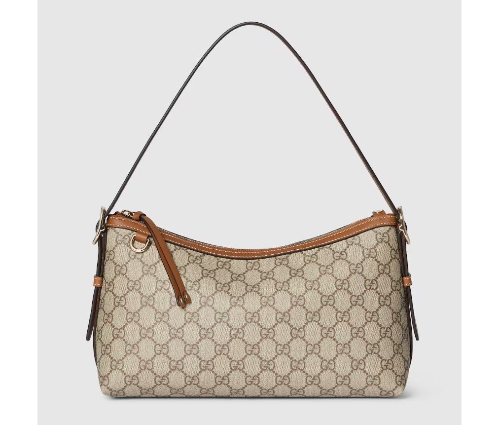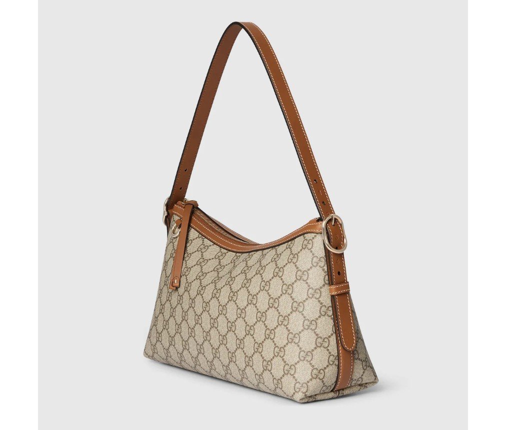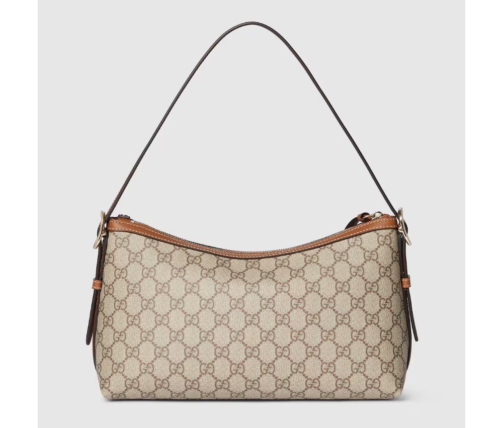 2025 가을/겨울 컬렉션의 GG 엠블럼 컬렉션은 하우스의 우아함과 장인정신의 역사를 새롭게 해석합니다. 이 숄더백은 GG 모노그램 코팅 원단으로 제작되었습니다.