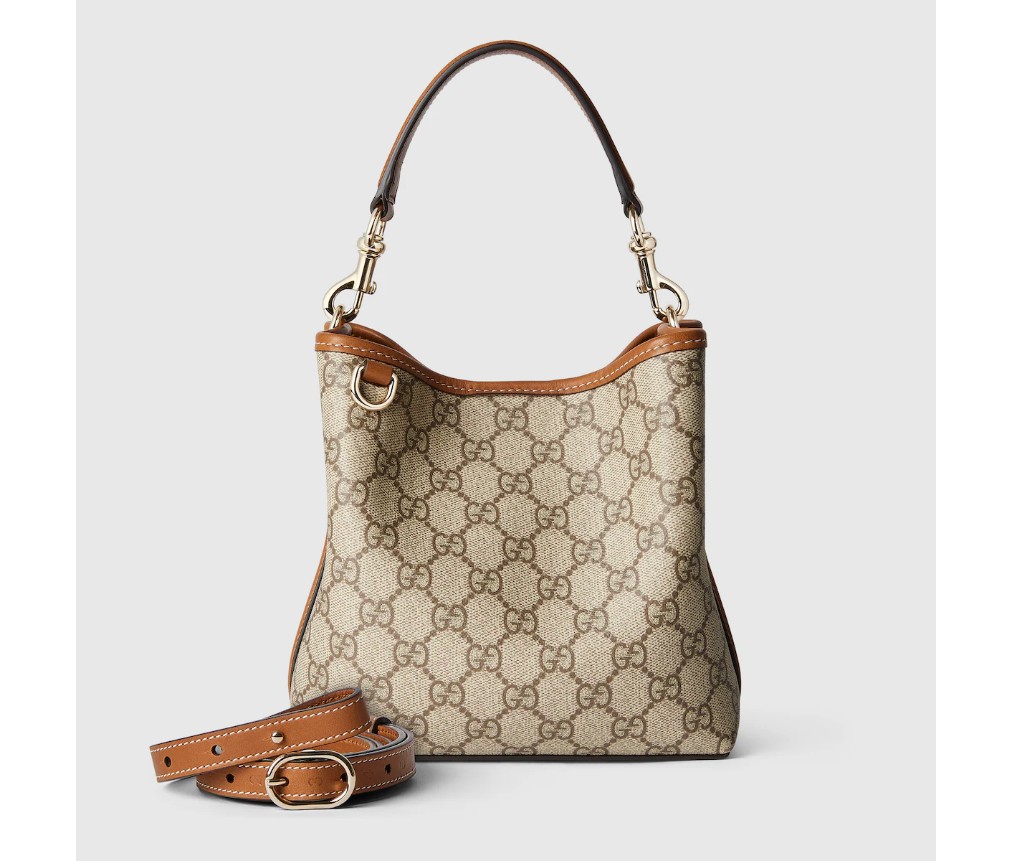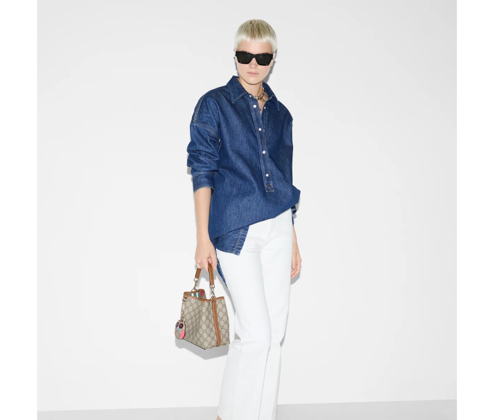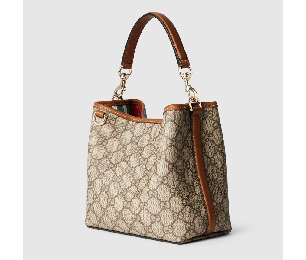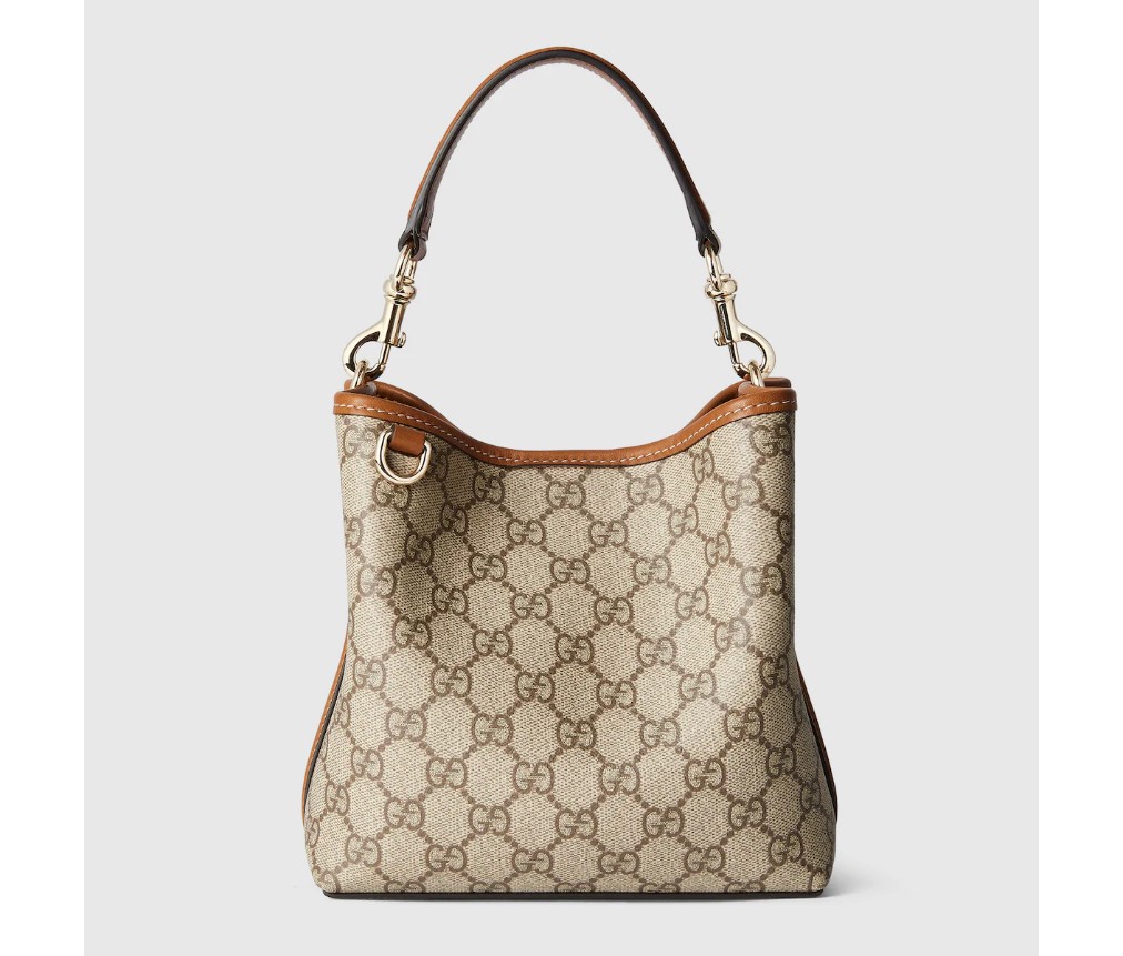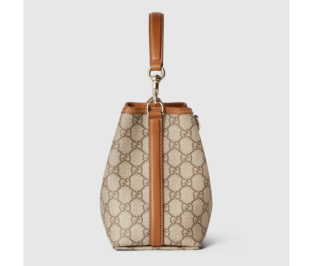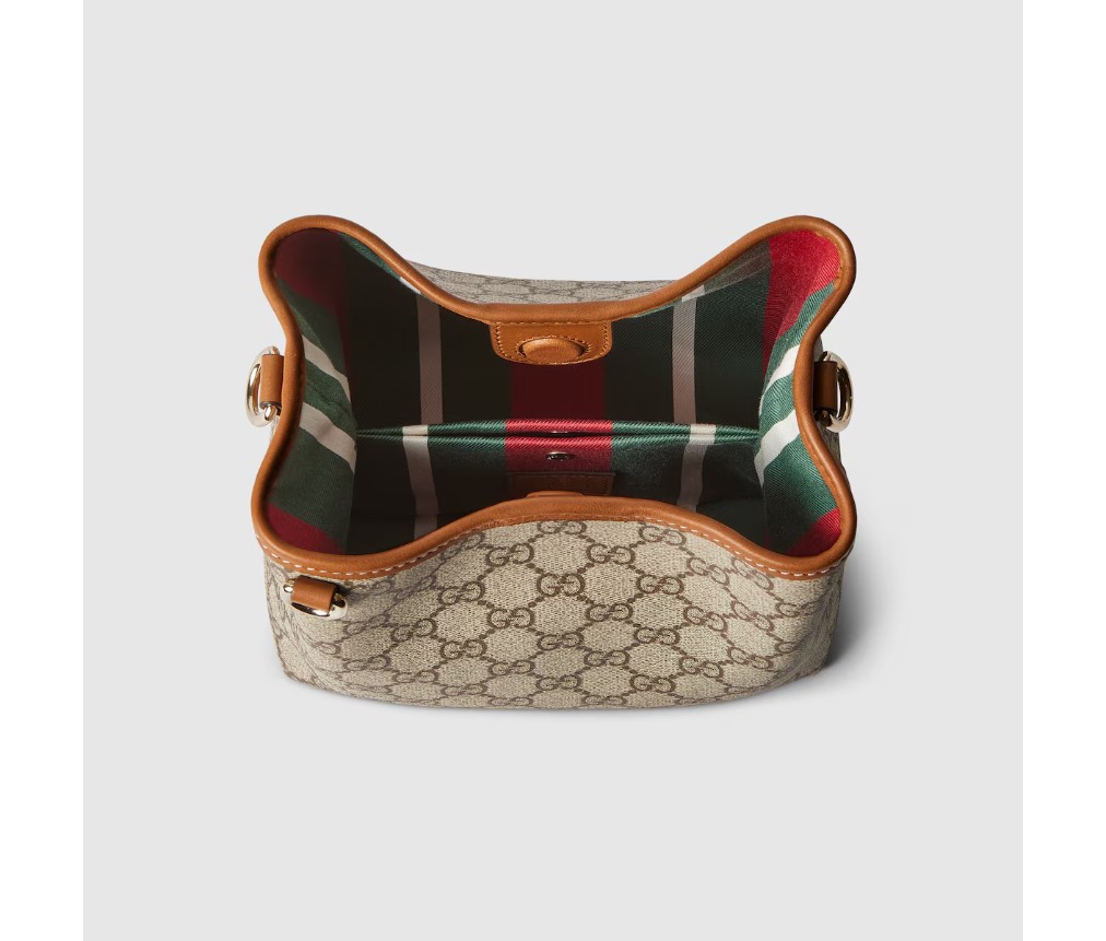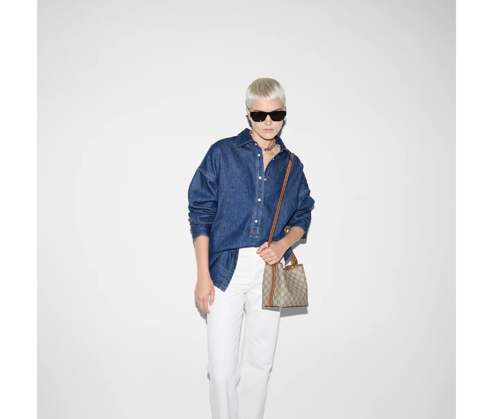 새로운 GG 엠블럼 컬렉션은 하우스의 우아함과 장인정신을 재해석한 작품입니다. 이 버킷 백은 웹(Web) 코튼 안감의 내부 수납공간으로 기능적인 디자인을 강조합니다.