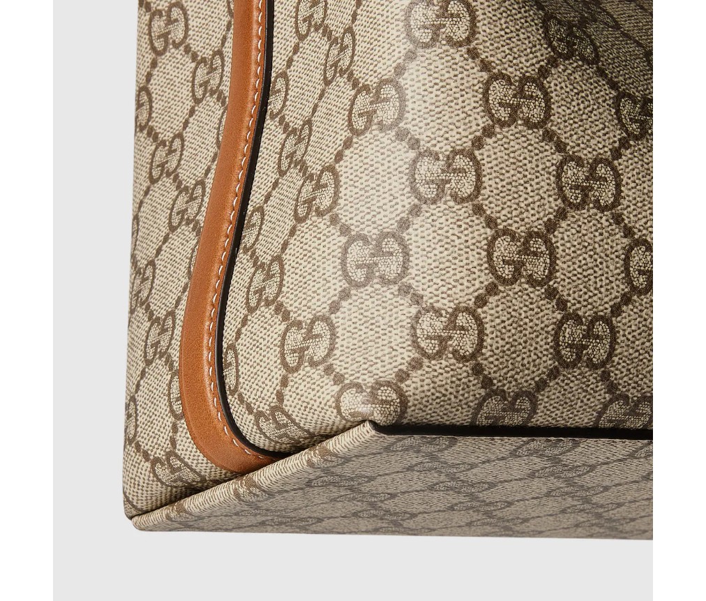 – 베이지색과 짙은 갈색의 새로운 GG 모노그램 코팅 원단