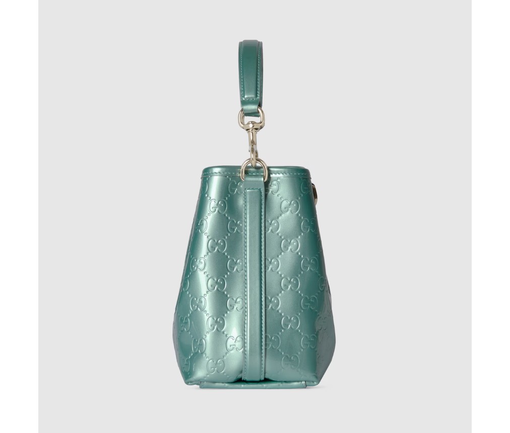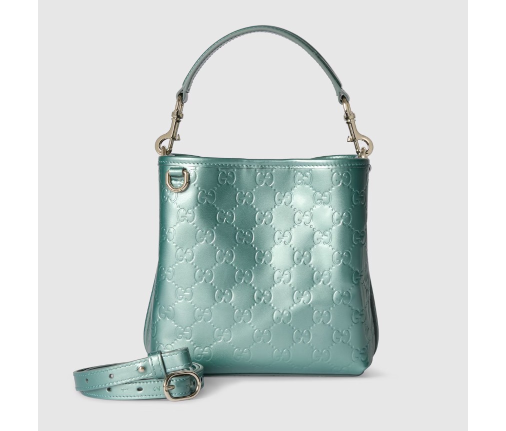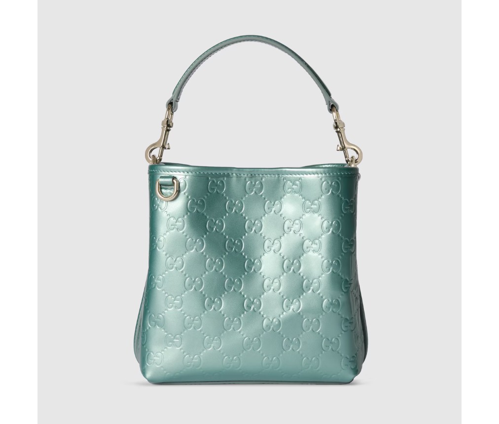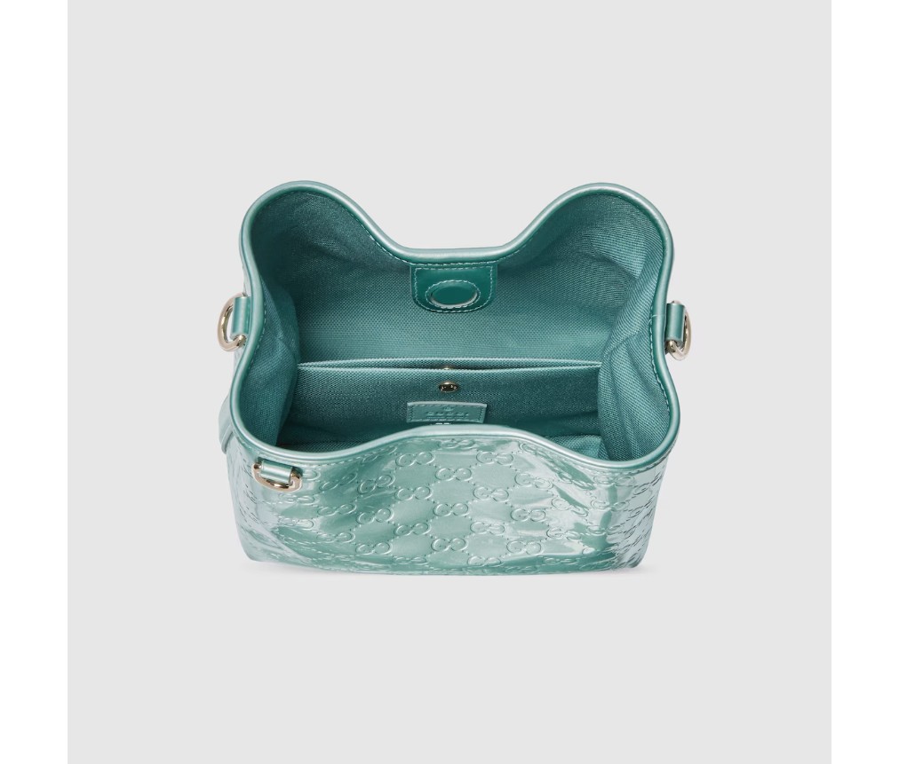새로운 GG 엠블럼 컬렉션은 하우스의 우아함과 장인정신을 재해석한 작품입니다. 이 버킷 백은 코튼 안감의 내부 수납공간을 통해 기능적인 디자인을 강조합니다.