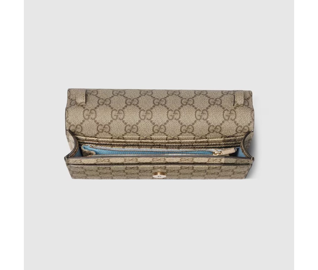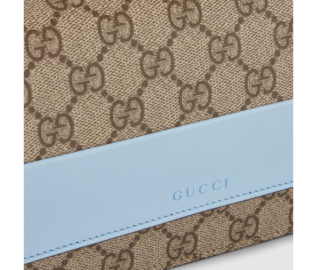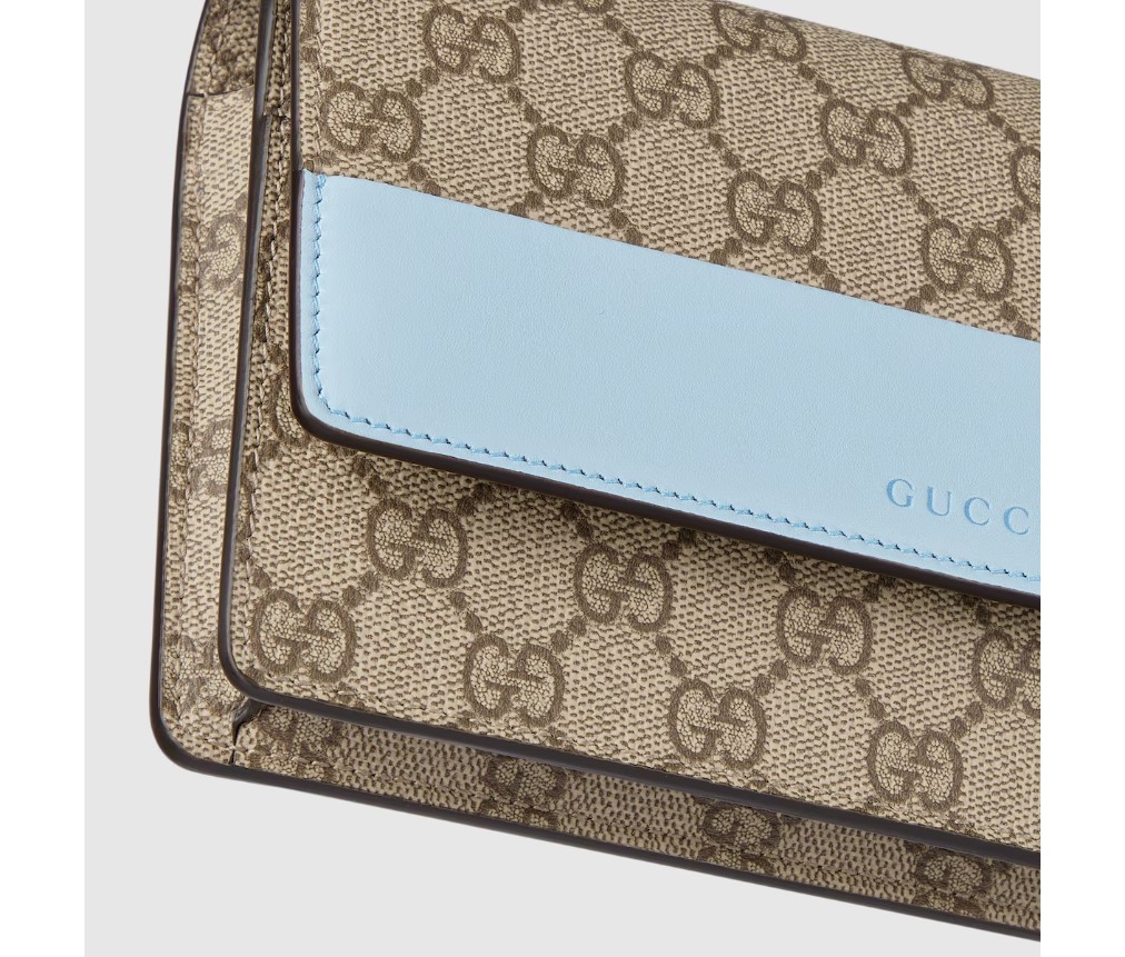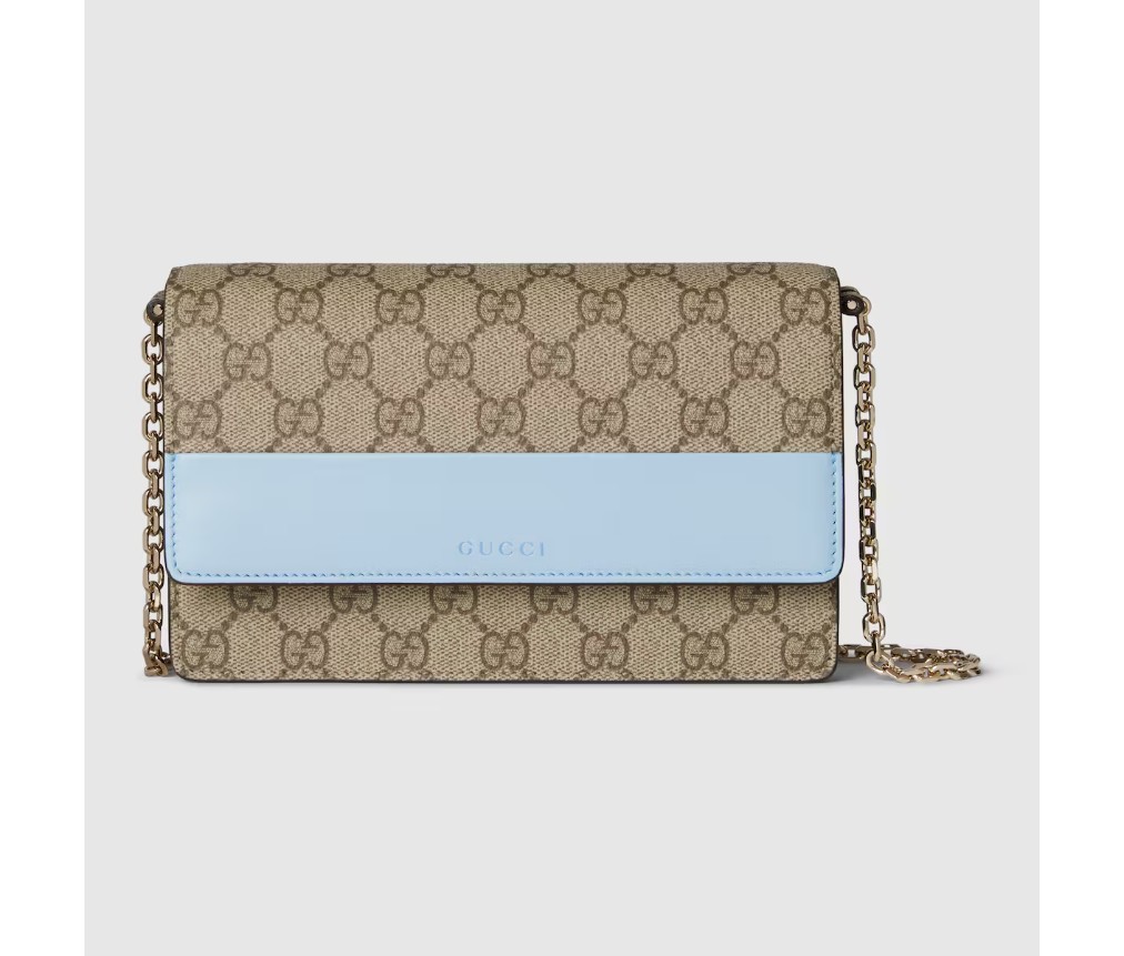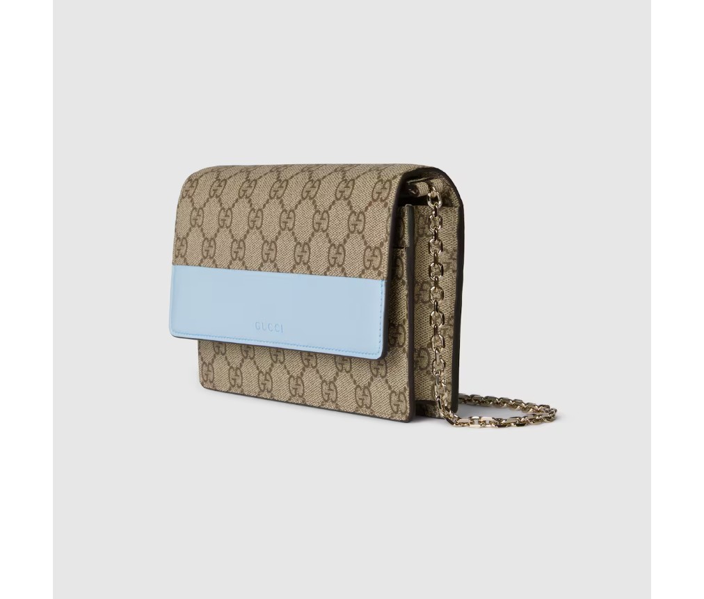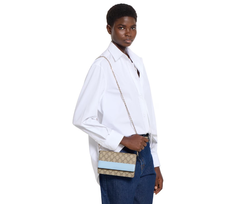 스타일 838151 AAEQ7 4945GG 엠블럼 컬렉션은 GG 수프림 하우스의 우아함과 장인정신을 재해석합니다. 이 체인 지갑은 가죽과 GG 수프림의 투톤 스타일을 강조하며, 여러 개의 수납공간을 갖추고 있습니다.