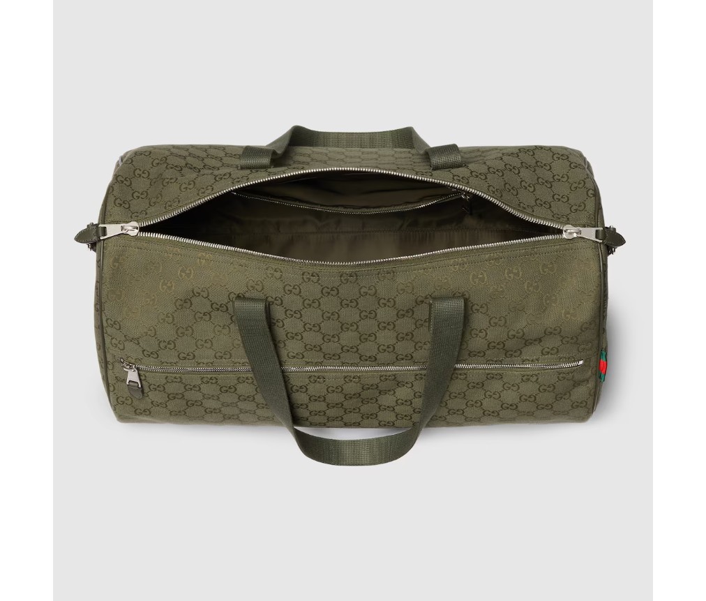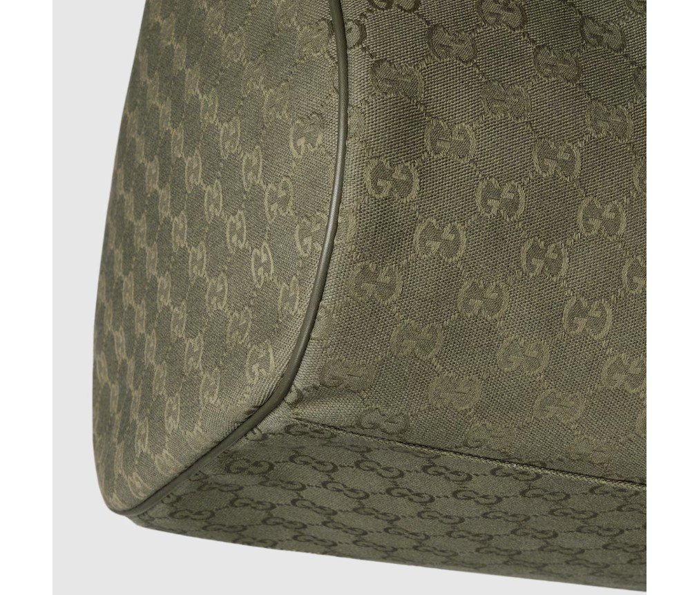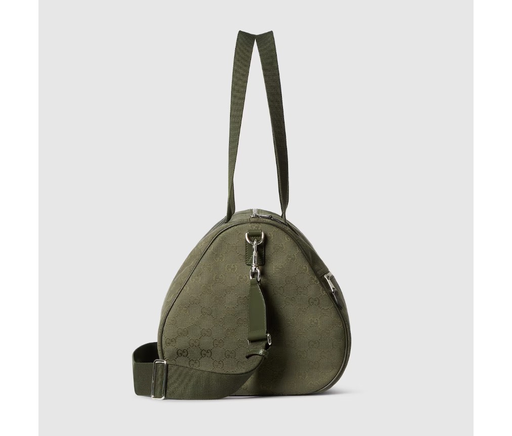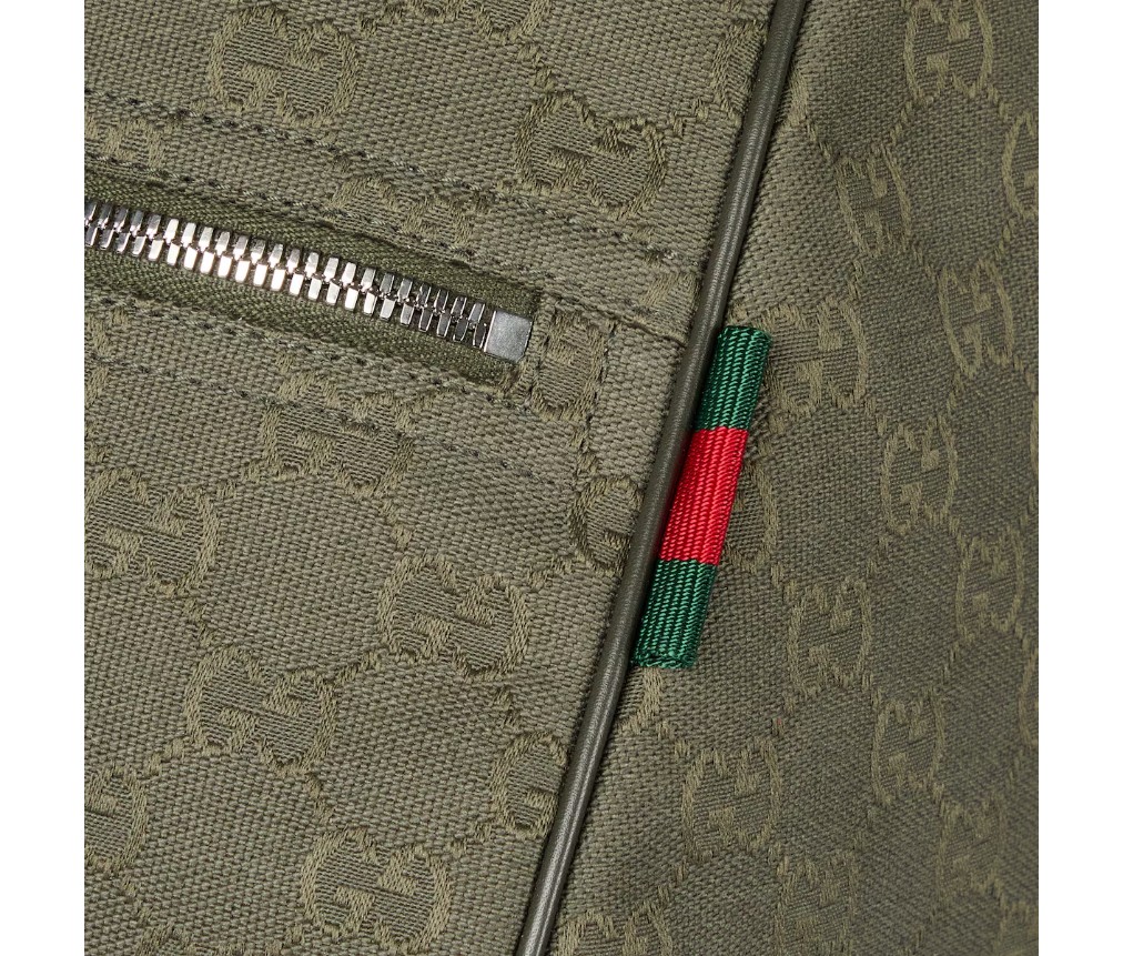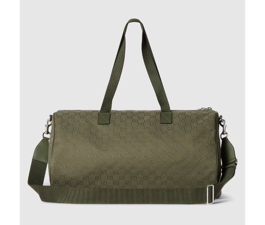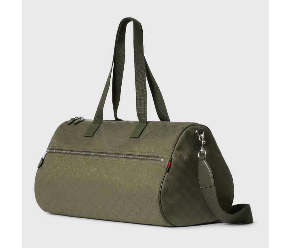 GG 캔버스 소재로 제작된 이 더플 백은 창립자 구찌오 구찌의 한눈에 알아볼 수 있는 모노그램에 대한 오마주를 담고 있습니다. 데일리 액세서리에 모던한 감각을 더하는 새로운 포레스트 그린 컬러를 강조한 이 디자인은 웹(Web) 디테일로 완성되었습니다.