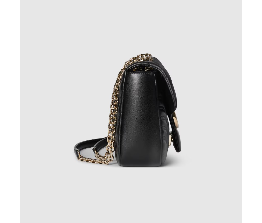 스타일 838985 AAE38 1000하우스의 시그니처 컬렉션인 GG 마몬트는 더블 G 하드웨어, 면 처리된 체인 스트랩, 그리고 매우 부드러운 가죽 소재의 부드러운 구조가 특징입니다. 미디엄과 라지 사이즈에는 세련된 뒷면 포켓이 기능적인 감각을 더합니다.