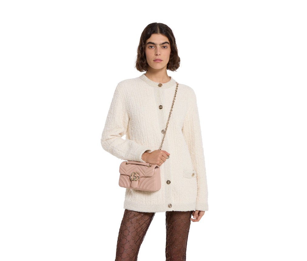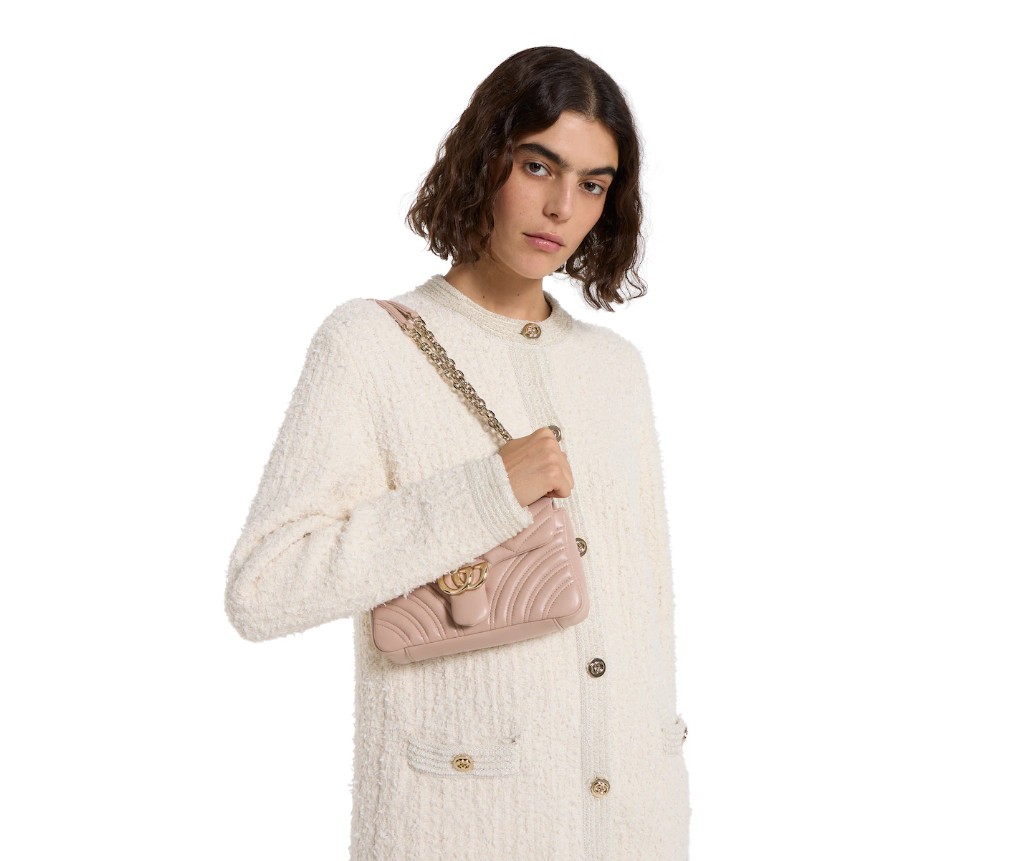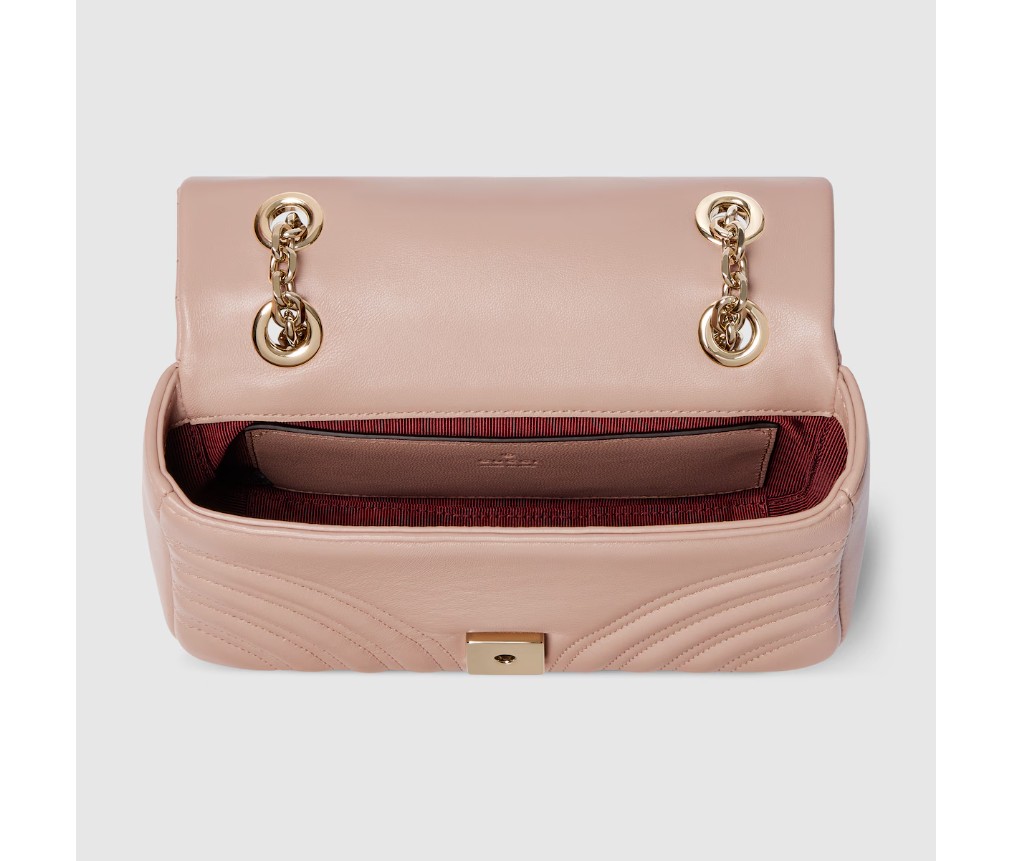 하우스의 시그니처 컬렉션인 GG 마몽은 더블 G 하드웨어, 면 처리된 체인 스트랩, 매우 부드러운 가죽으로 만든 부드러운 구조가 특징입니다.