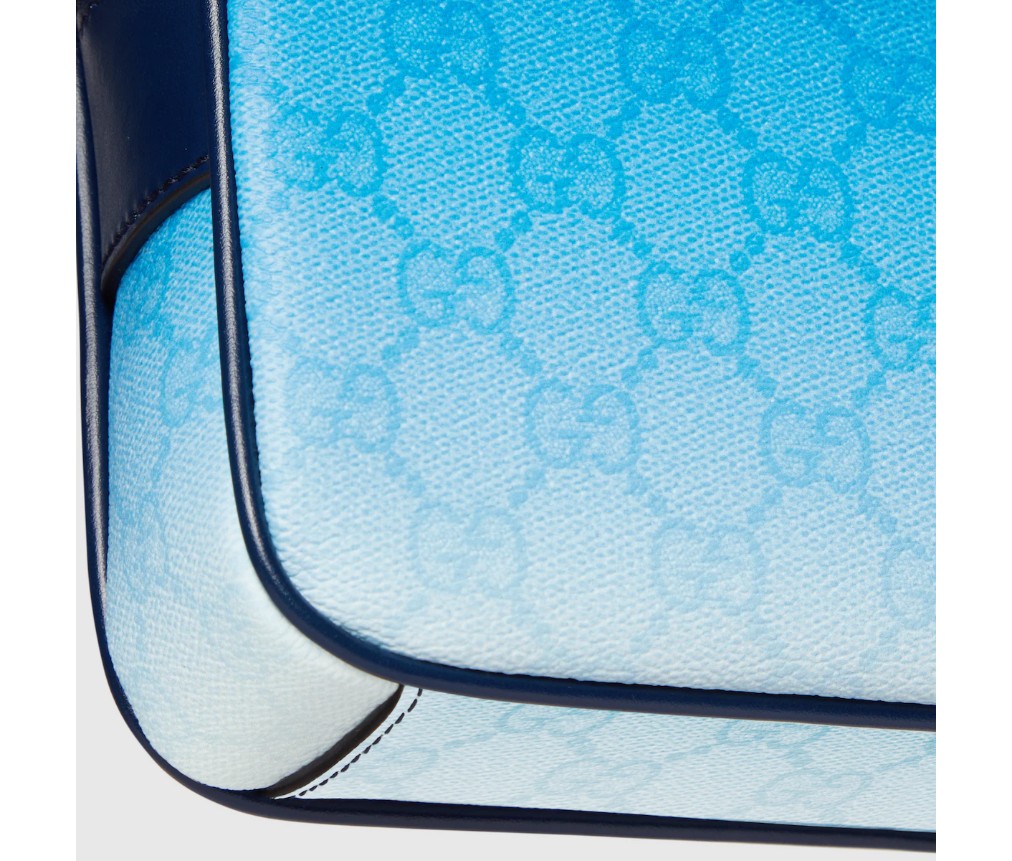 상큼한 블루 톤의 그라데이션 프린트가 필수 기능에 새로운 빛을 더합니다. 이 크로스백은 GG 모노그램 코팅 원단으로 제작되었으며, 전면 그라데이션 프린트로 더욱 풍성해졌습니다.