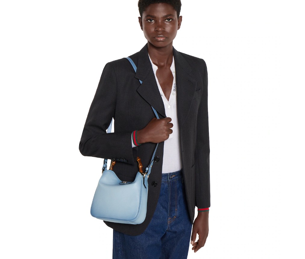 그라데이션 그레인 가죽 소재의 구찌 다이애나 백은 구찌의 시그니처 요소인 대나무 손잡이가 특징입니다. 크로스백이나 숄더백으로 착용 가능하며, 이번 시즌을 맞아 산뜻한 색상으로 출시되었습니다.